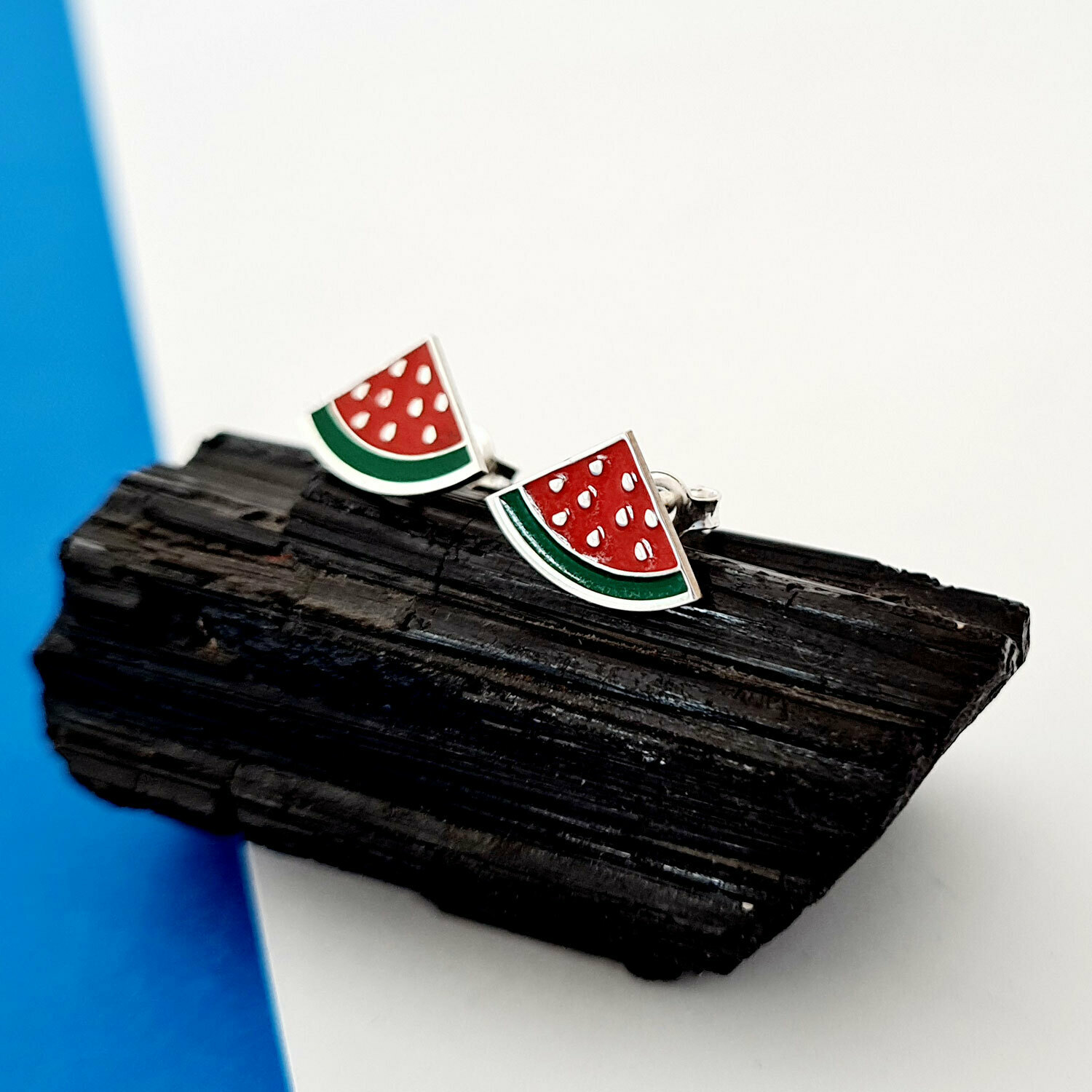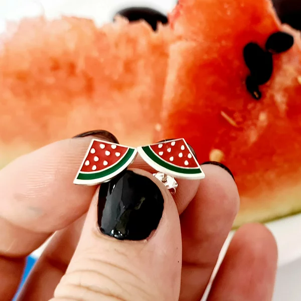 Accesorizeaza-ti tinuta de vara cu o pereche de cercei veseli si savurosi! Feliile racoroase de pepene rosu iti vor colora ziua de fiecare data cand ii vei purta cerceii. In plus, acestia vor fi remarcati de cei din jur si ii va bine dispune.