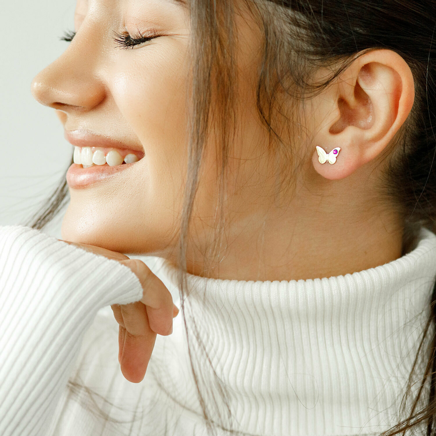 Pentru copii, recomandam cerceii cu inchidere cu filet, care au un mic capacel protector impotriva intepaturilor, sau modelul cu tortita. Pentru femei, cele mai populare optiuni sunt cele cu tija si fluturas, perfecti pentru purtare zilnica, insa poti alege si varianta cu tortita pentru modele mai lungi/ mari sau varianta de hoops (cercei rotunzi), daca iti doresti un look modern si elegant.