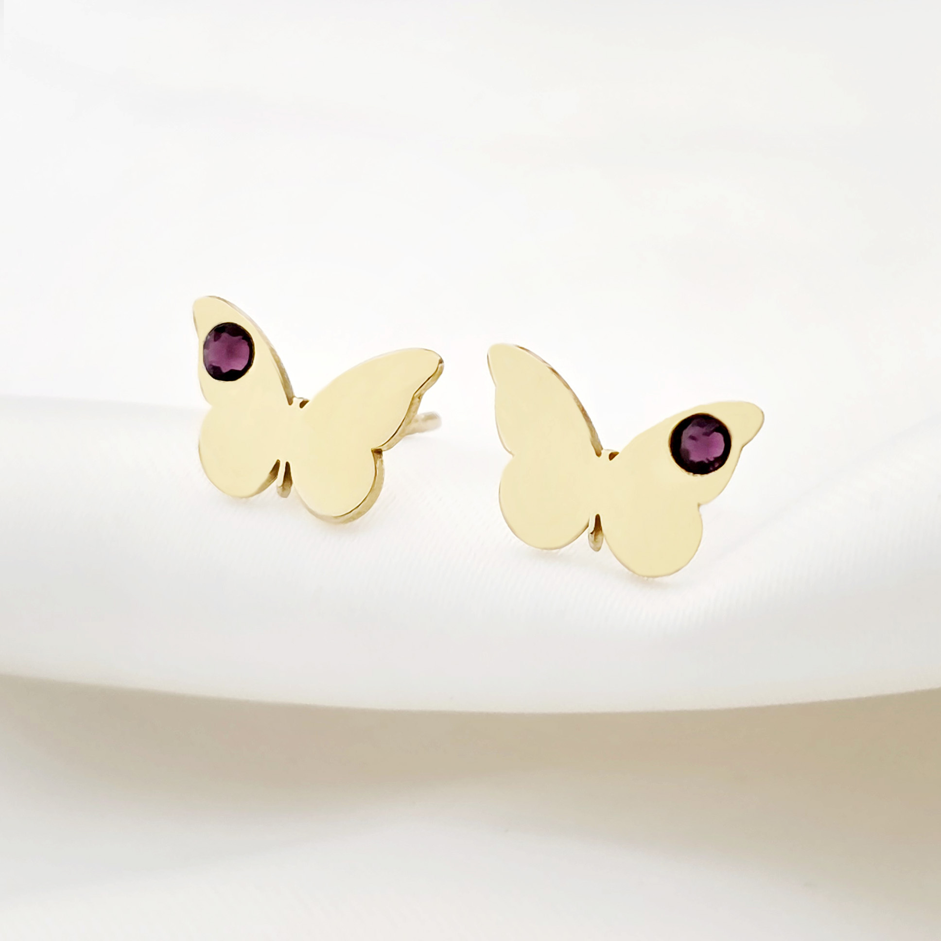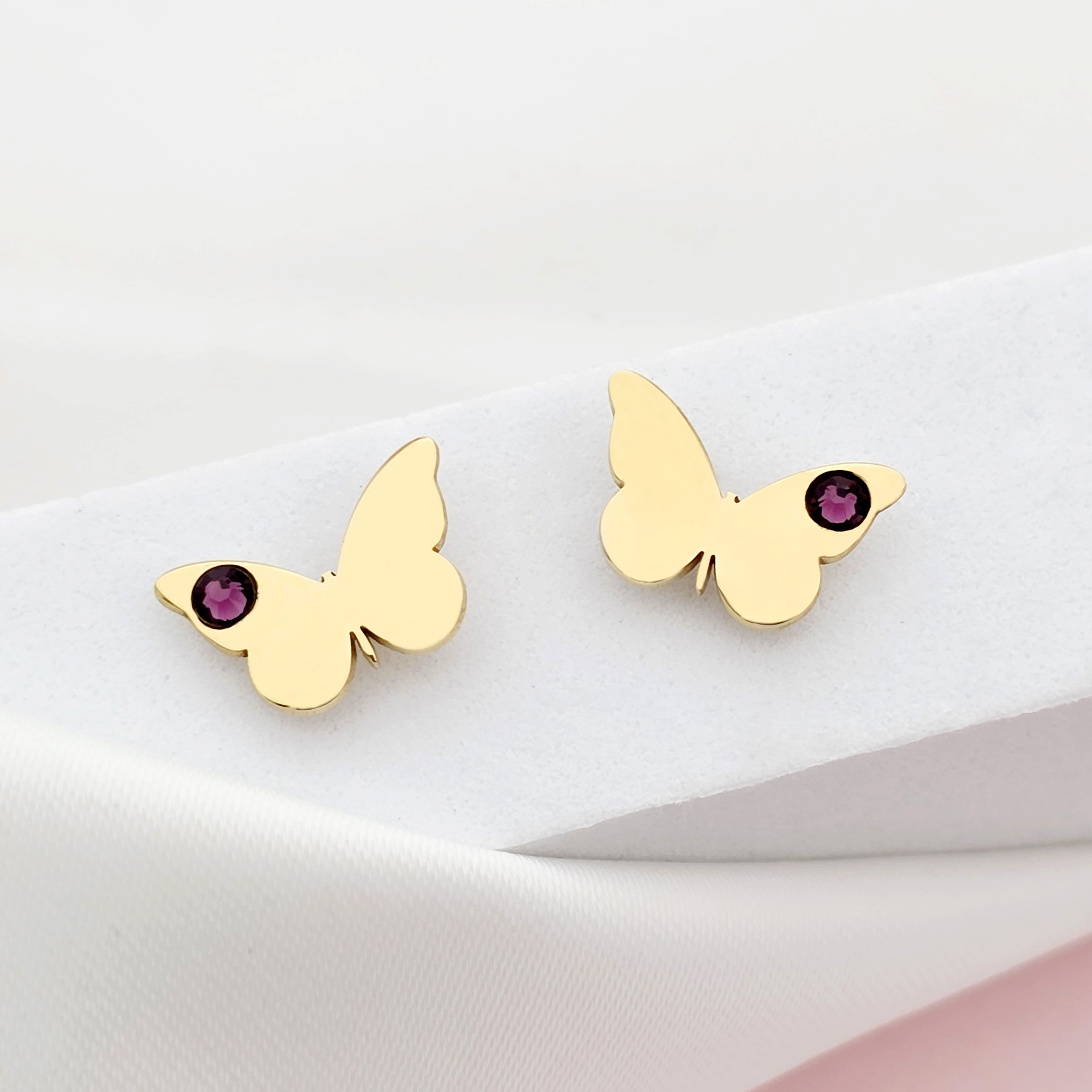 Cercei fluture - model simplu cu cristal Swarovski - Argint 925 placat cu Aur Galben 18K- inchidere surub