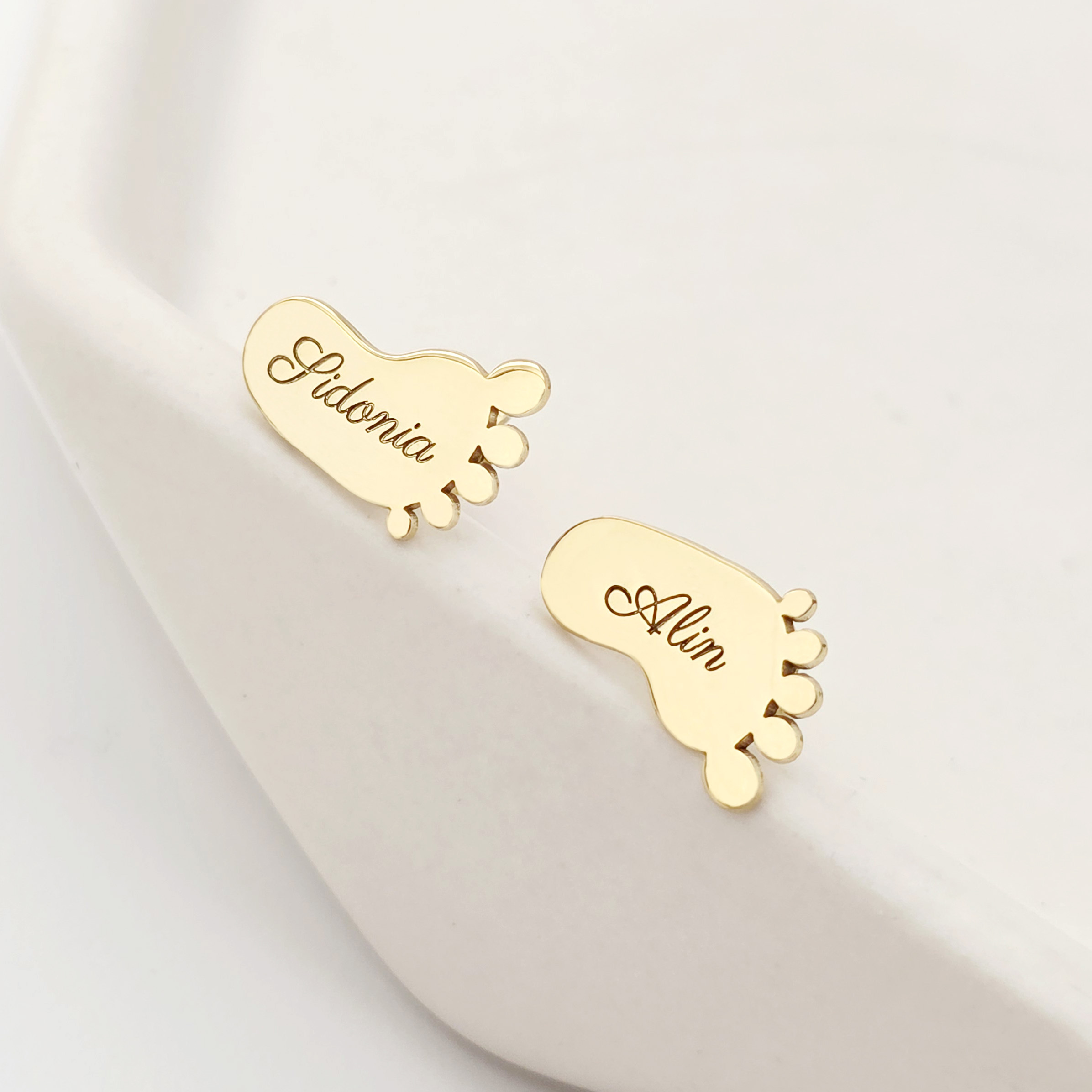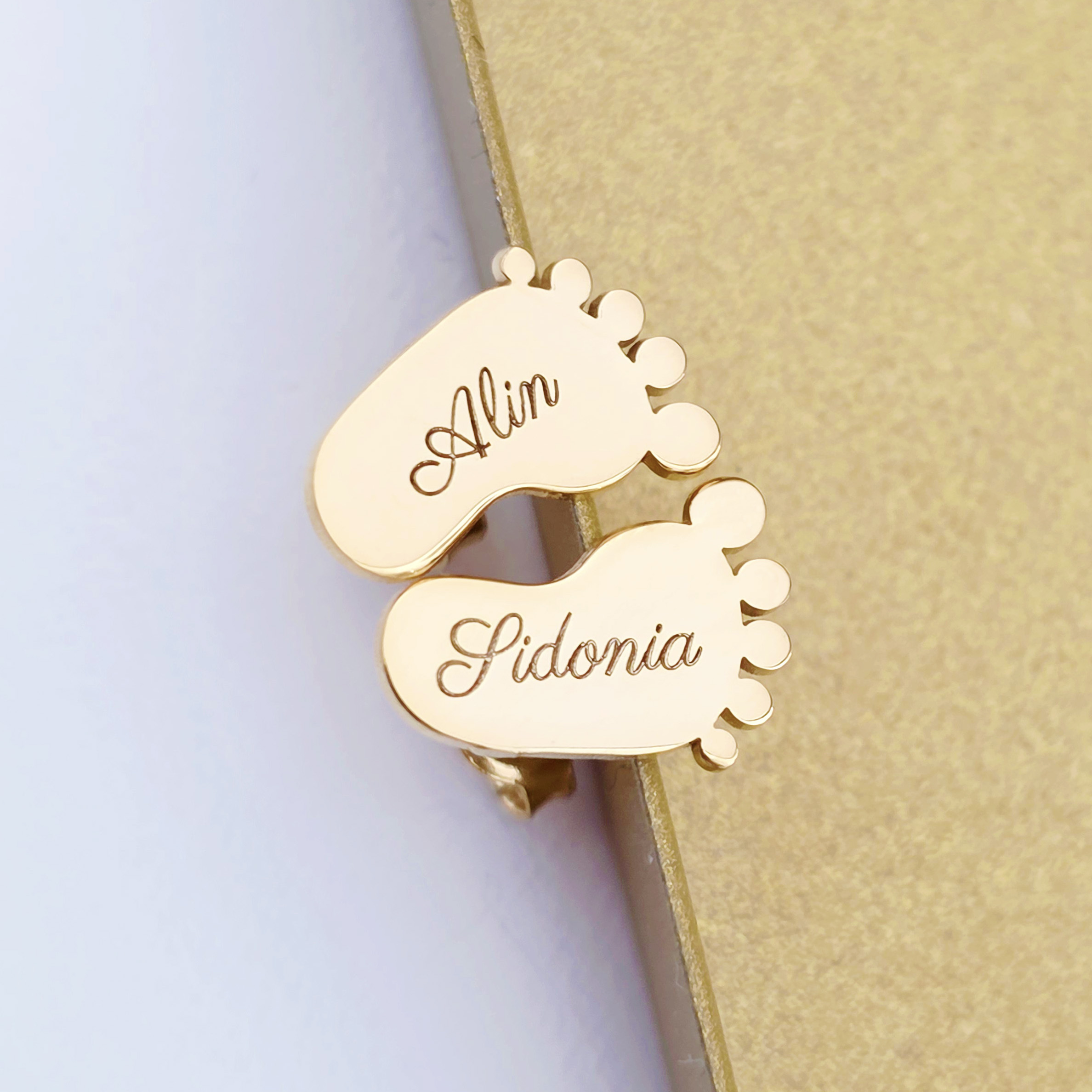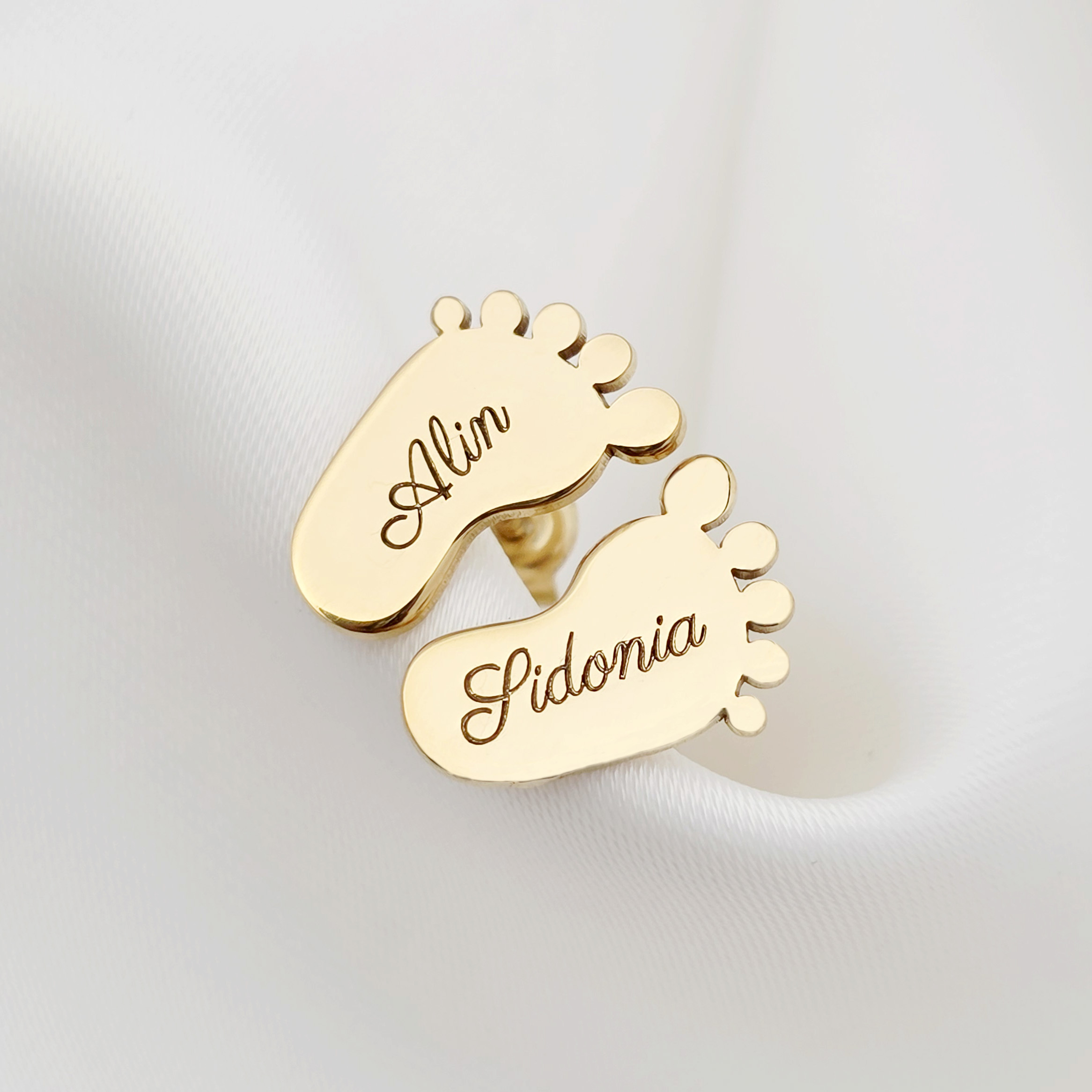 Cercei personalizati - Talpi bebe - Argint 925 placat cu Aur Galben 18K - Inchidere surub