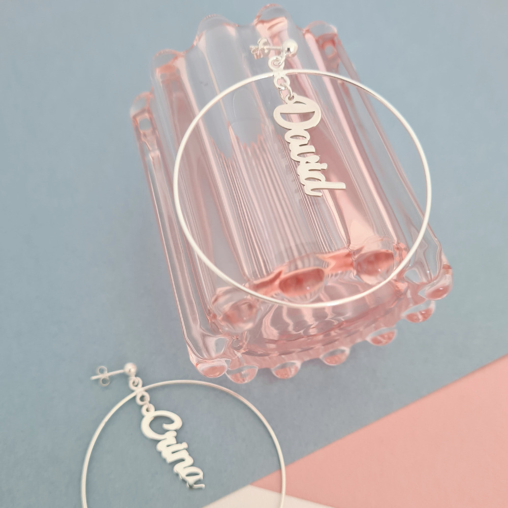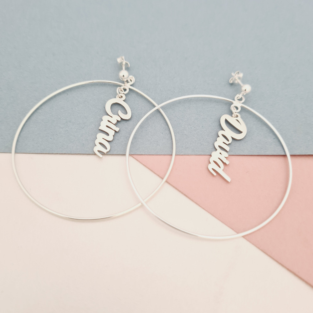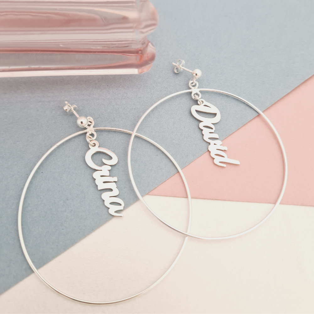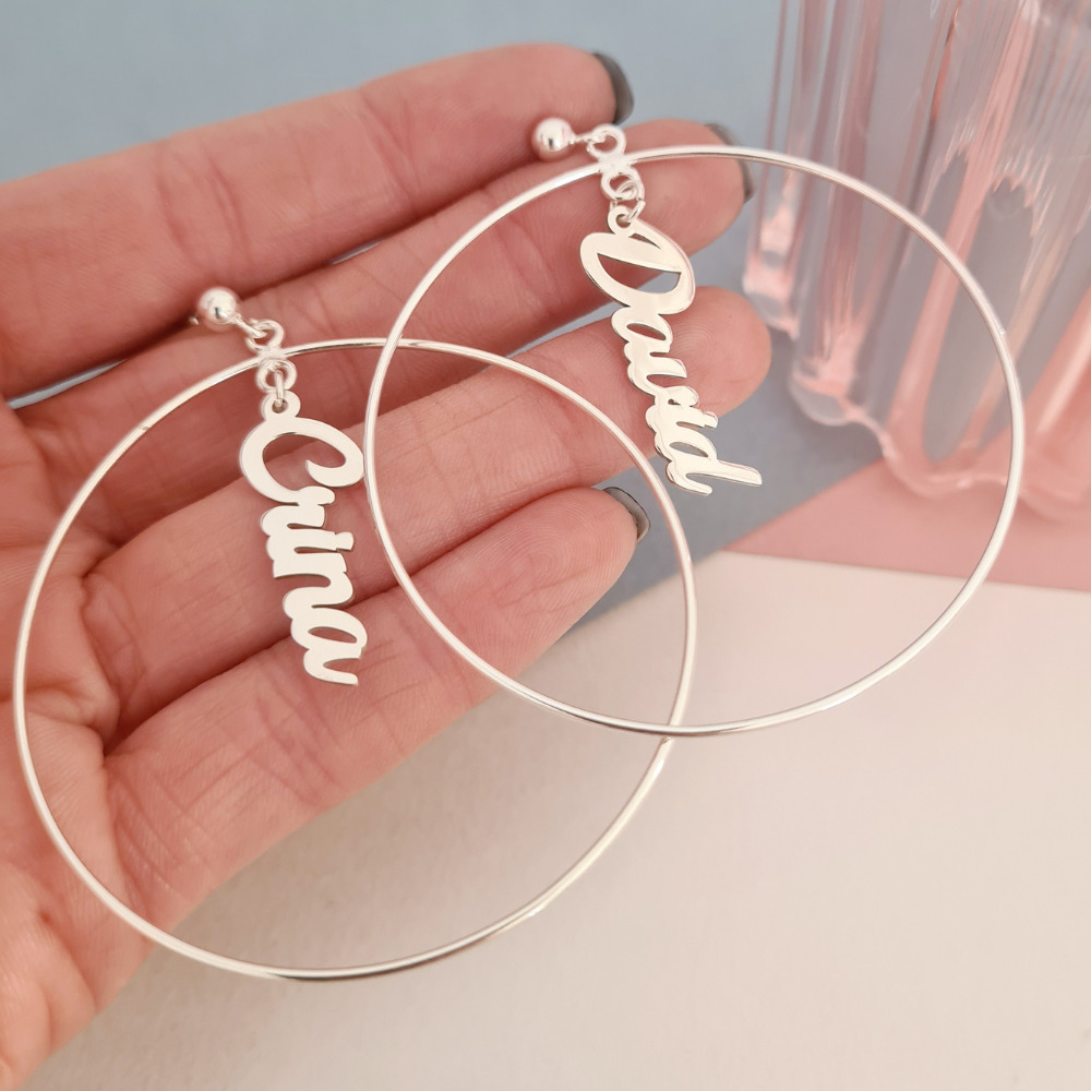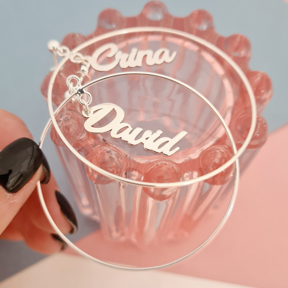 Cercei rotunzi BIG HOOPS cu nume - Argint 925 - Inchizatoare surub
