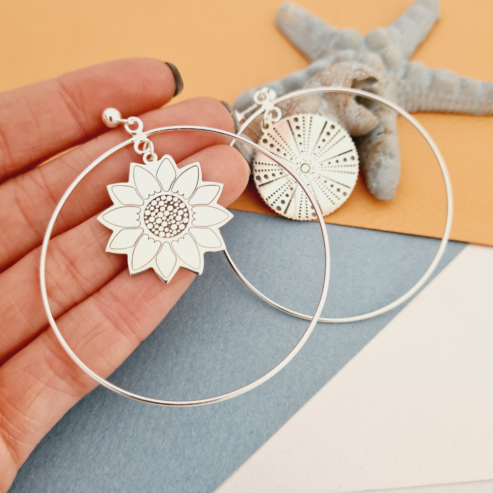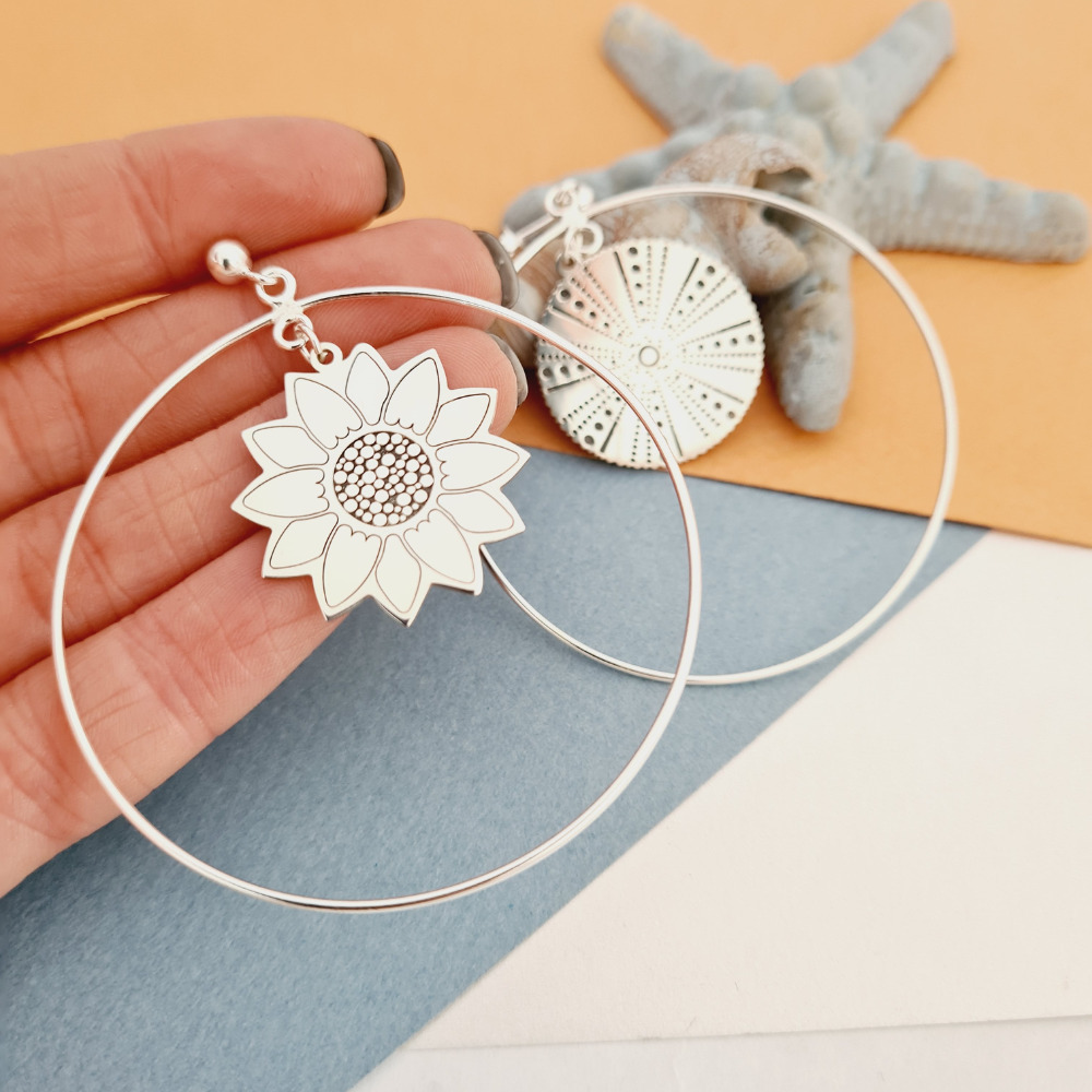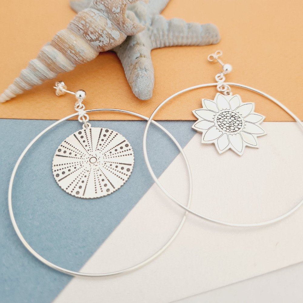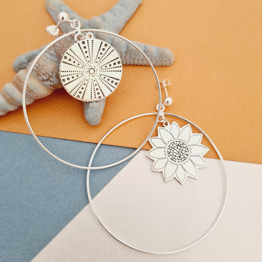 Cercei rotunzi BIG HOOPS cu simboluri decorate - Argint 925 - Inchizatoare surub