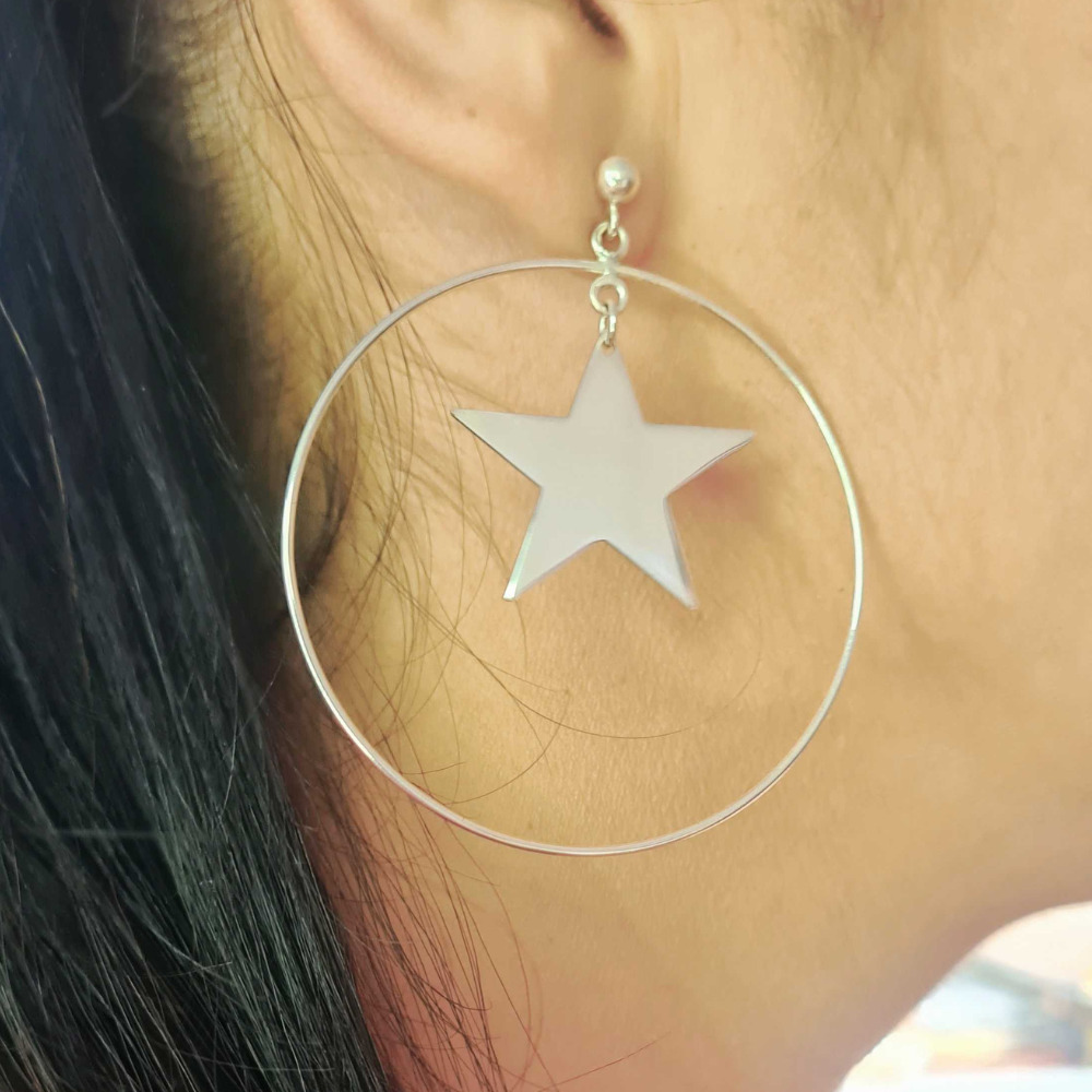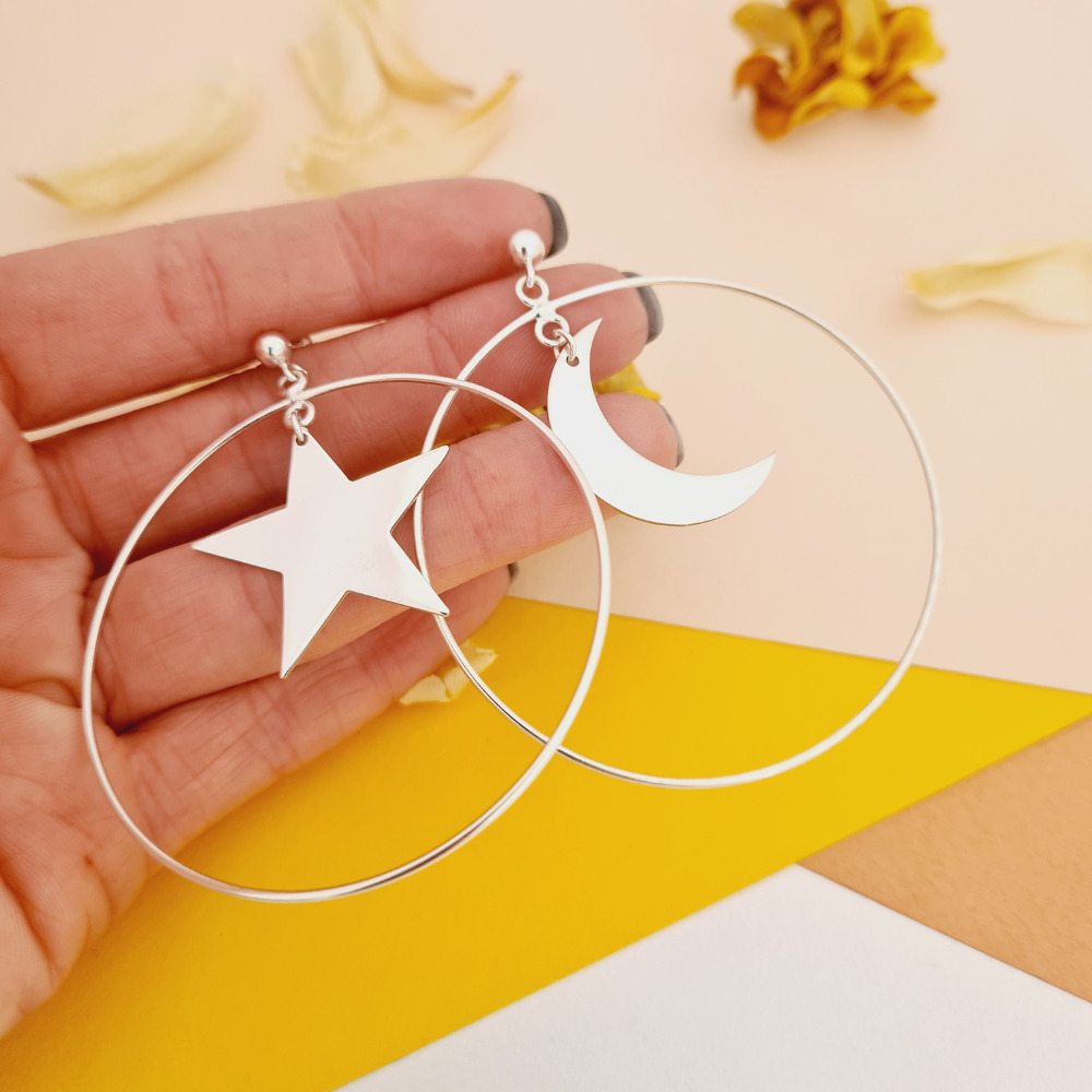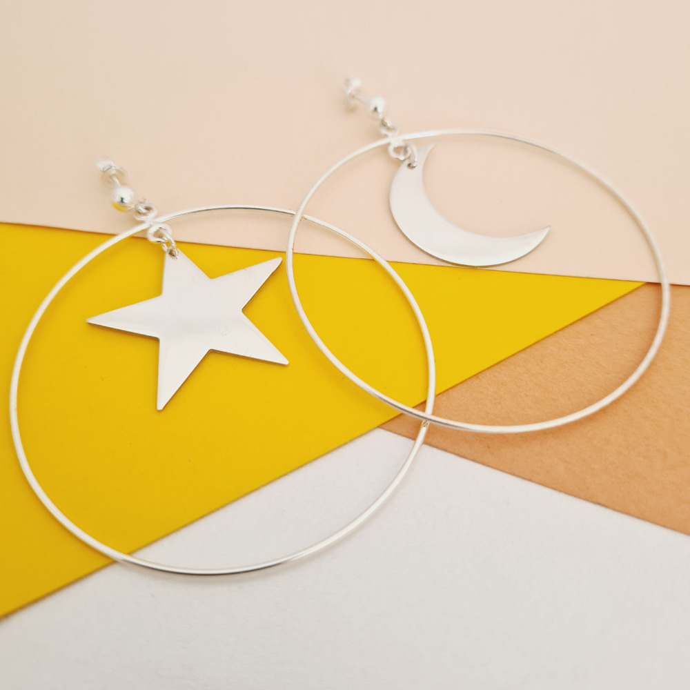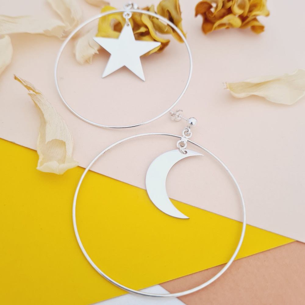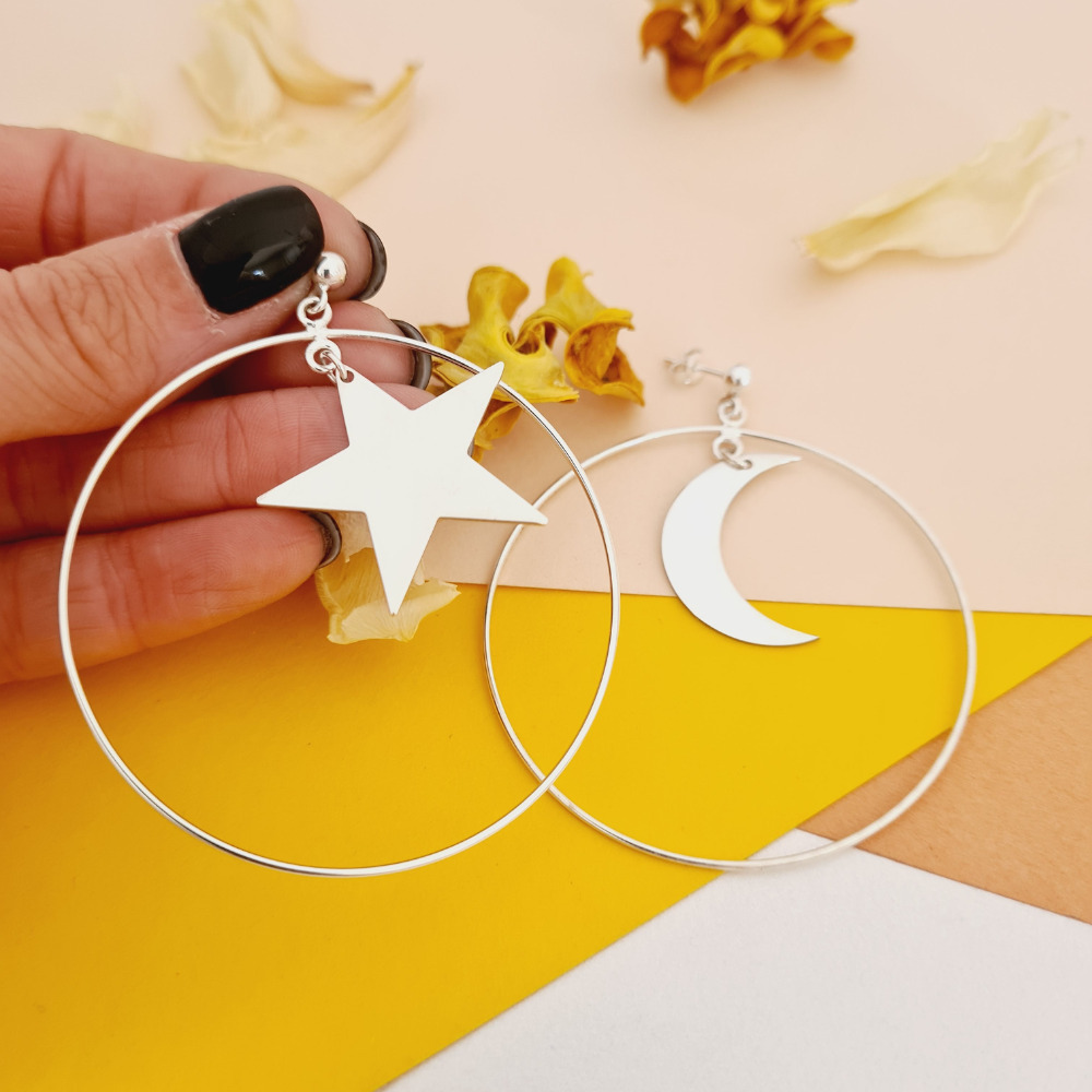 Cercei rotunzi BIG HOOPS cu simboluri mixte - Argint 925 - Inchizatoare surub