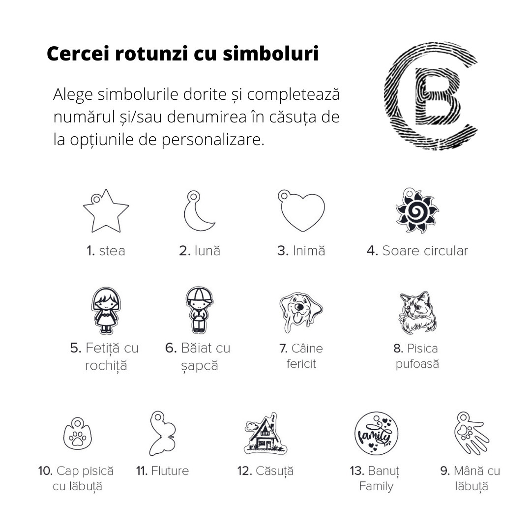 - Fiecare cercel de 15 mm diametru are atasat cate un simbol.