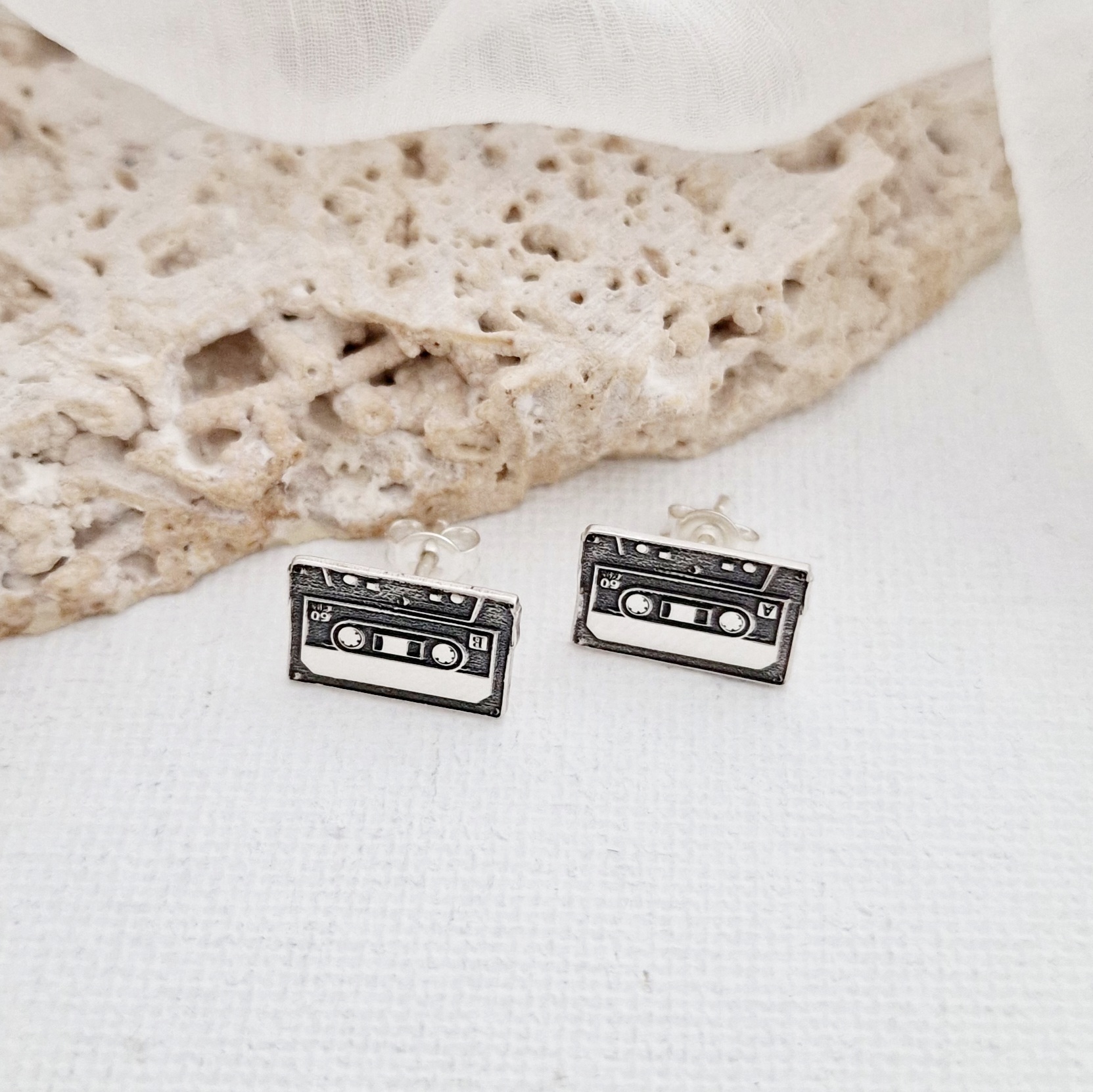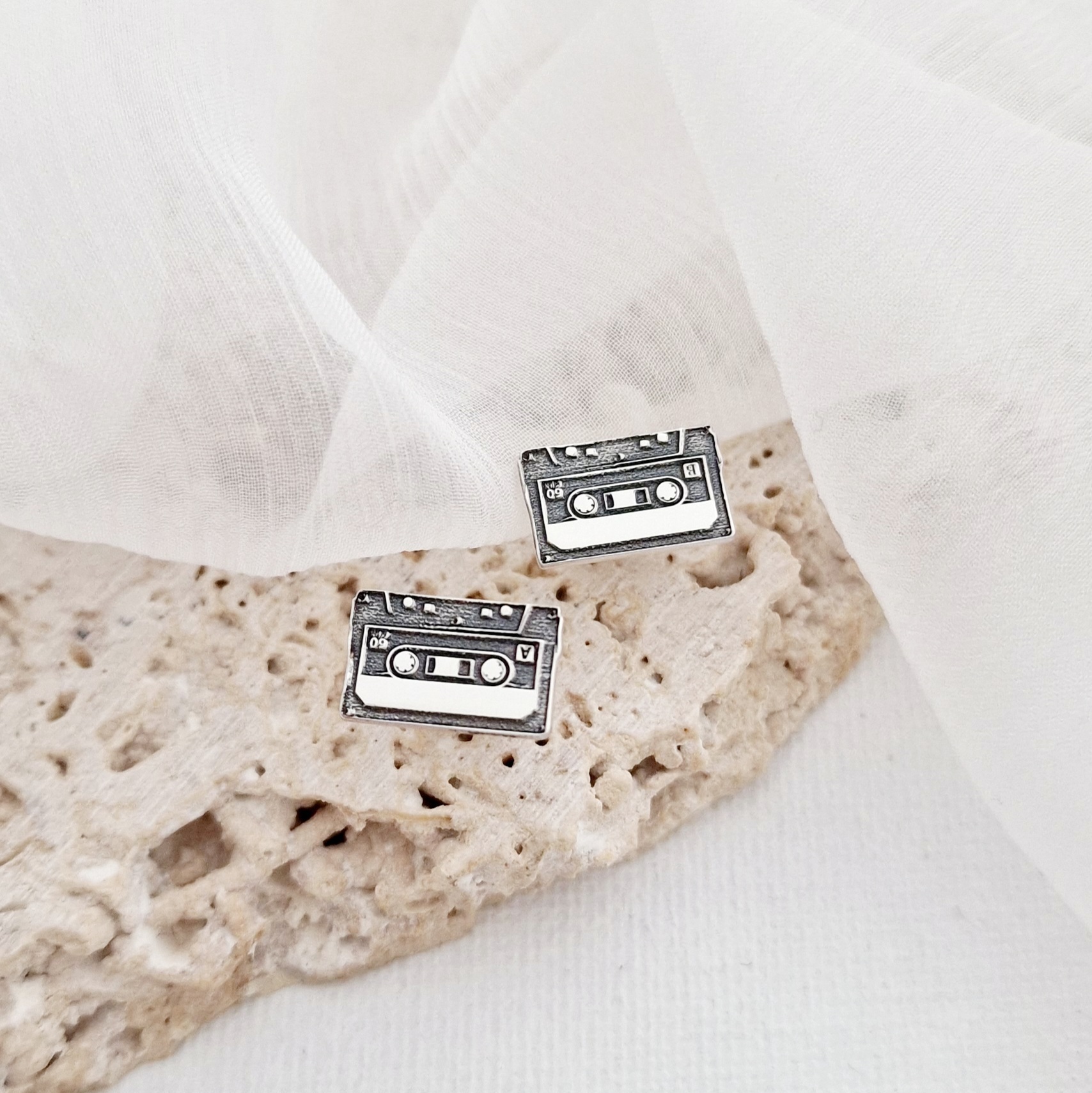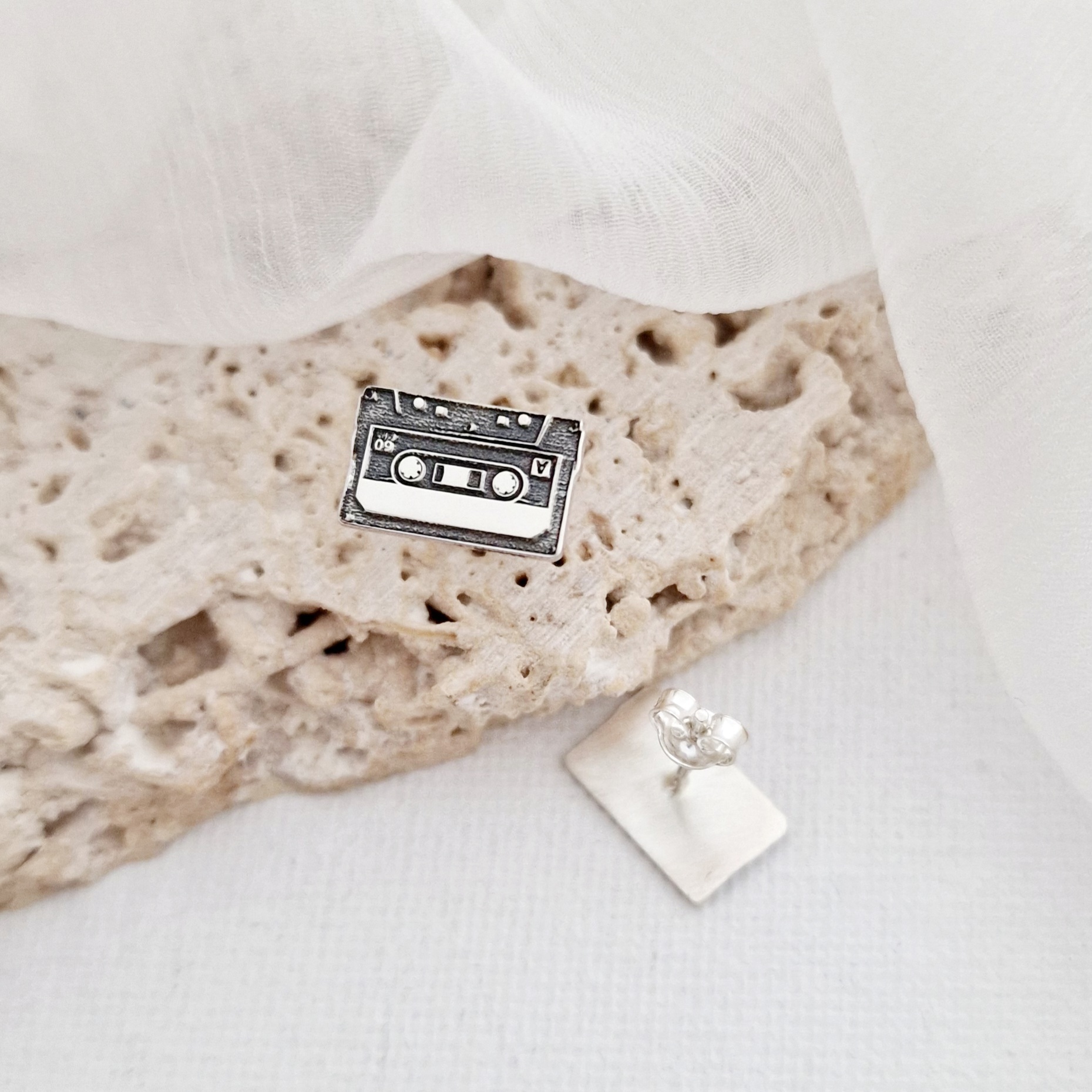 Cerceii in forma de caseta audio sunt creati din Argint 925 prin taiere si gravare laser. Acestia au dimensiunea de 8x12 mm si sistemul de inchidere tip surub.