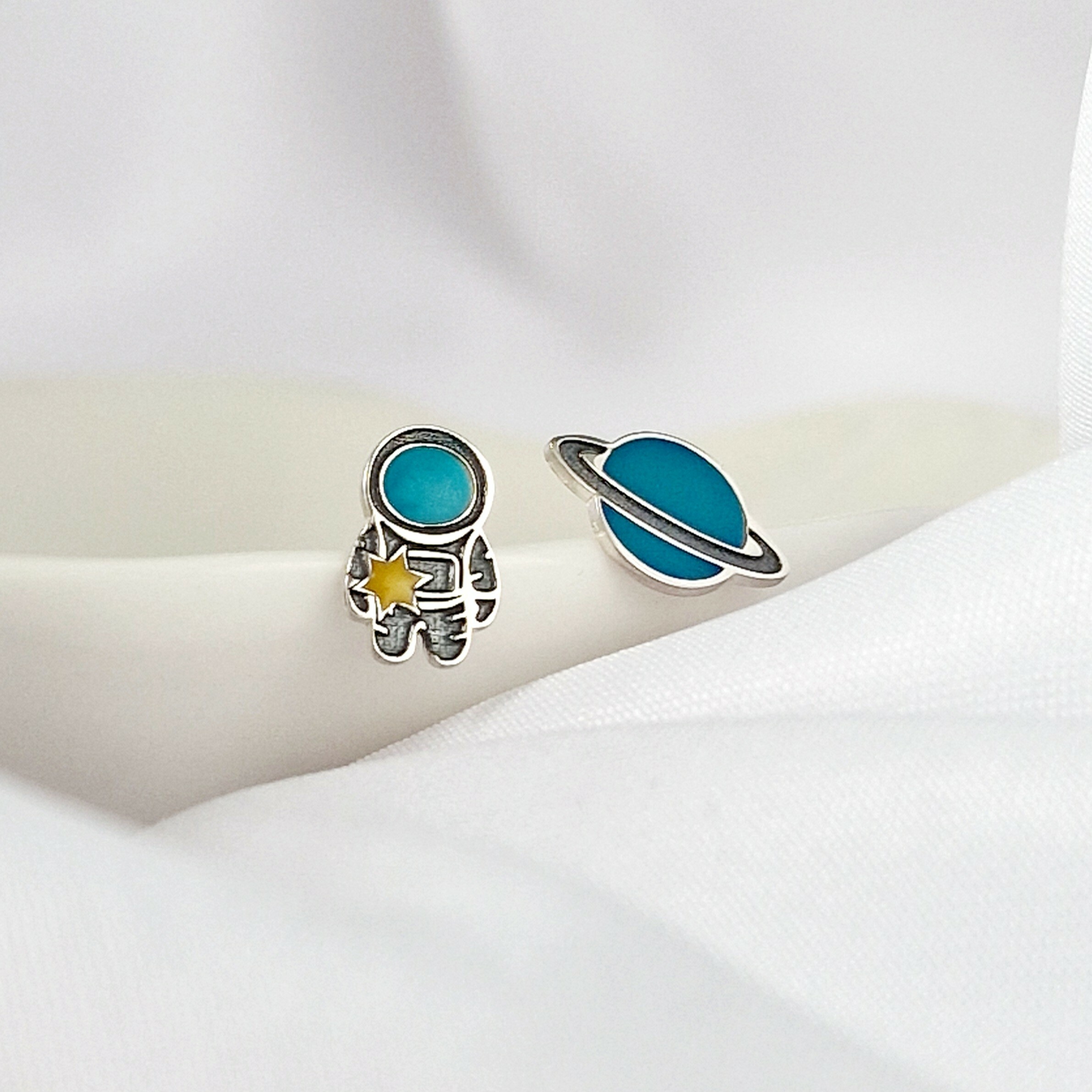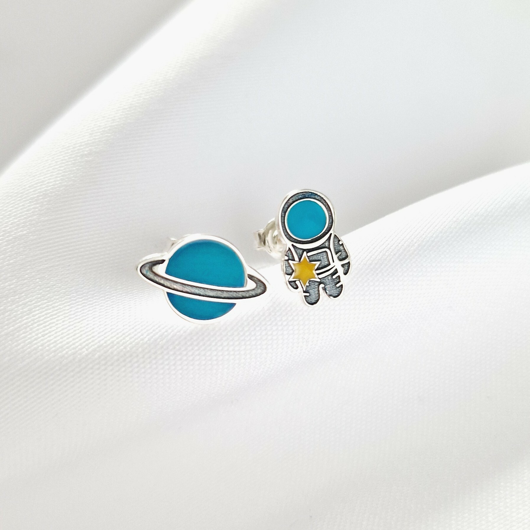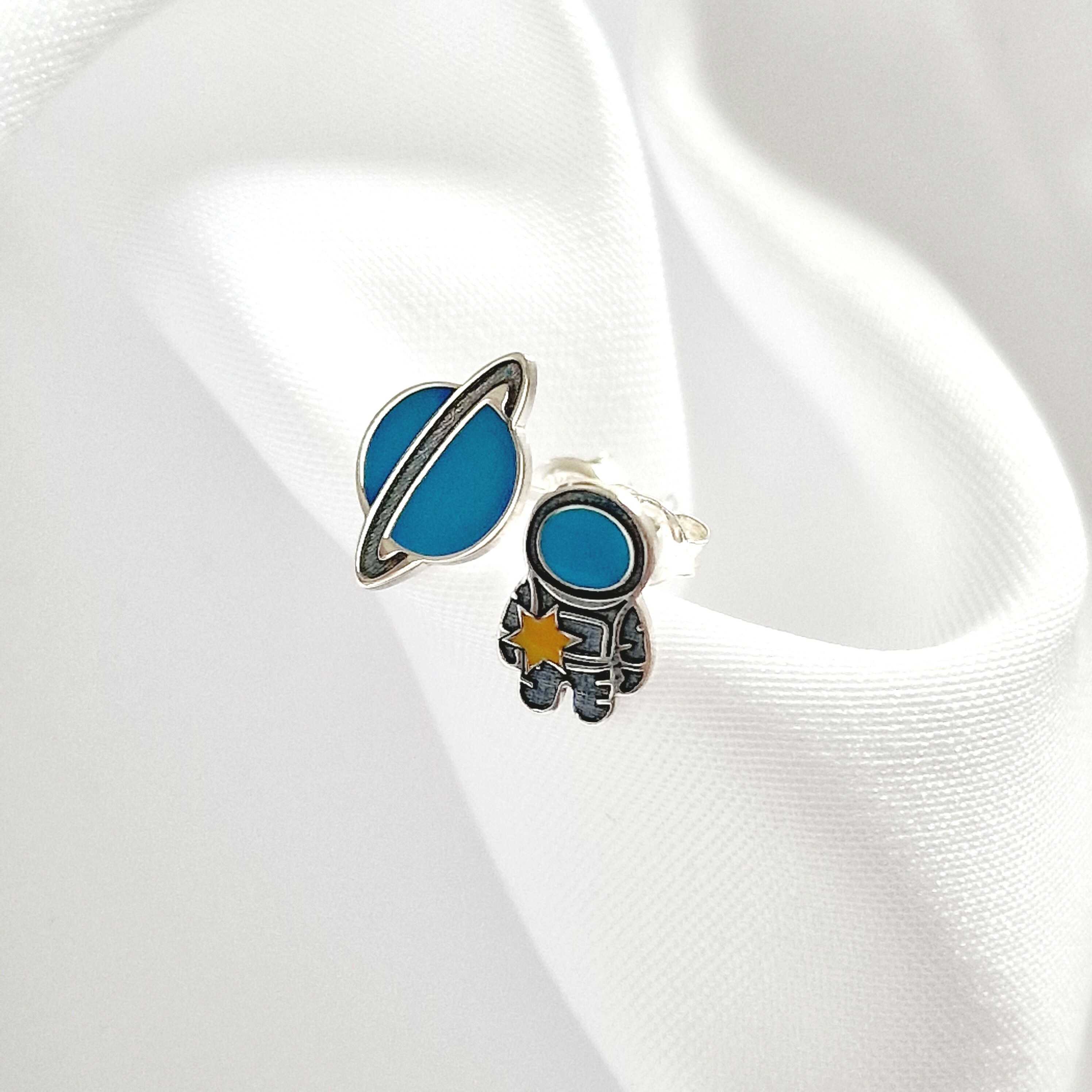 Acești cercei personalizați cu un astronaut și o planetă sunt o alegere perfectă pentru iubitorii de spațiu și designuri unice.