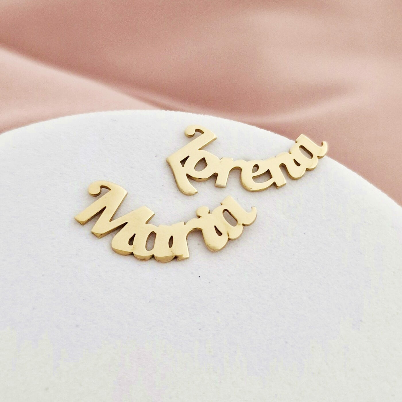 Cercei Personalizati cu Nume – Design Arcuit – Argint 925 placat cu Aur galben 18K