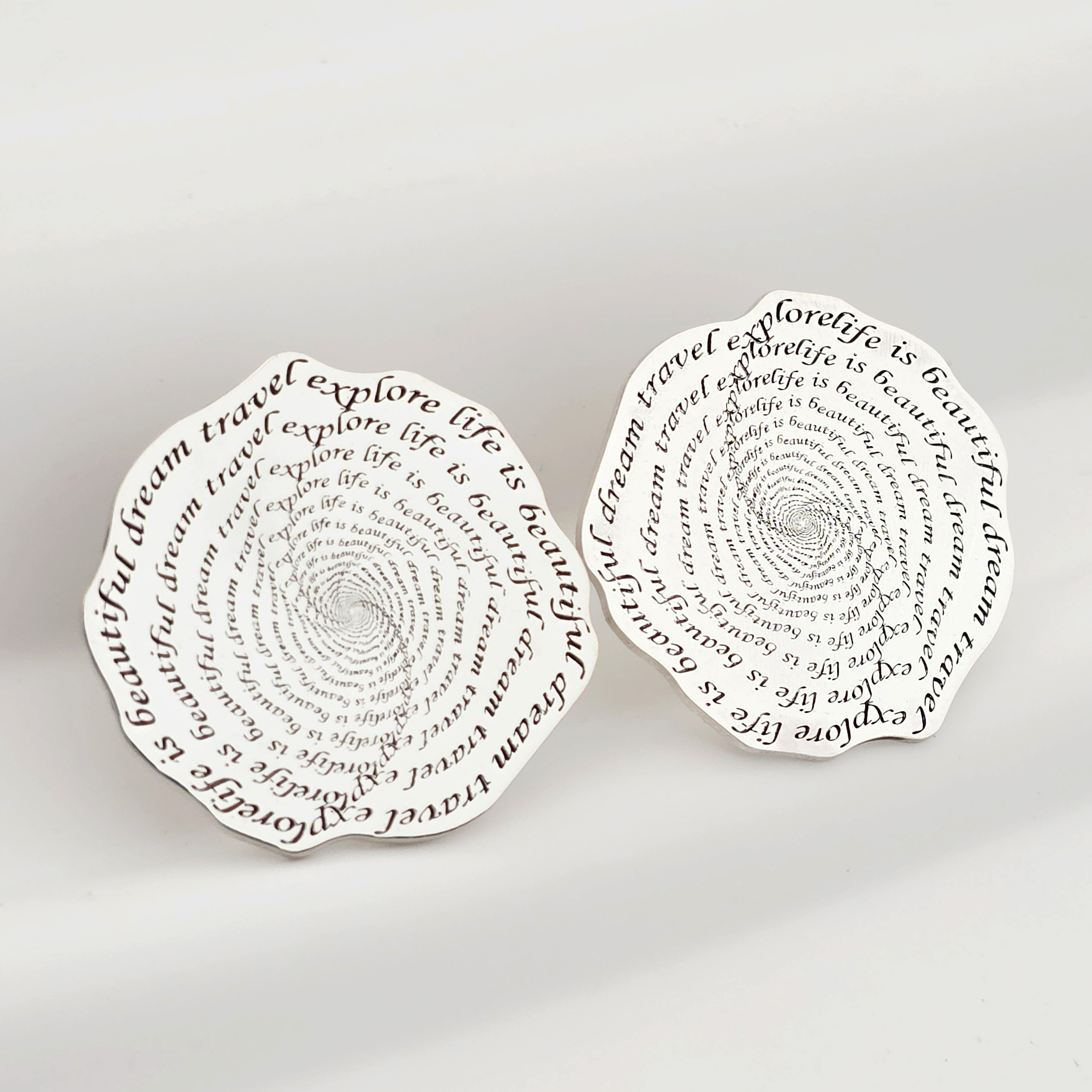 Cercei vortex - Model statement cu gravură - Argint 925 - Inchizatoare surub