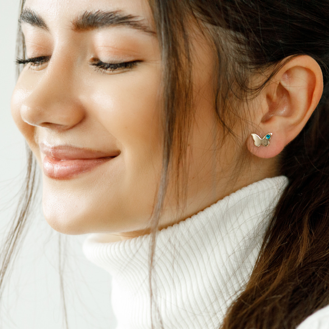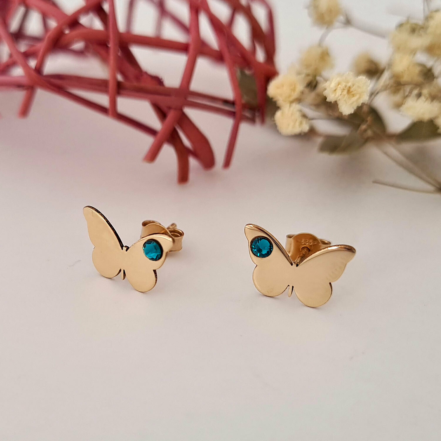 Cercei fluture - model simplu cu cristal Swarovski - Aur Galben 14K - inchidere surub