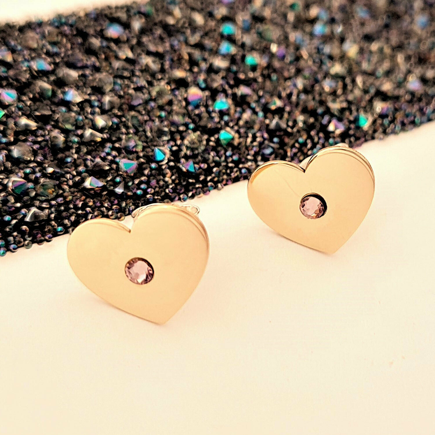 Cercei inima - model cu cristal Swarovski - Aur Galben 14K - inchidere surub