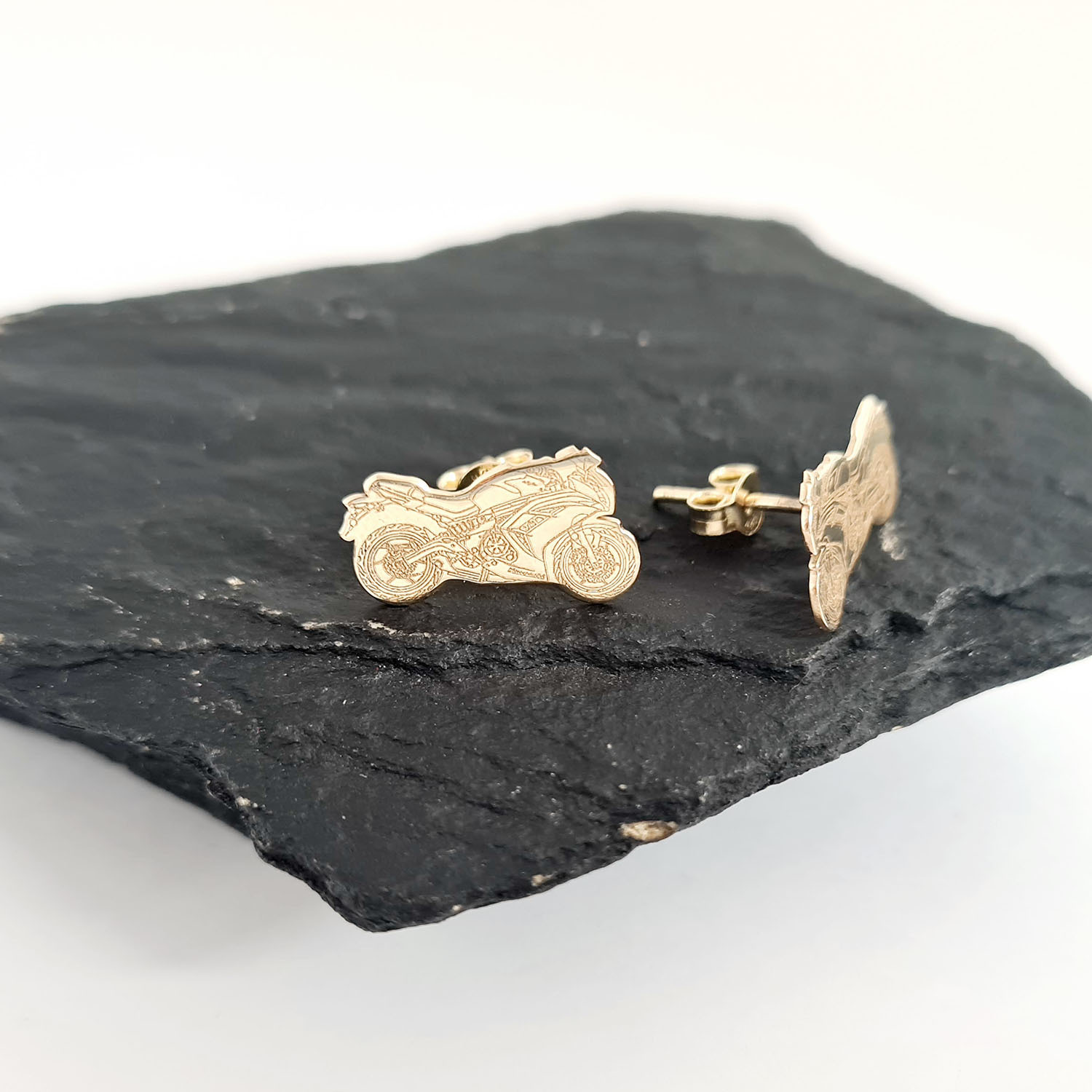 Cercei personalizati - Motocicleta Kawasaki - Aur Galben 14K - Inchidere tip surub