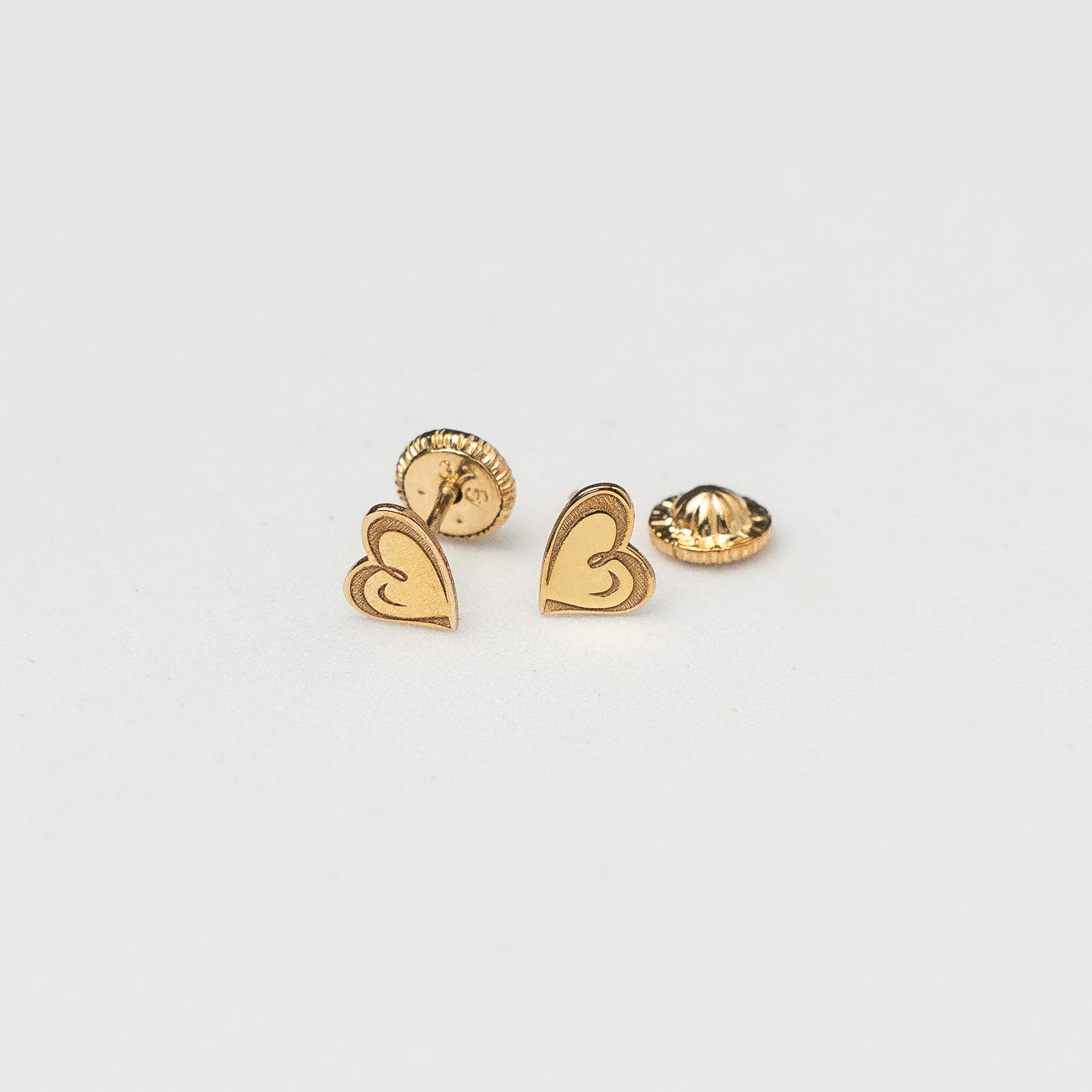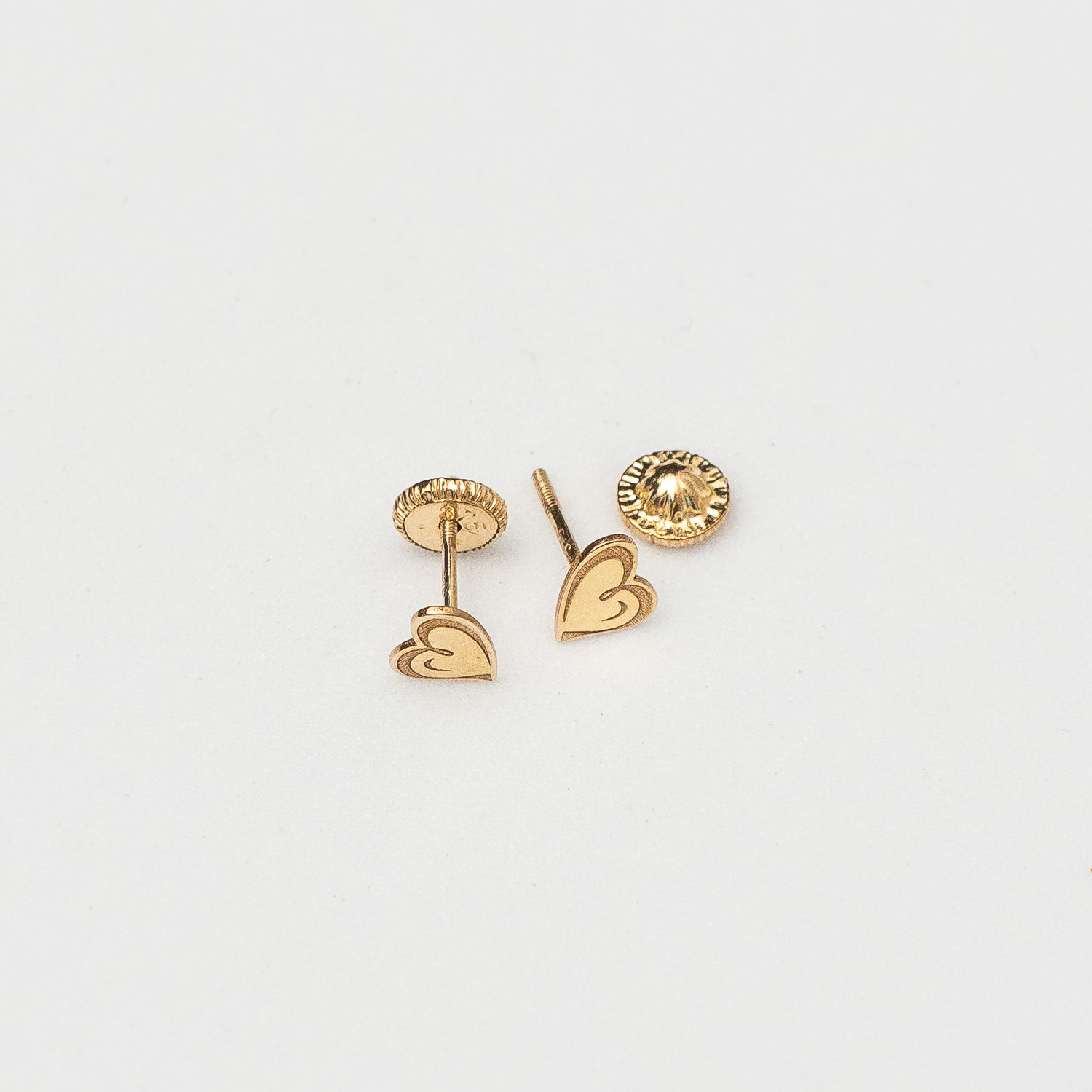 Cercei copii/bebe - Model inima conturata - Aur Galben 9K - Inchizatoare sigura si confortabila cu filet