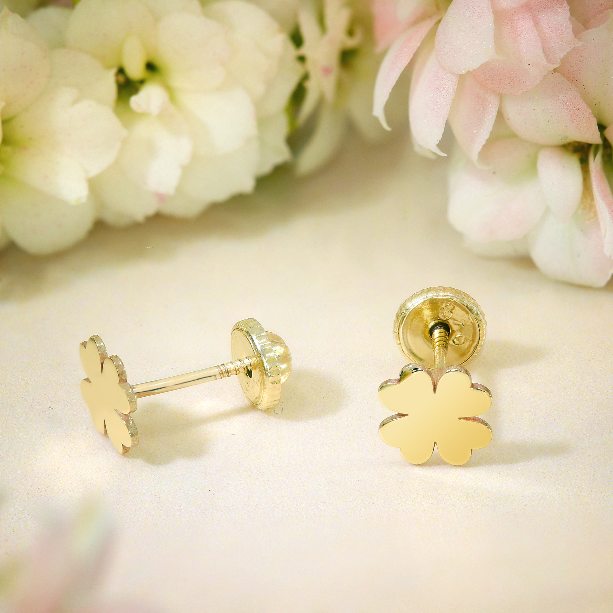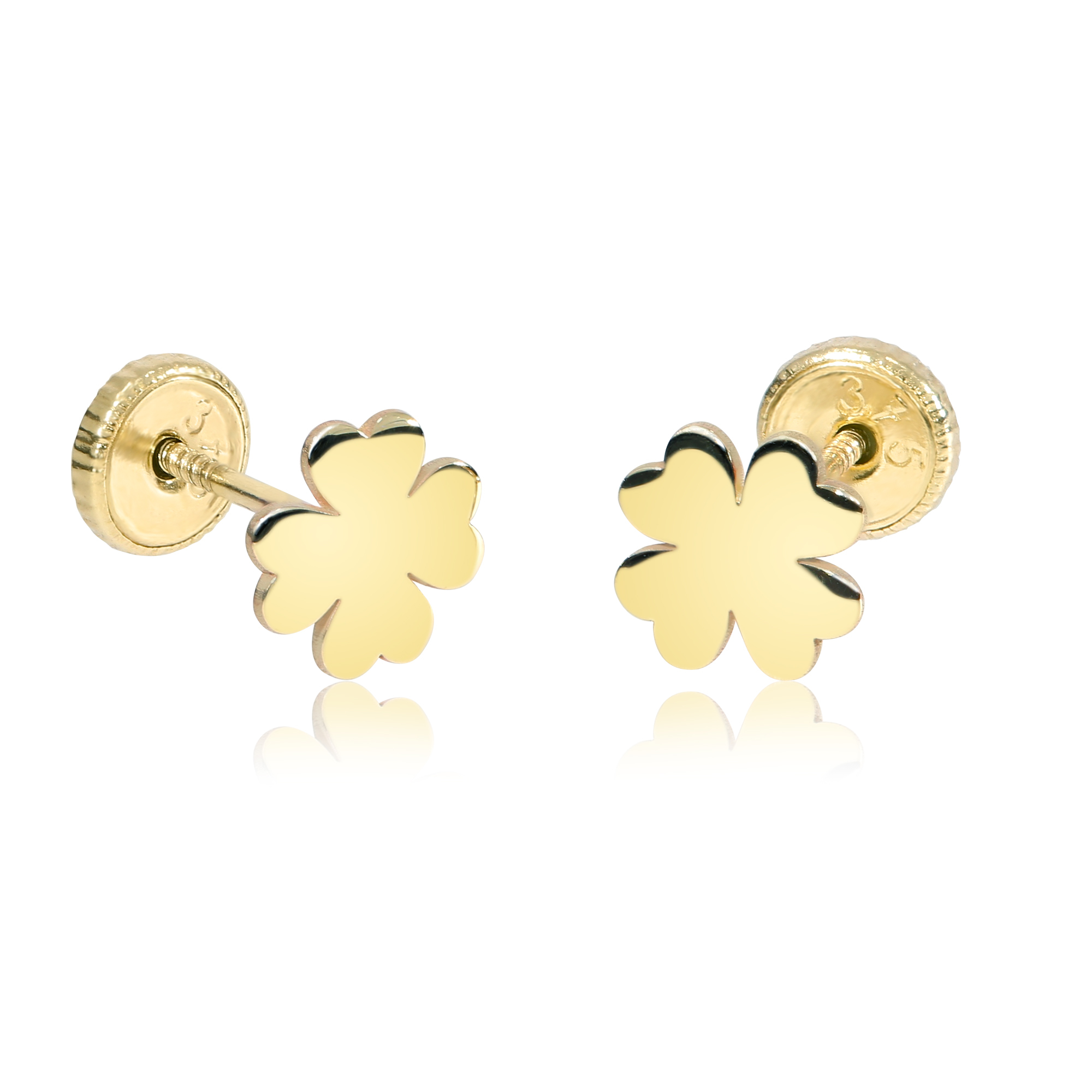 Cercei copii/bebe - Model trifoi - Aur Galben 9K - Inchizatoare sigura si confortabila cu filet