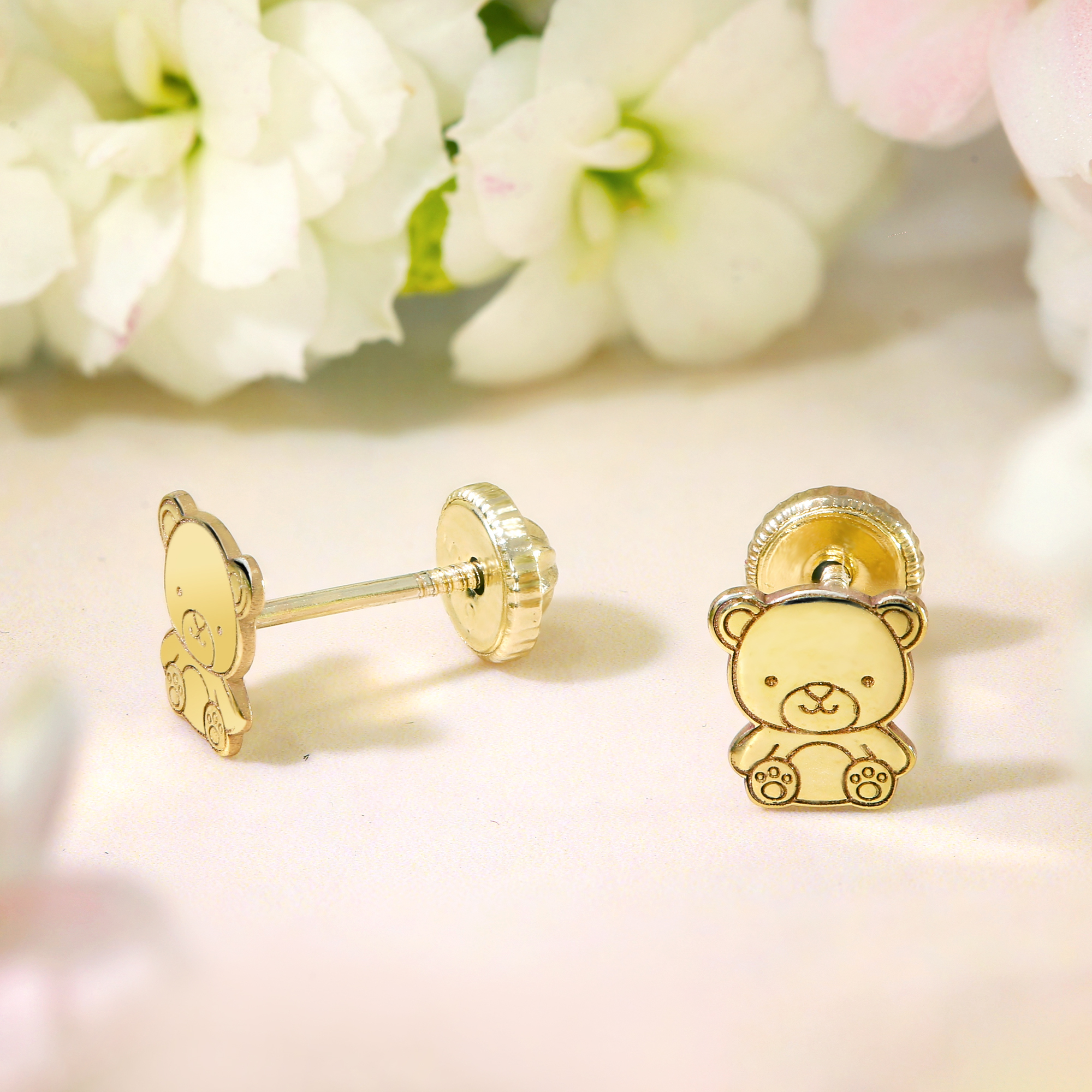 Cercei copii/bebe - Model ursulet - Aur Galben 9K - Inchizatoare sigura si confortabila cu filet