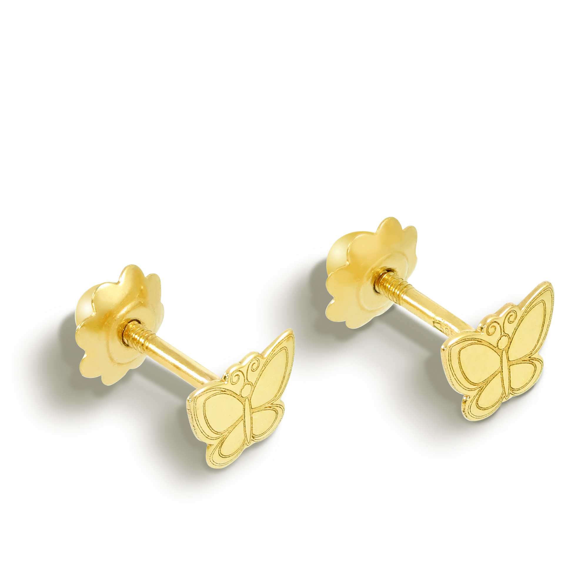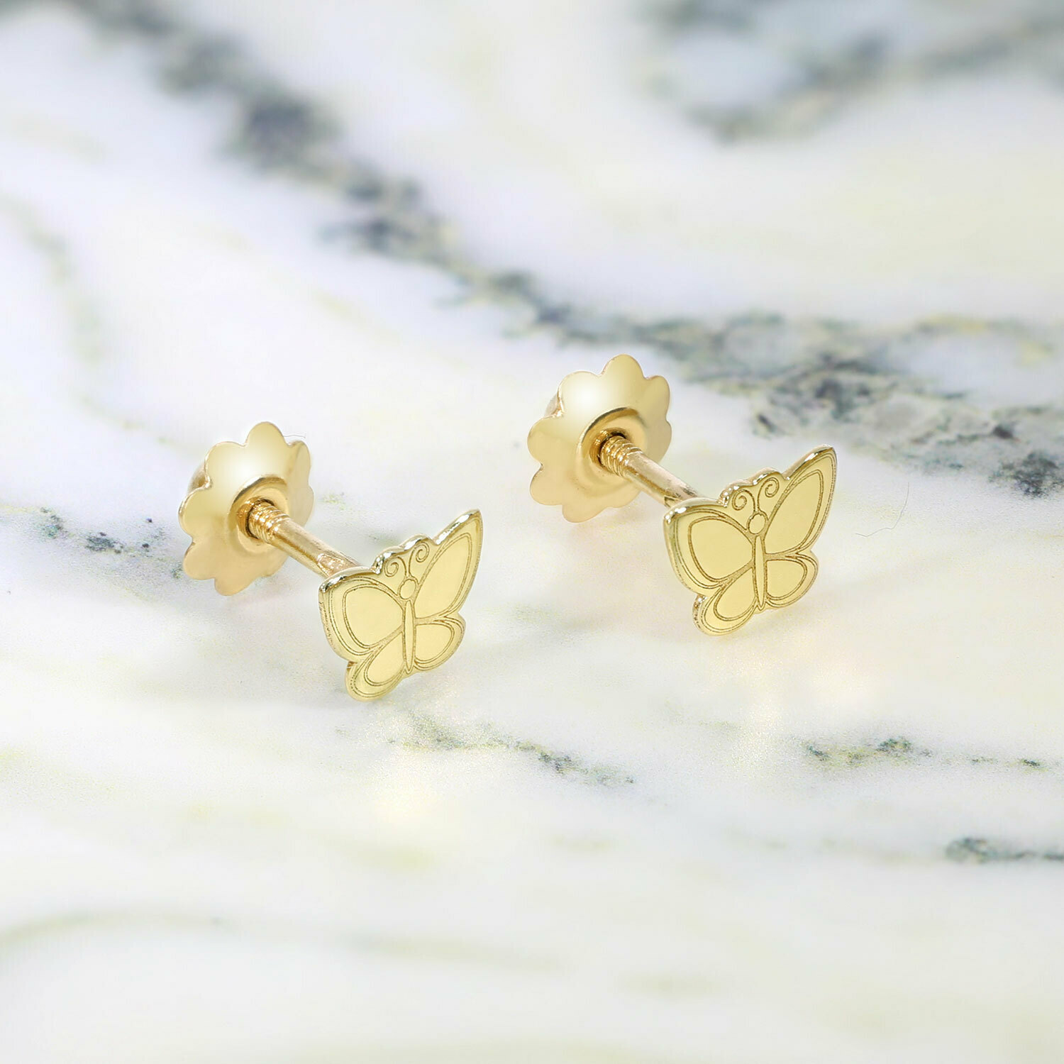Cercei copii/bebe - Model fluture - Aur Galben 14K - Inchizatoare sigura si confortabila cu filet