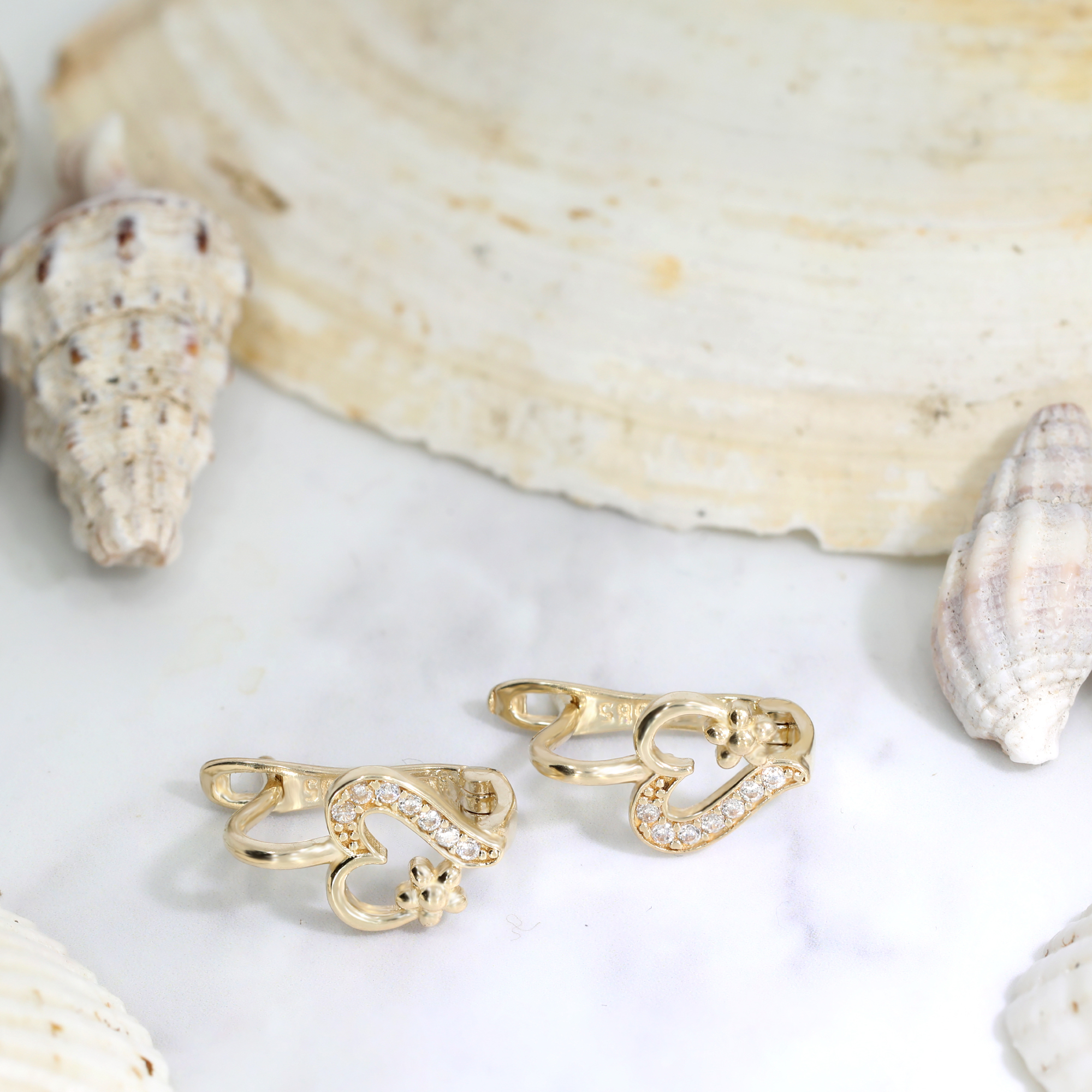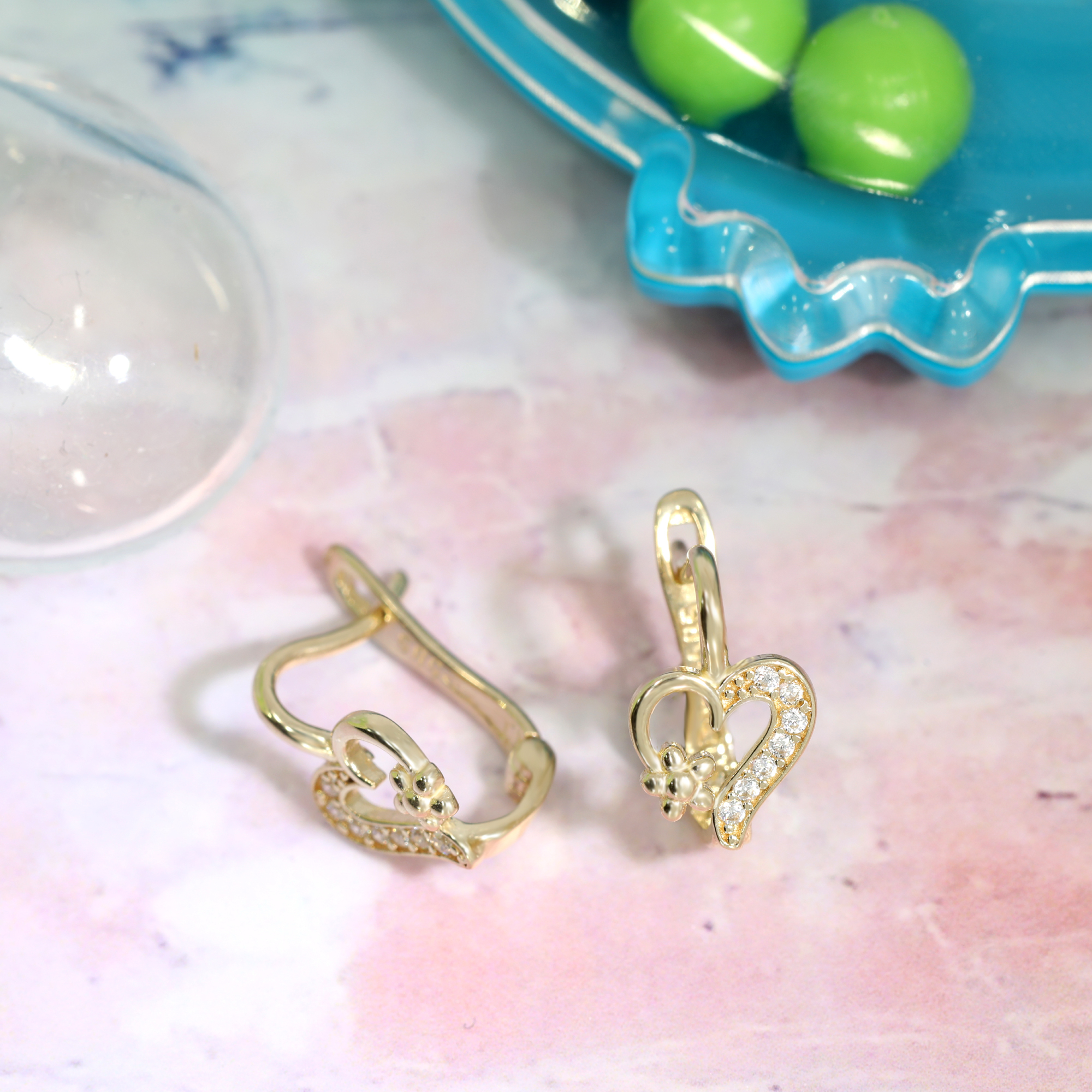 Cercei copii/bebe - Model Precious Heart - Aur Galben 14K - Cubic Zirconia - Inchizatoare sigura cu tortita