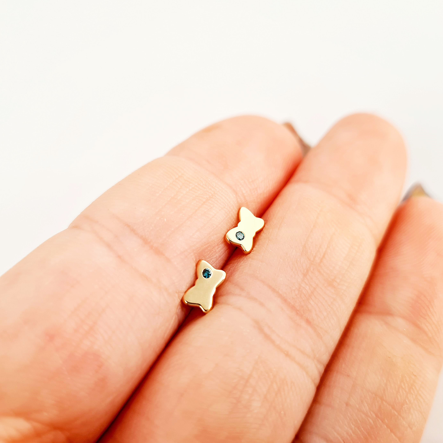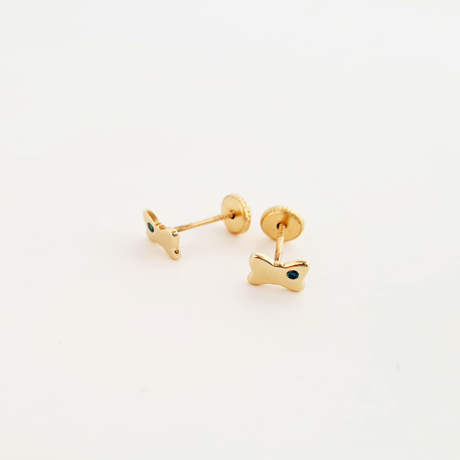 Cercei bebe/fetite cu Diamant naturat albastru - Model fundite - Aur Galben 14K - Inchizatoare sigura si confortabila cu filet