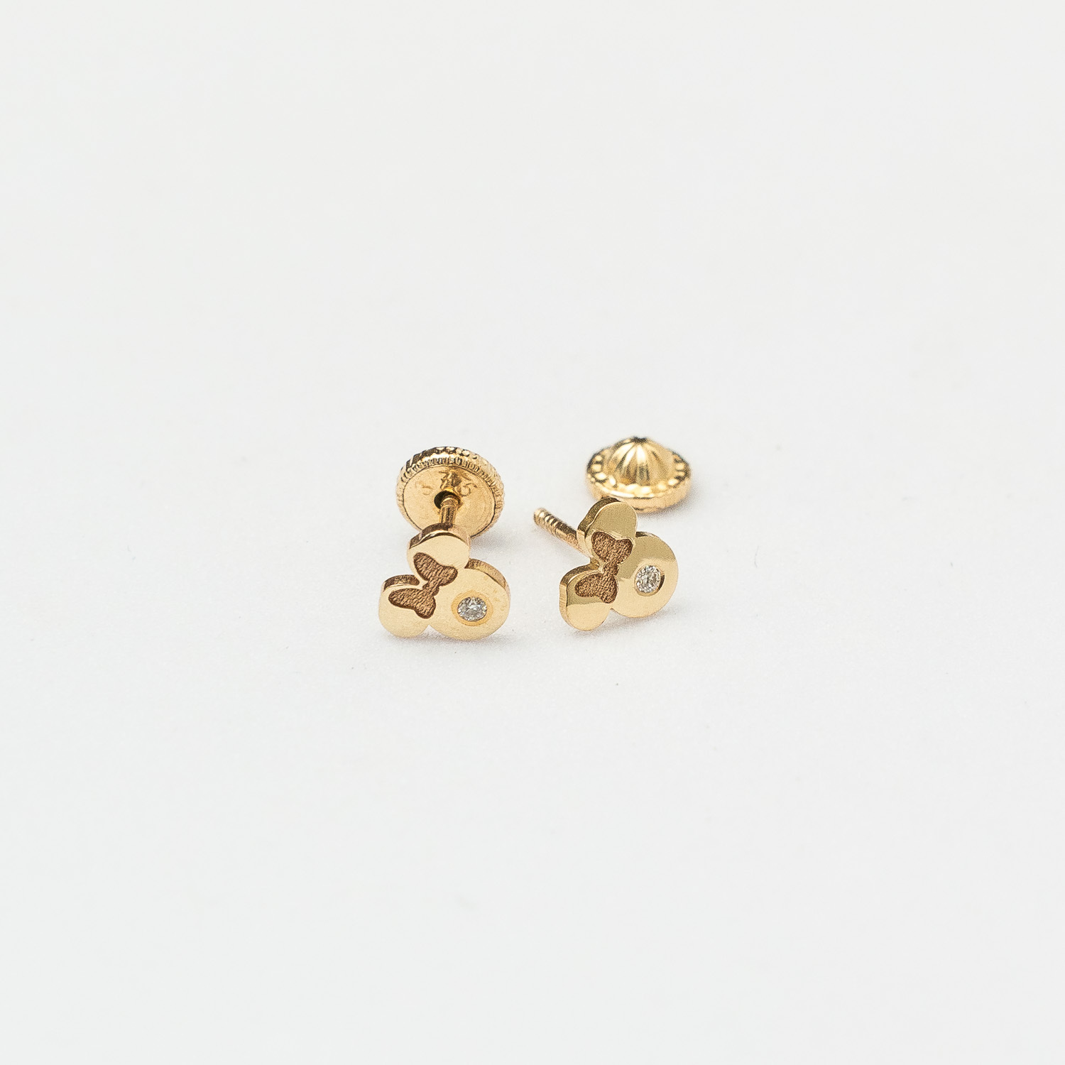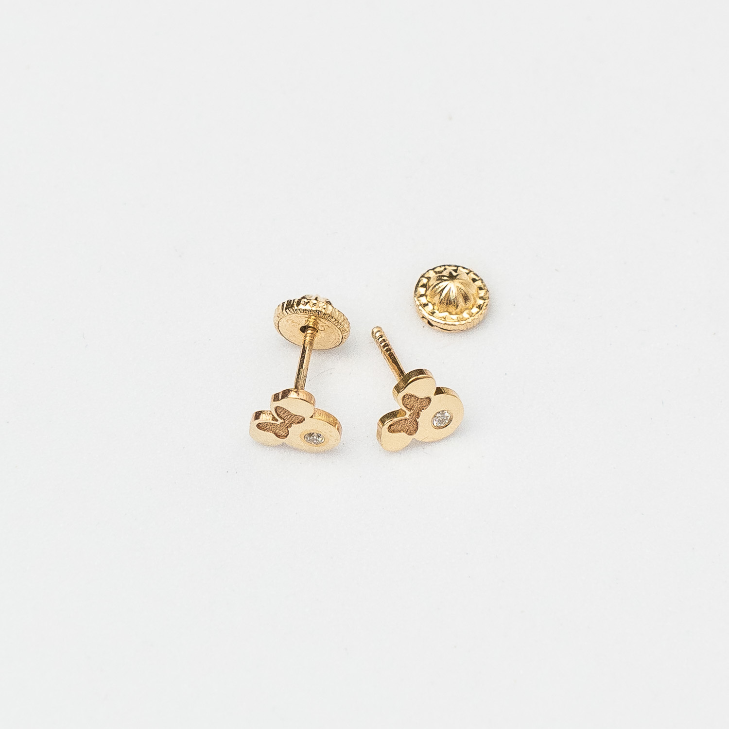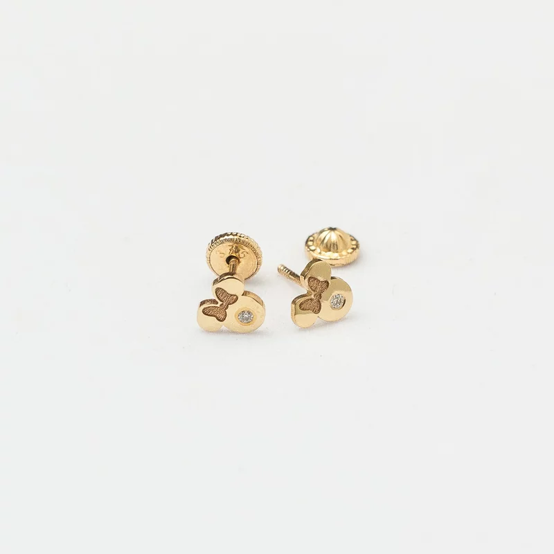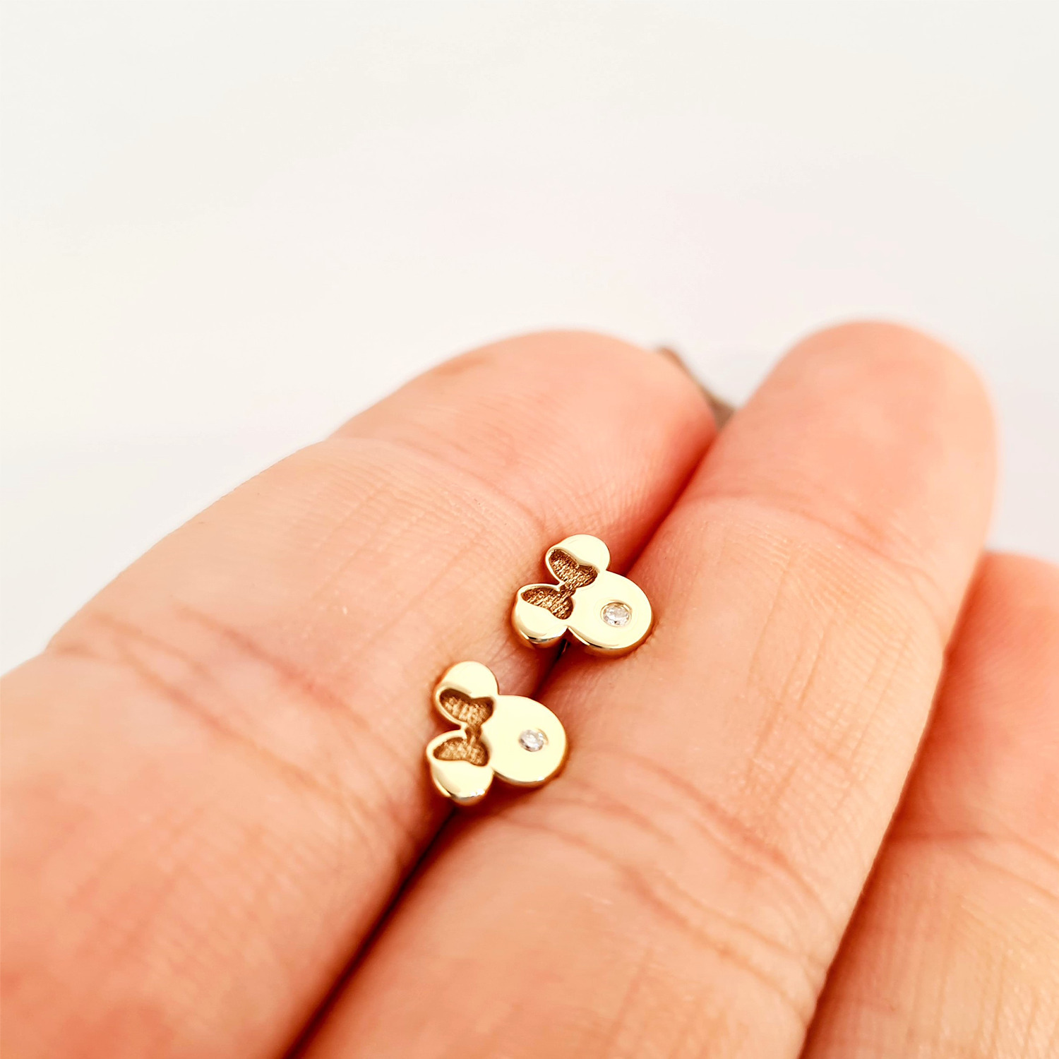 Cercei bebe/fetite cu Diamant natural - Model Minnie Mouse - Aur Galben 14K - Inchizatoare filet