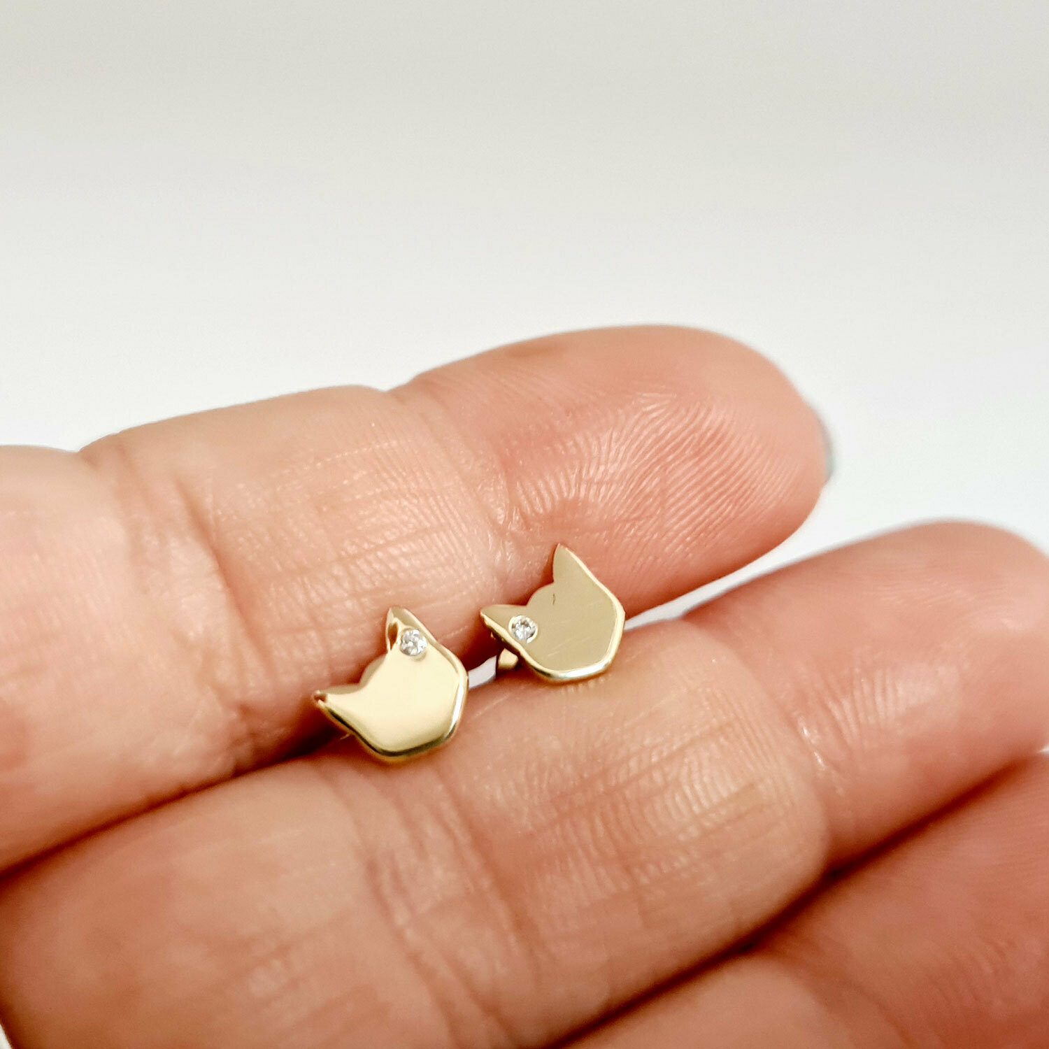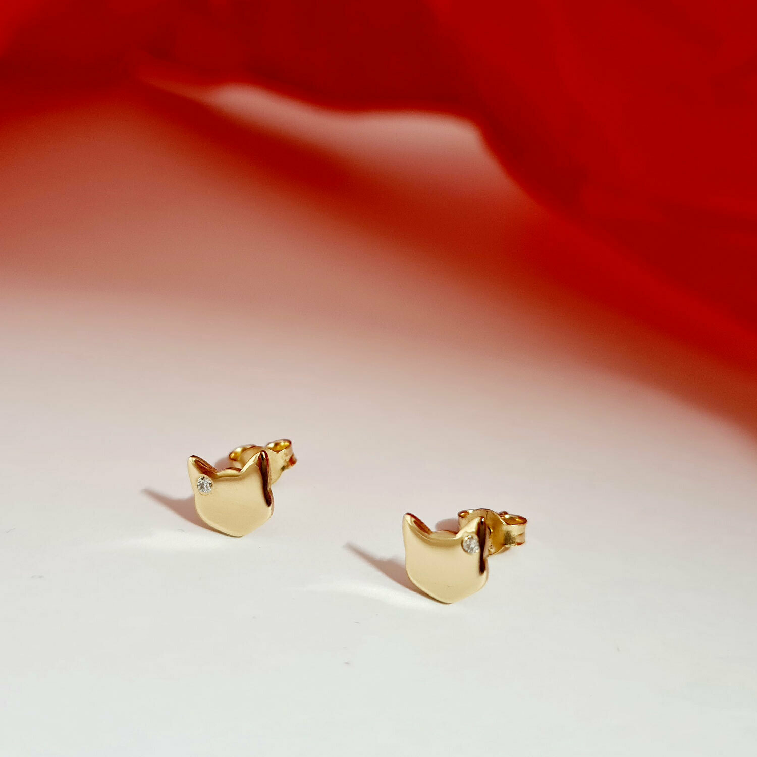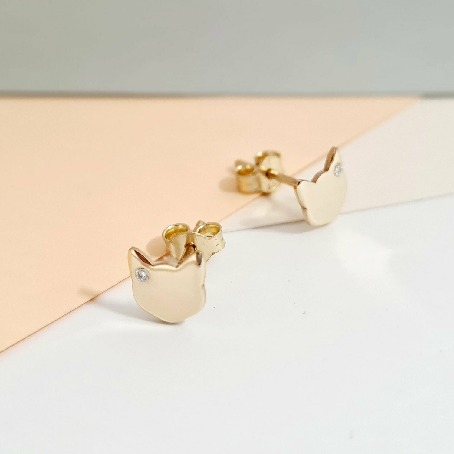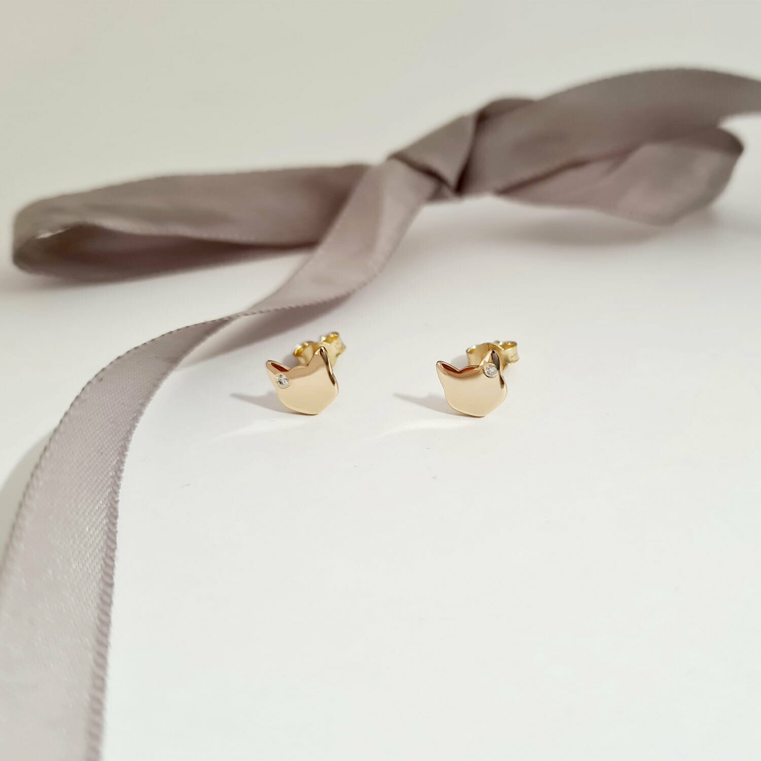 Cercei cu Diamante naturale - Pisica - Aur Galben 14K - Inchizatoare surub