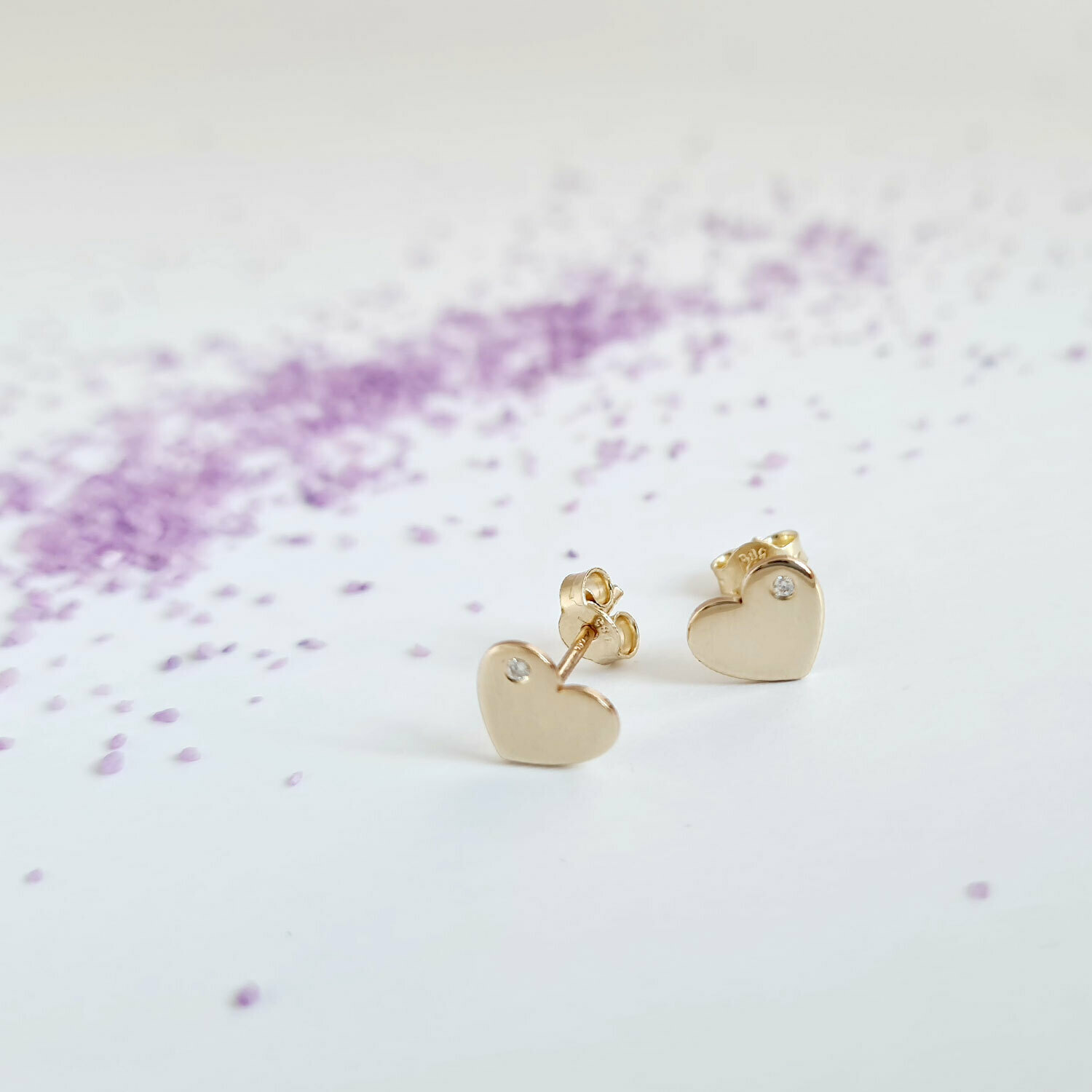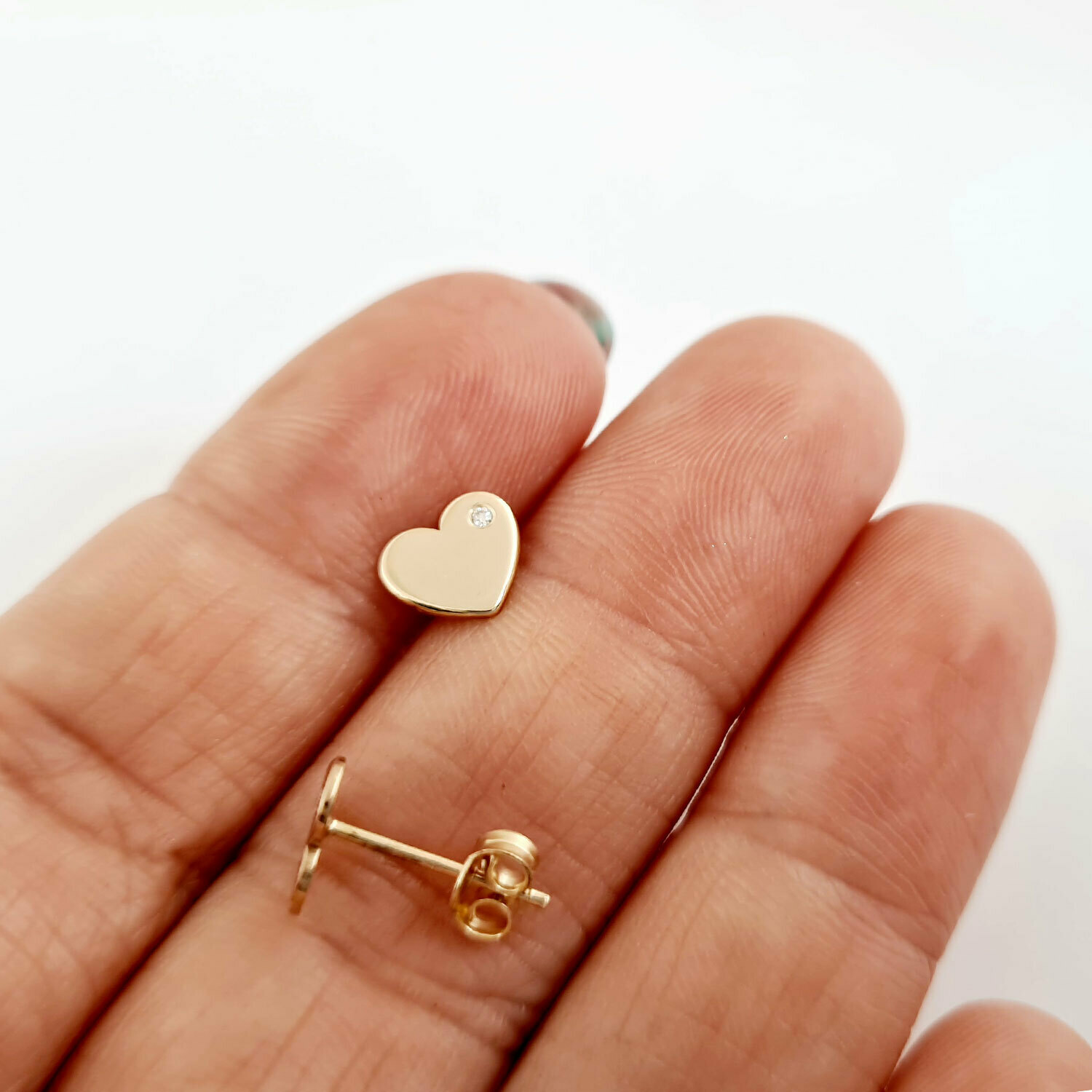 Cercei cu Diamante naturale - Inima - Aur Galben 14K - Inchizatoare surub