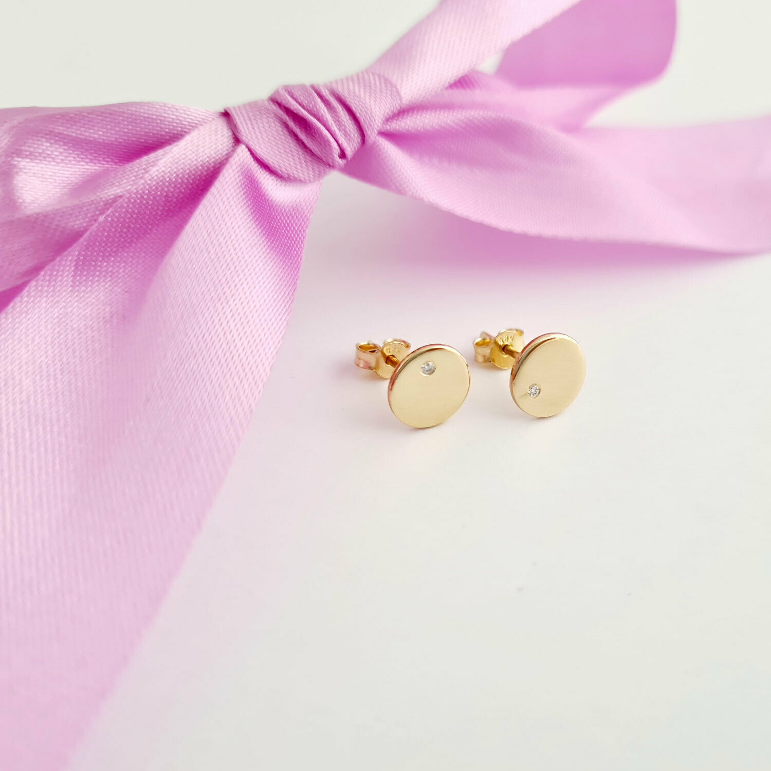 Diamantele folosite in realizarea perechii de cercei sunt Collection Grade, cu taietura rotunda, incolore si cu o claritate VVS1.Diametrul diamantului este de 1,25 mm, corespondent la aproximativ 0,009 carate.De asemenea acestea sunt garantate "Ethical sourced diamonds".