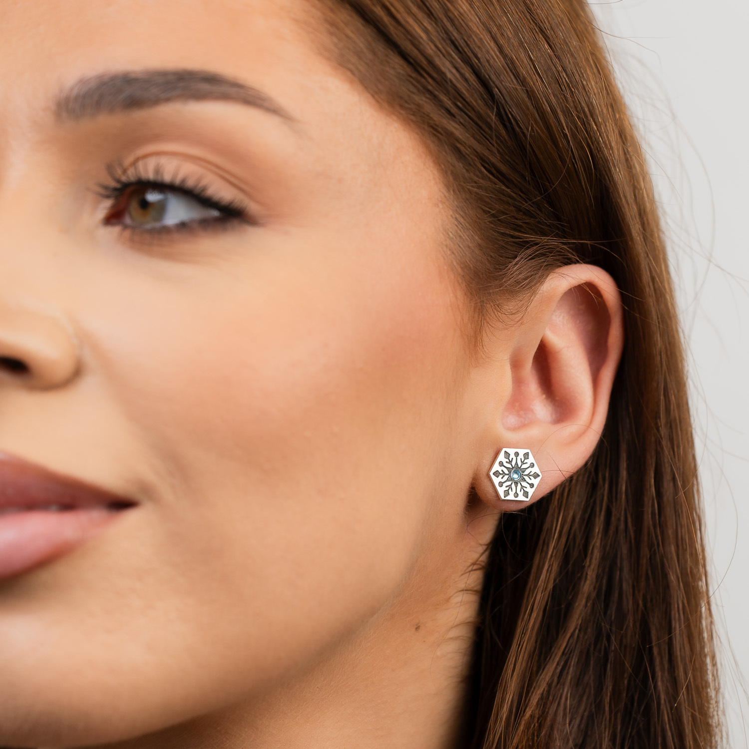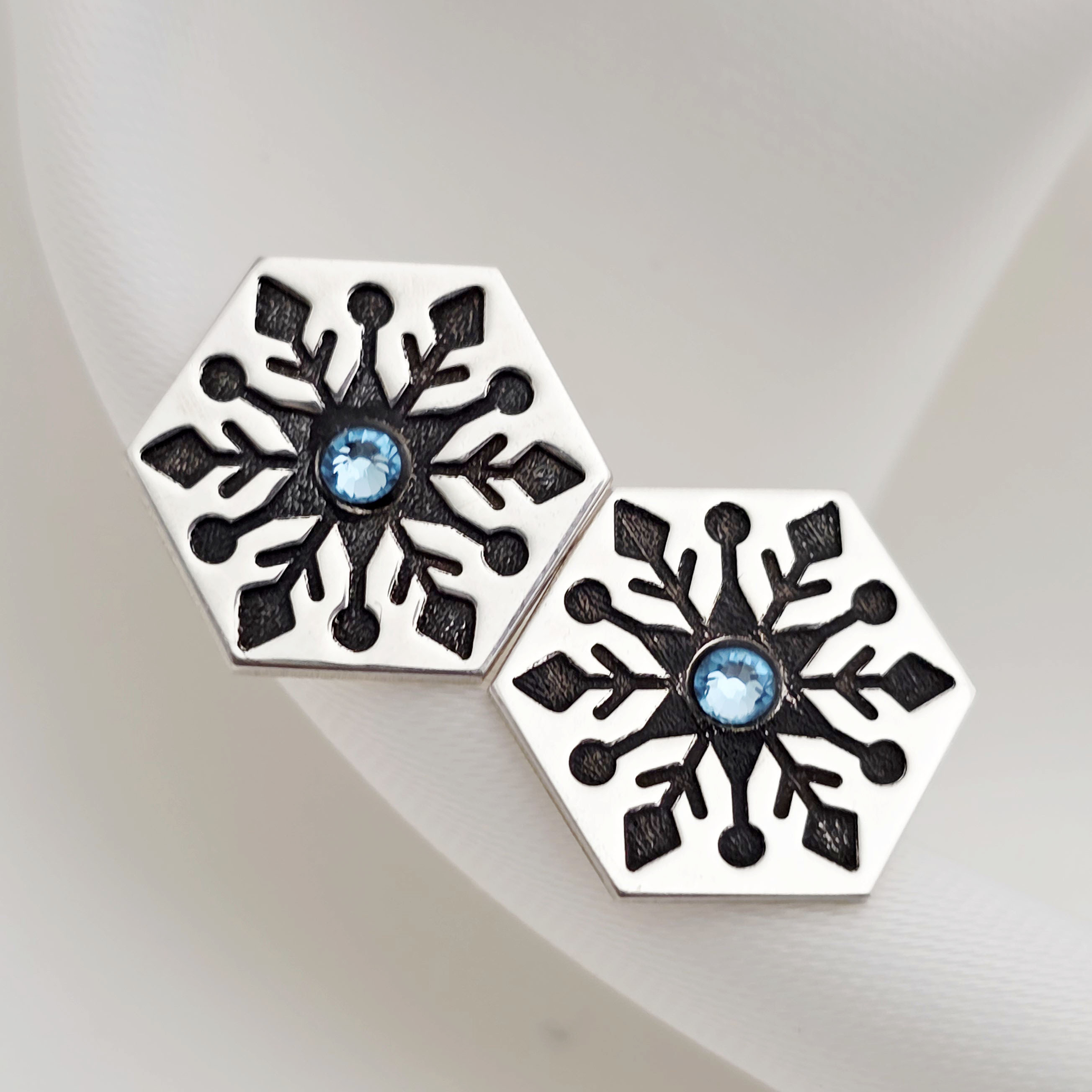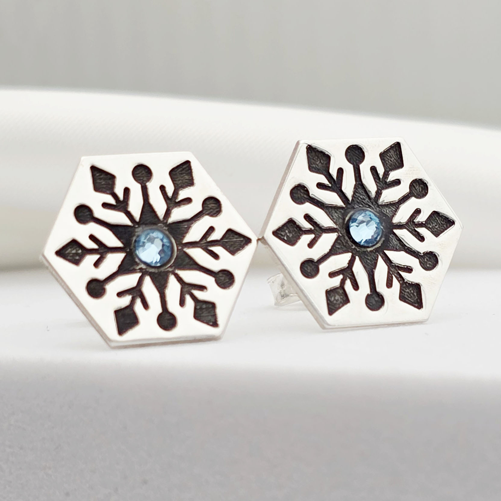Cercei Craciun - Model Hexagon - Cristal de zapada - Argint 925 - cristal Swarvski - inchidere surub