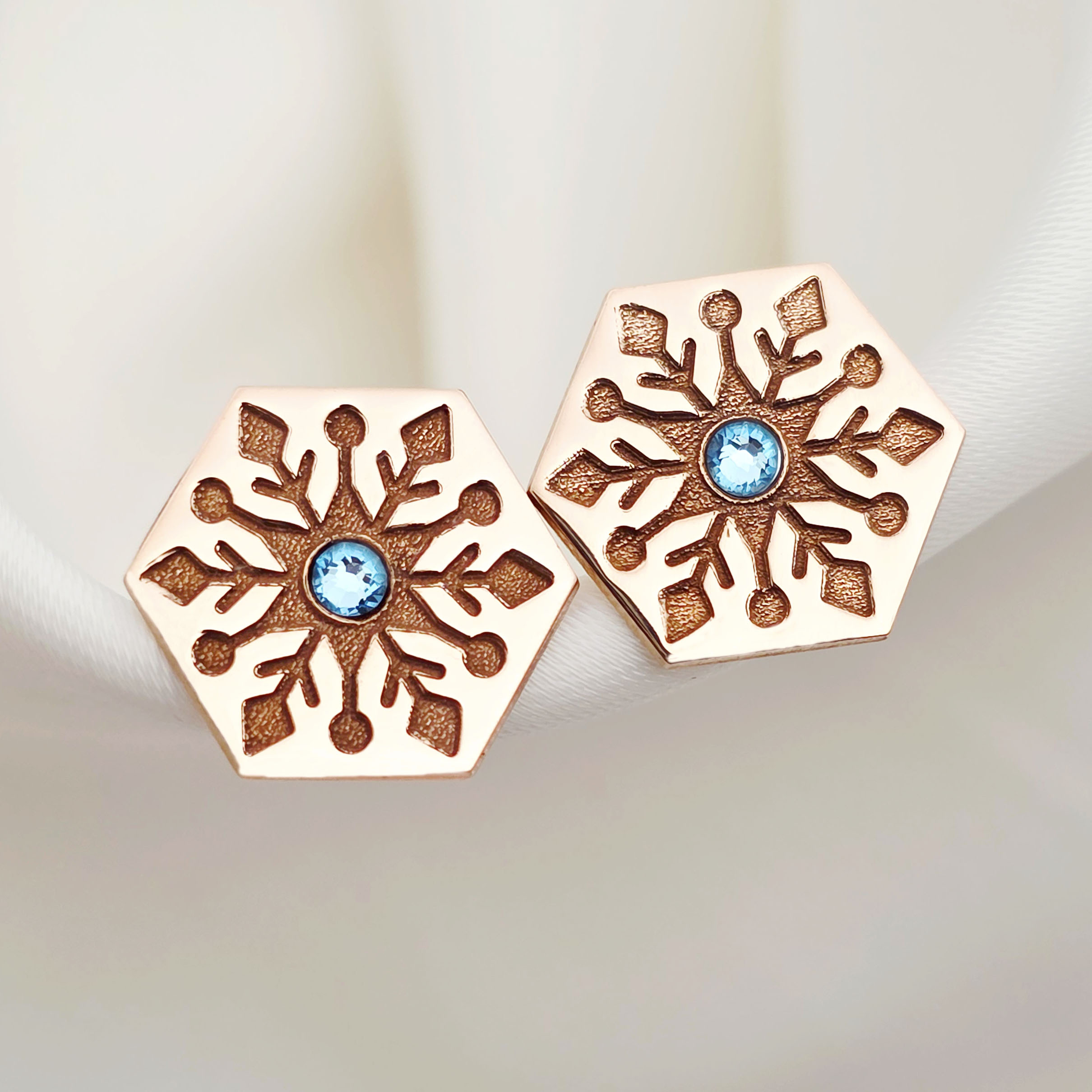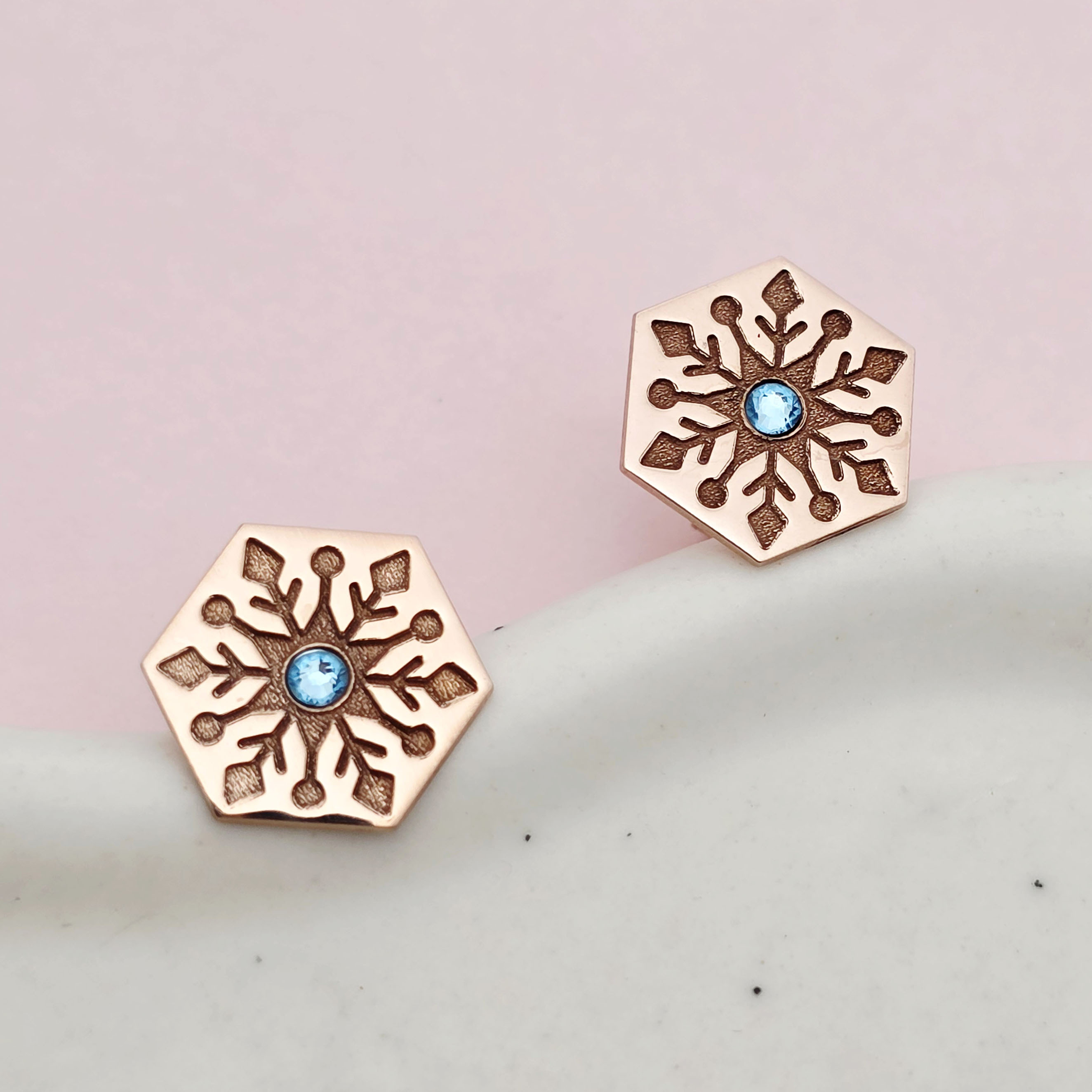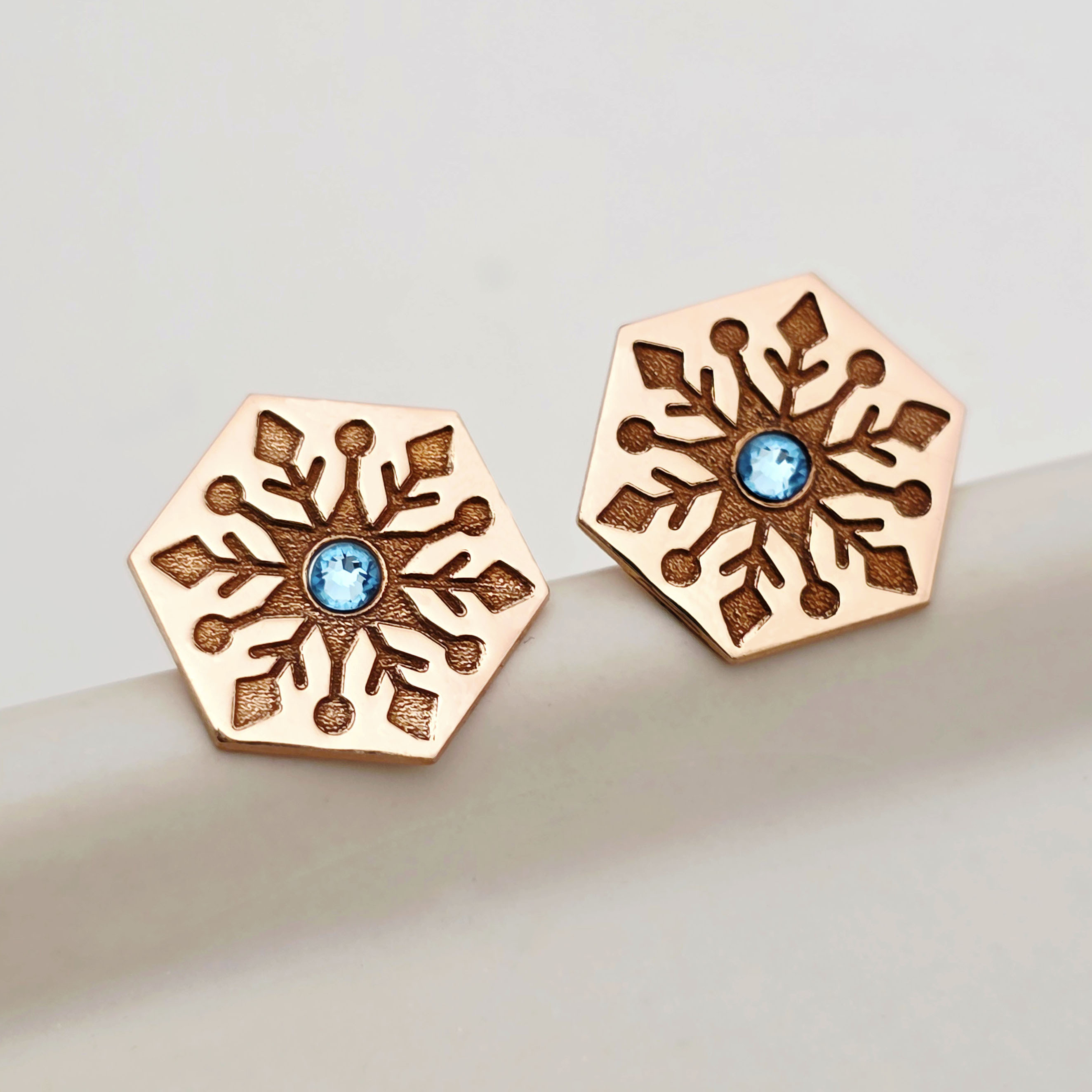 Cercei Craciun - Model Hexagon - Cristal de zapada - Argint 925 placat cu Aur roz 18K - cristal Swarovski- inchidere surub