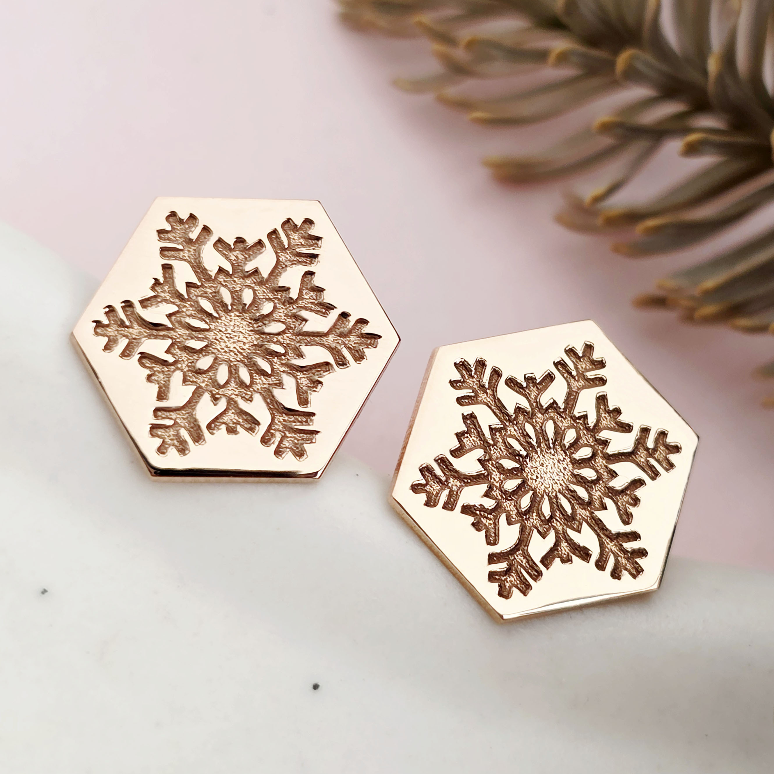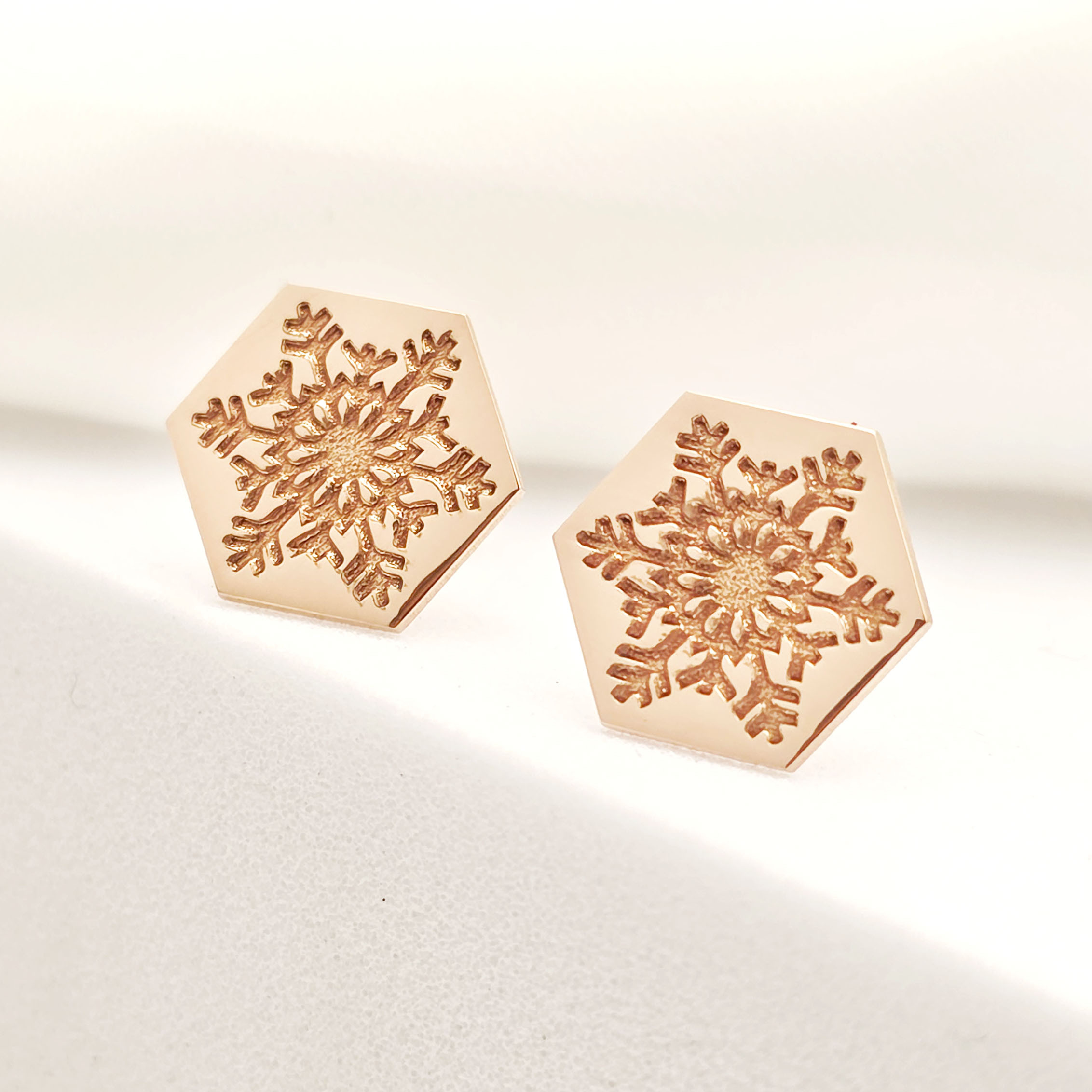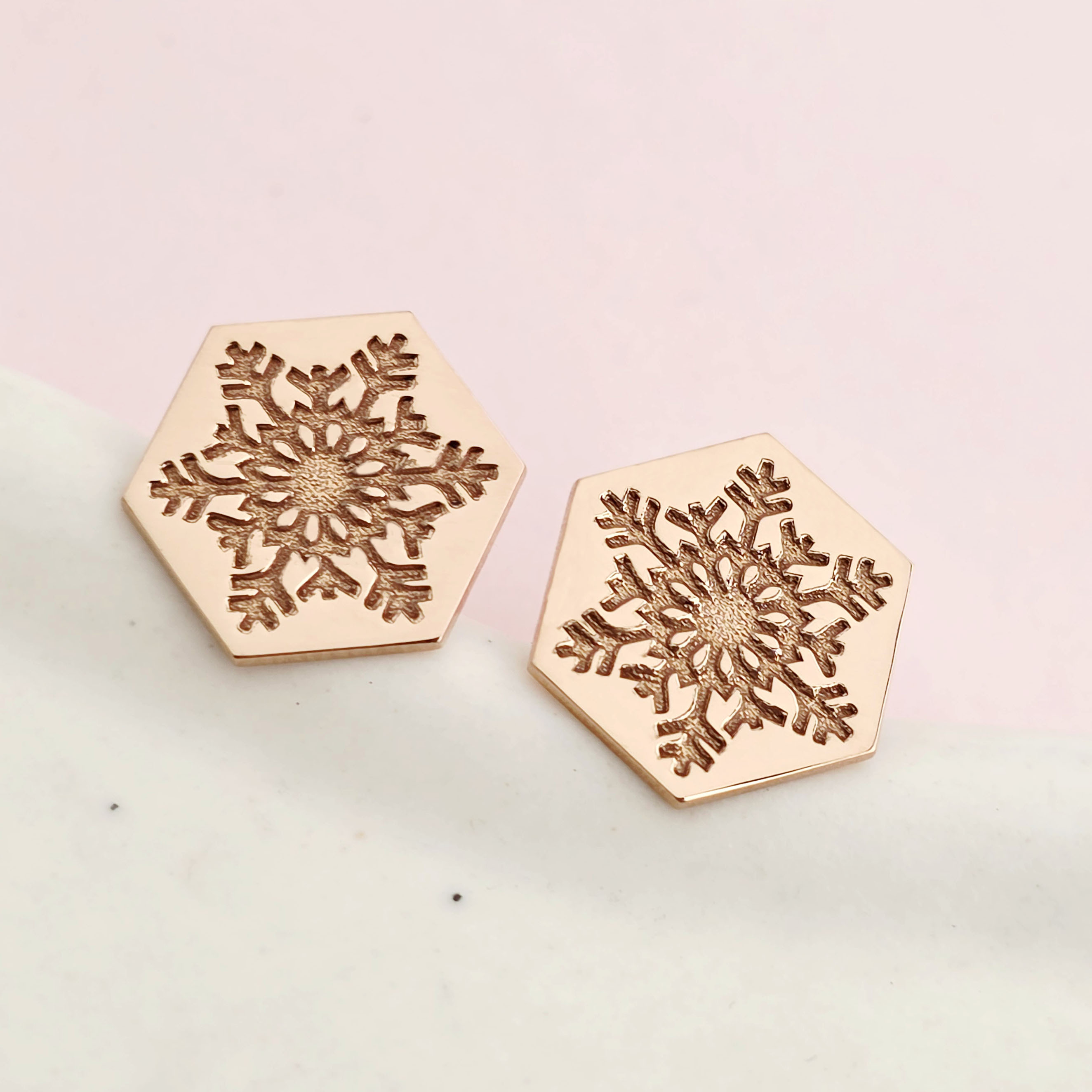 Cercei Craciun - Model Hexagon - Fulg de zapada - Argint 925 placat cu Aur roz de 18K - inchidere surub