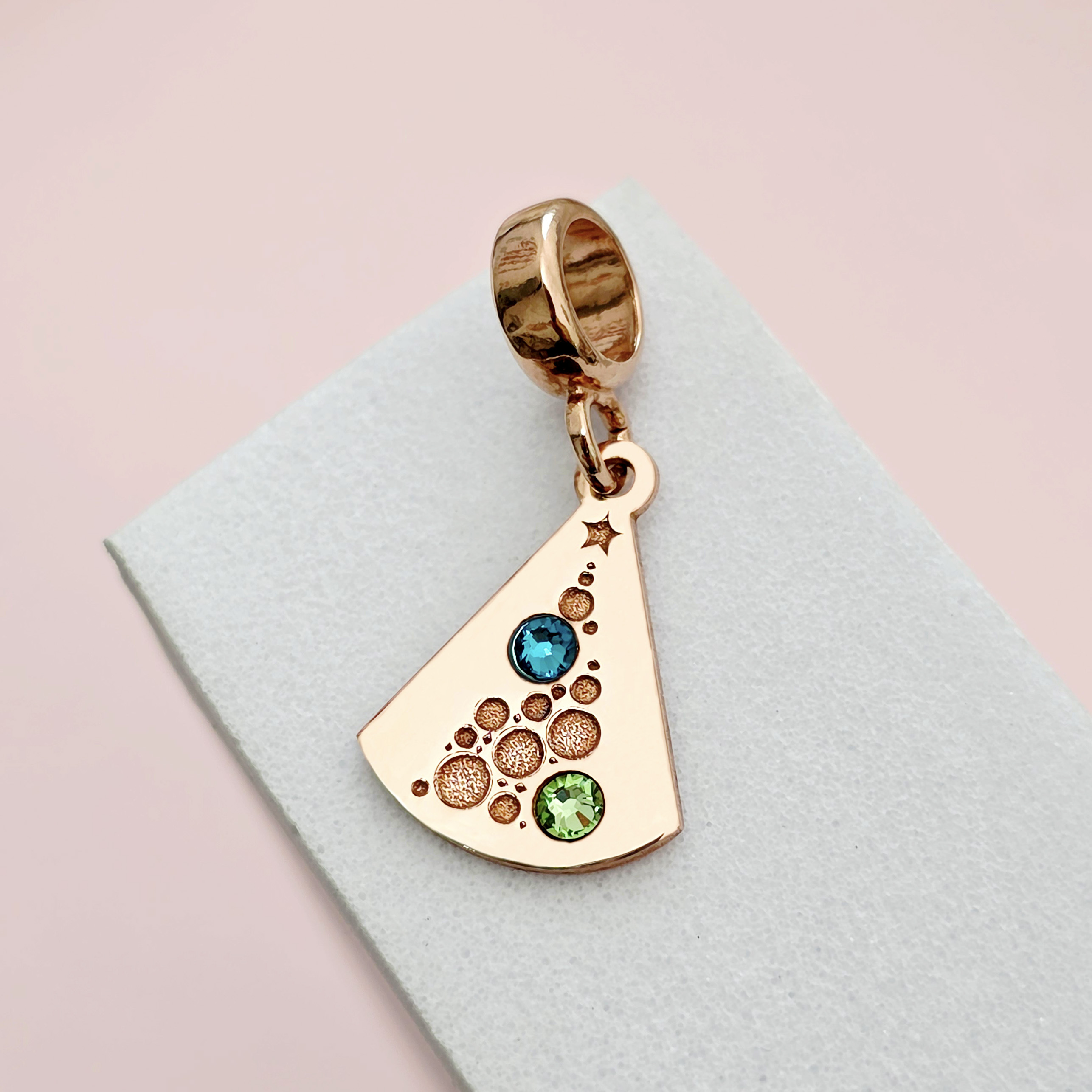 Charm personalizat Craciun - Brad cu globuri - Argint 925 placat cu Aur roz 18K - cristale Swarovski