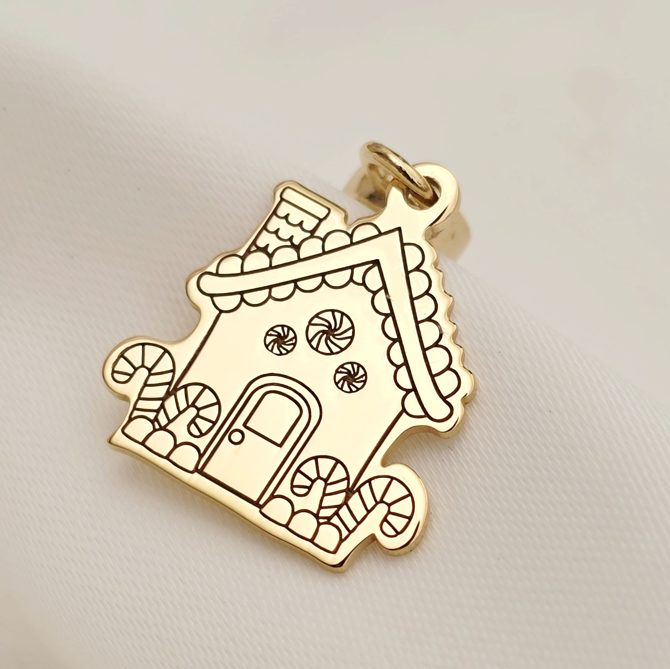 Charm personalizat Craciun - Casa de turta dulce - Argint 925 placat cu Aur galben 18K