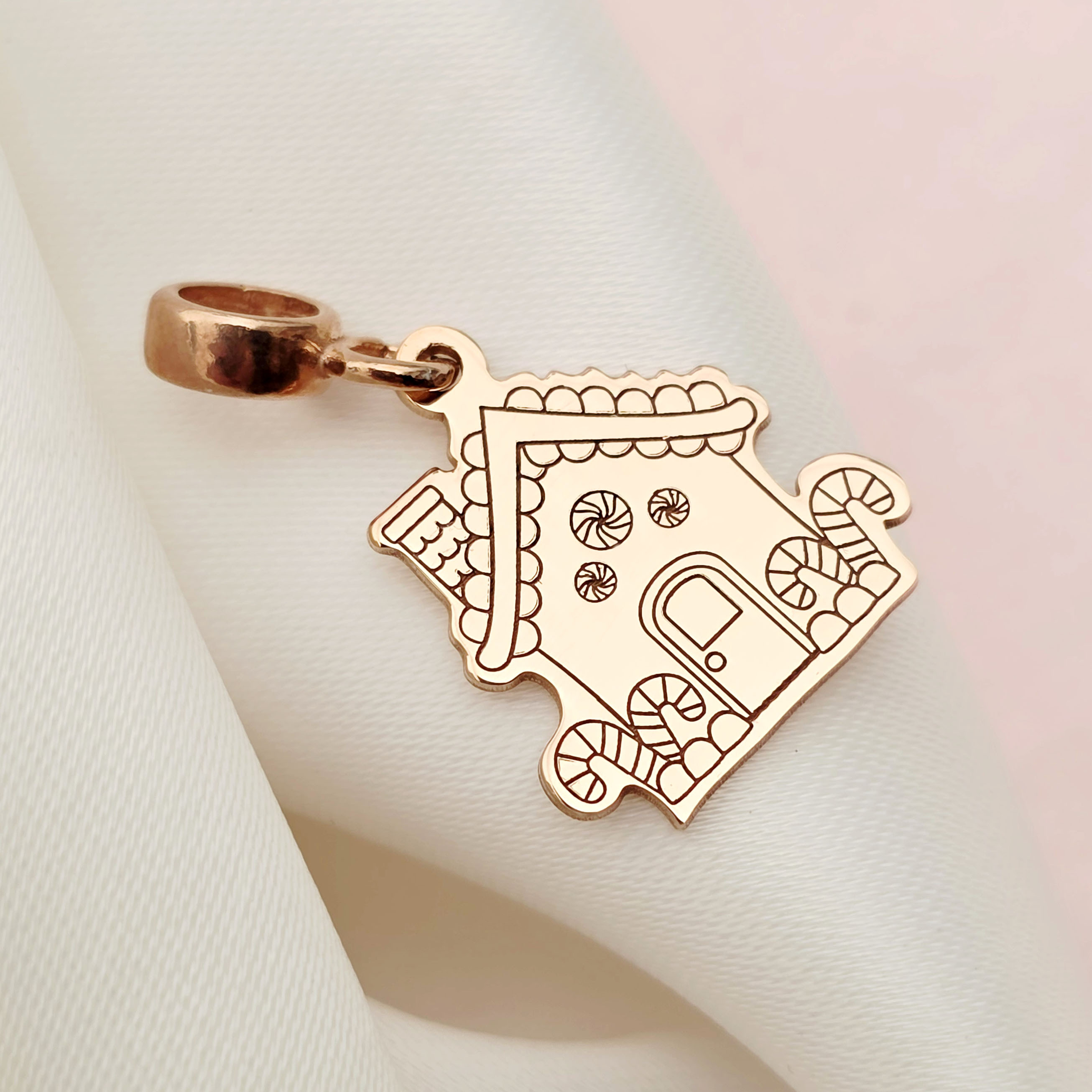 Charm personalizat Craciun - Casa de turta dulce - Argint 925 placat cu Aur roz 18K