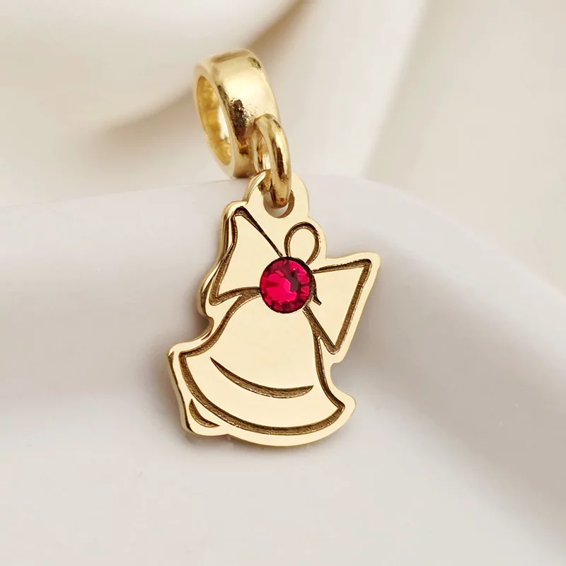 Charm personalizat Craciun - Clopotel - Argint 925 placat cu Aur galben 18K - cristal Swarovski