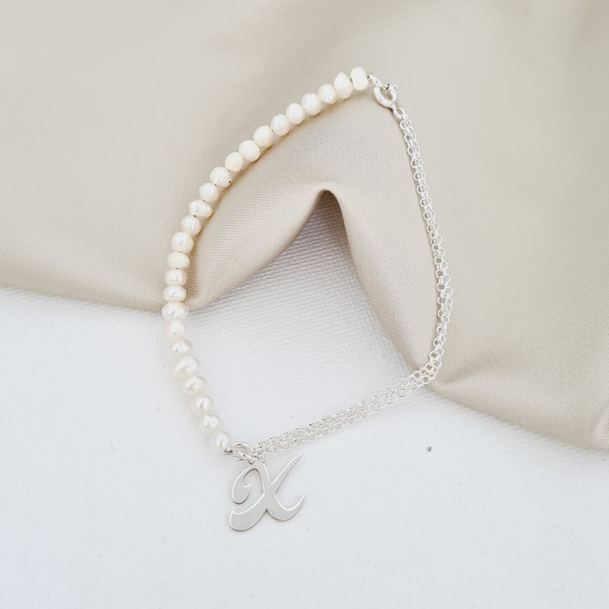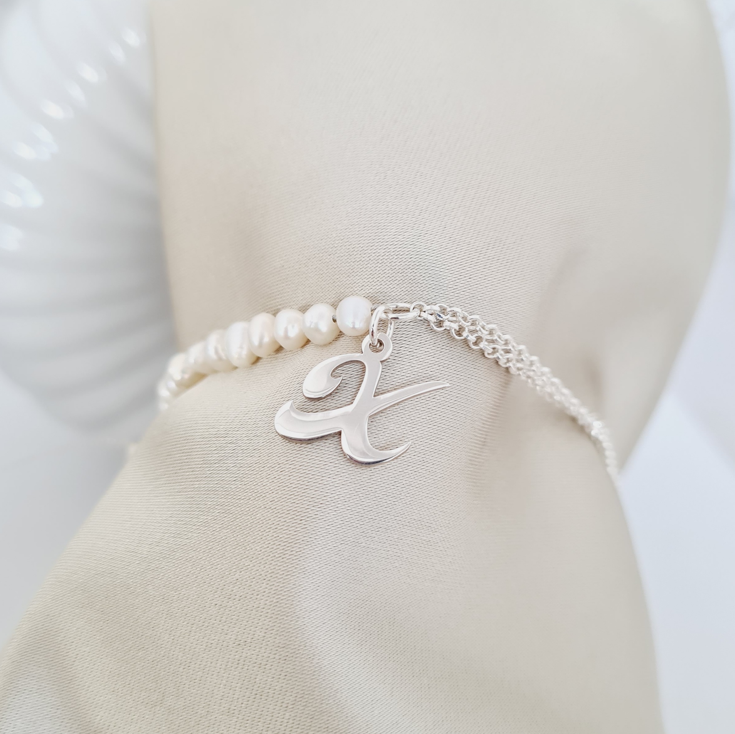 Bratara cu Perle - Initiala eleganta - Model combinat cu perle si lantisor - Argint 925
