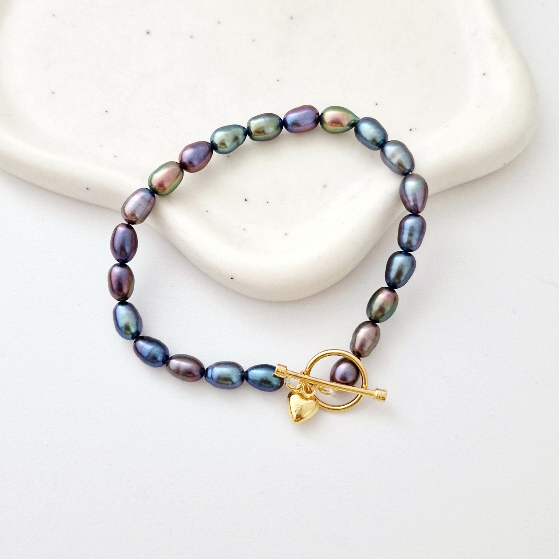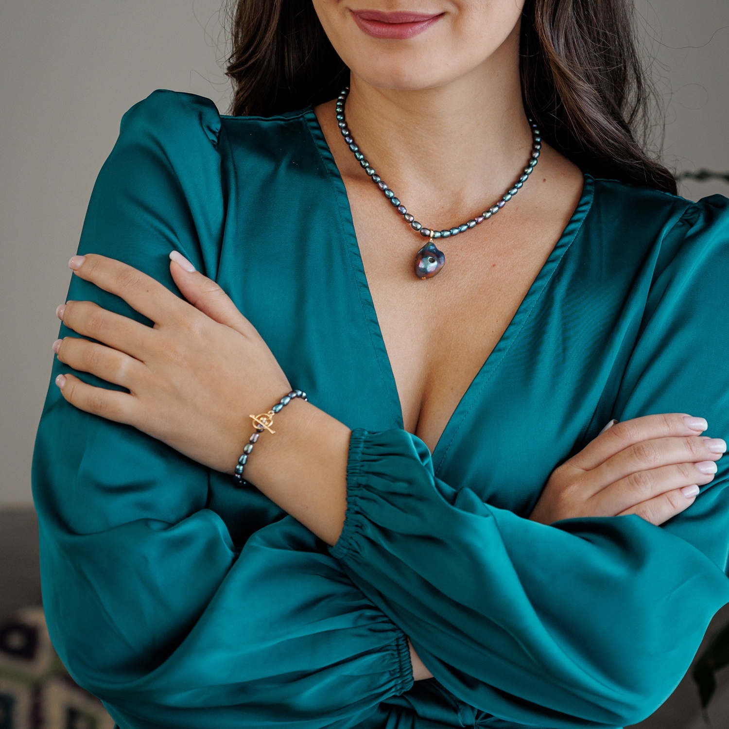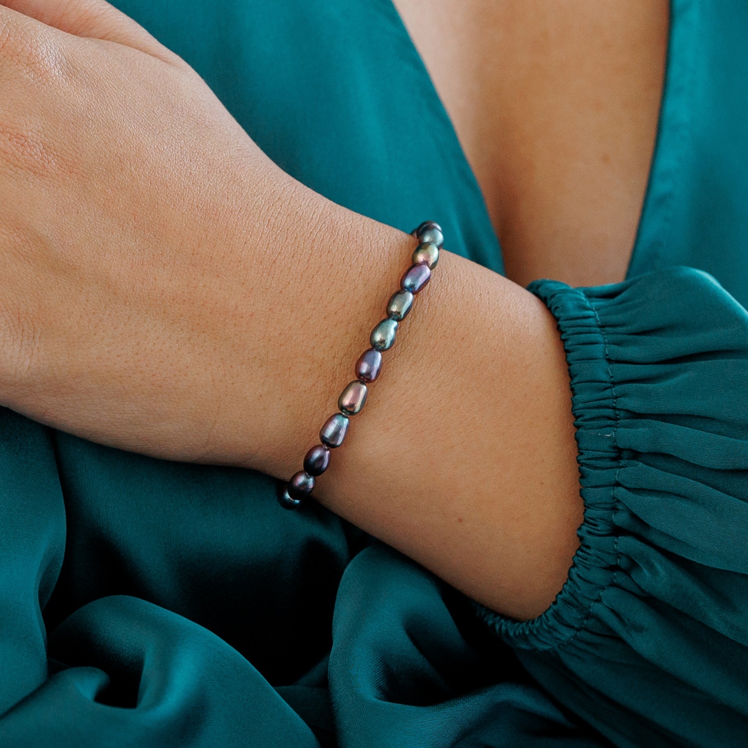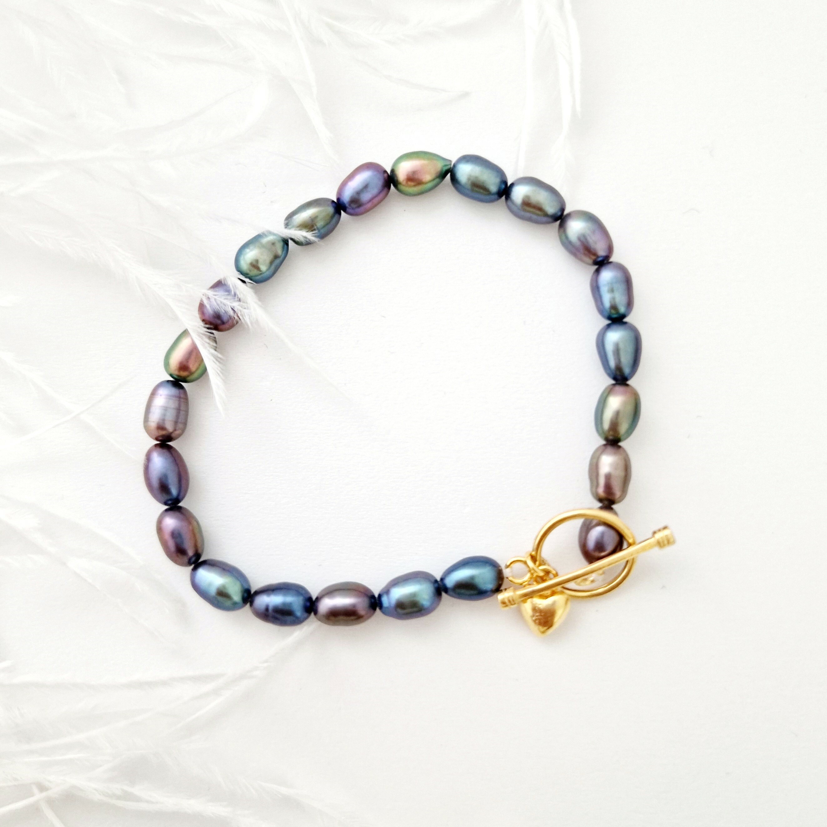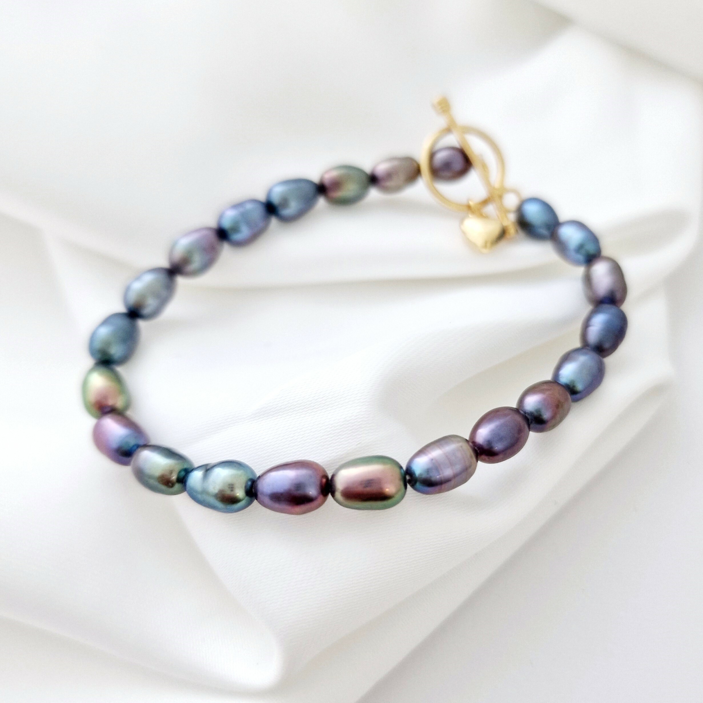 Bratara cu Perle - model sirag de perle rice peacock de apa dulce - Argint 925 placat cu Aur Galben 18K