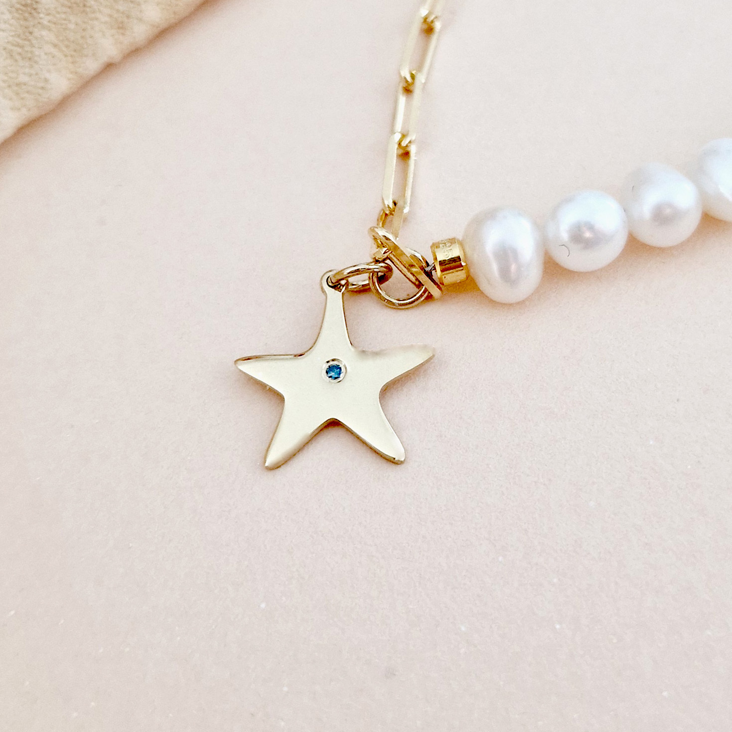 - Steluta de mare are dimensiunea de 12 mm iar la mijloc are un Diamant natural albastru.