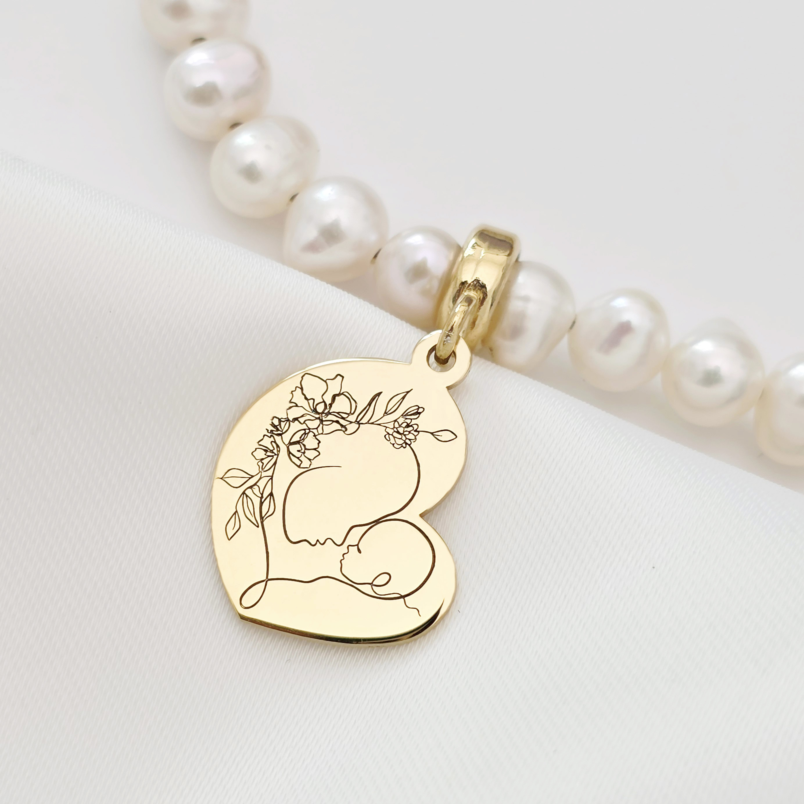 - Decorare: Perle naturale *** + medalion gravat cu silueta mama - copil
