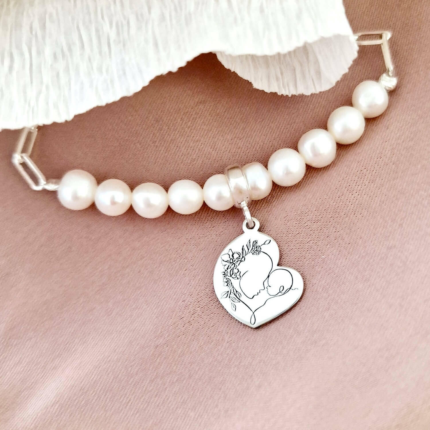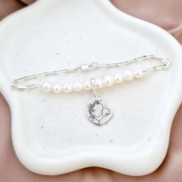 Bratara „Perlele Iubirii Materne” este creata din Argint 925, fiind alcatuita dintr-un sir de 10 perle naturale care se continua cu lantisor cu zale dreptunghiulare, iar in mijlocul siragului de perle este prins un pandantiv in forma de inima. Inima este gravata cu o silueta delicata mama-copil, simbolizand legatura profunda si iubirea infinita dintre mama si copil.