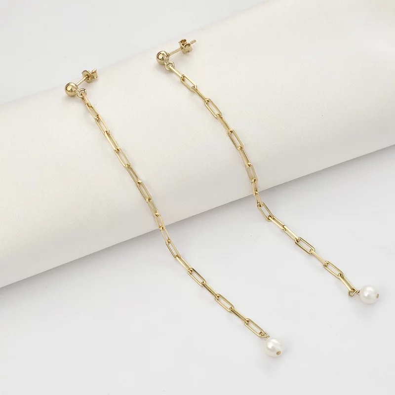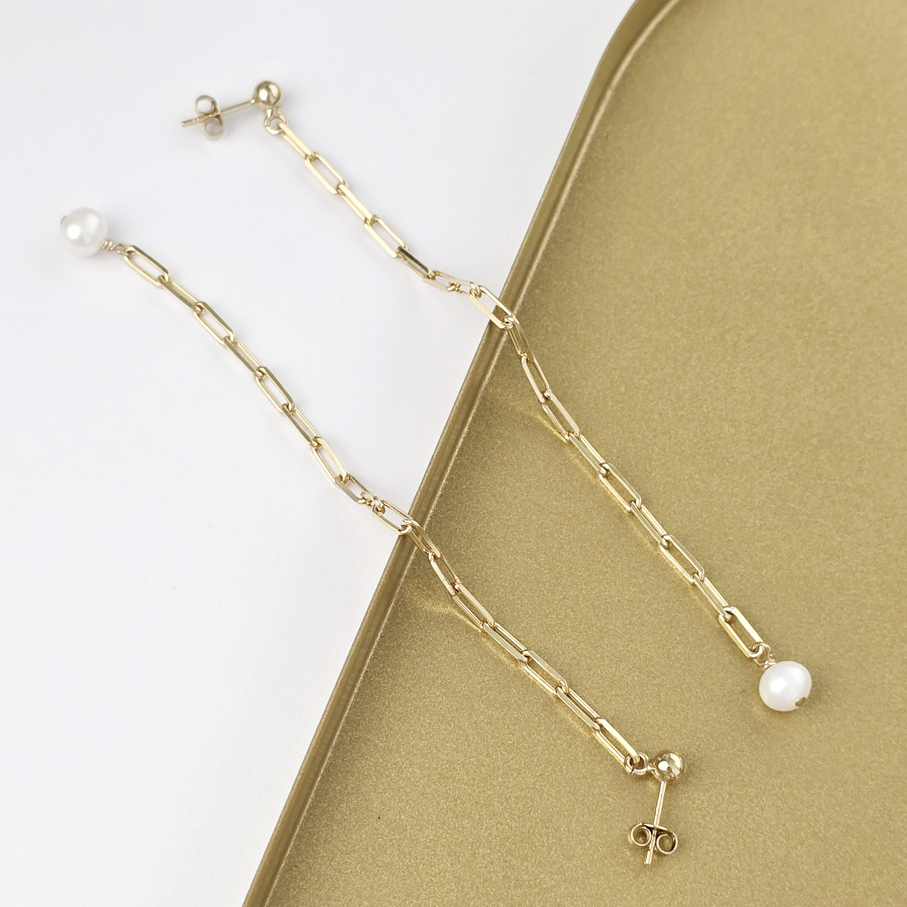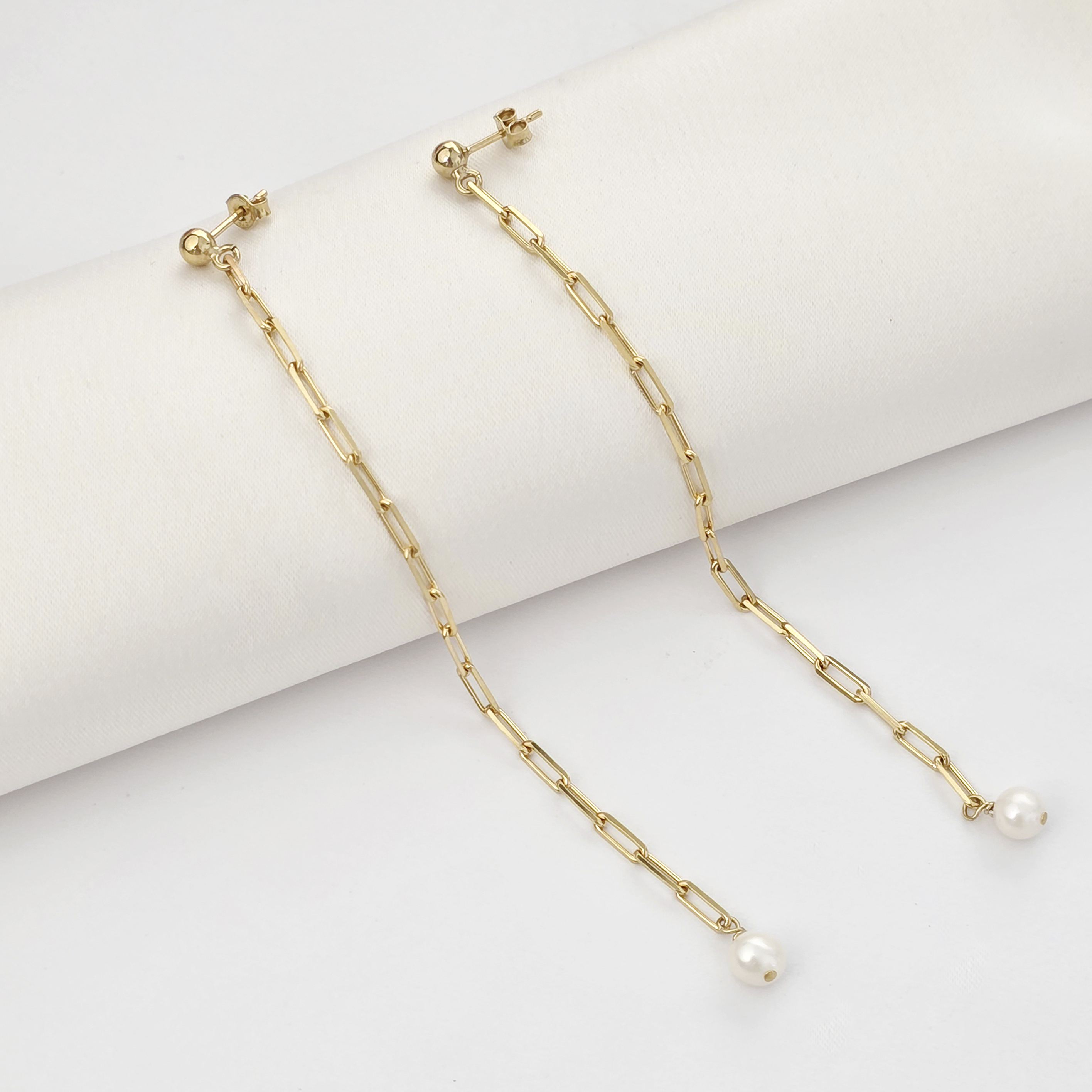 Cercei lungi cu picatura de Perla - Argint 925 placat cu Aur Galben 18K - Inchizatoare surub
