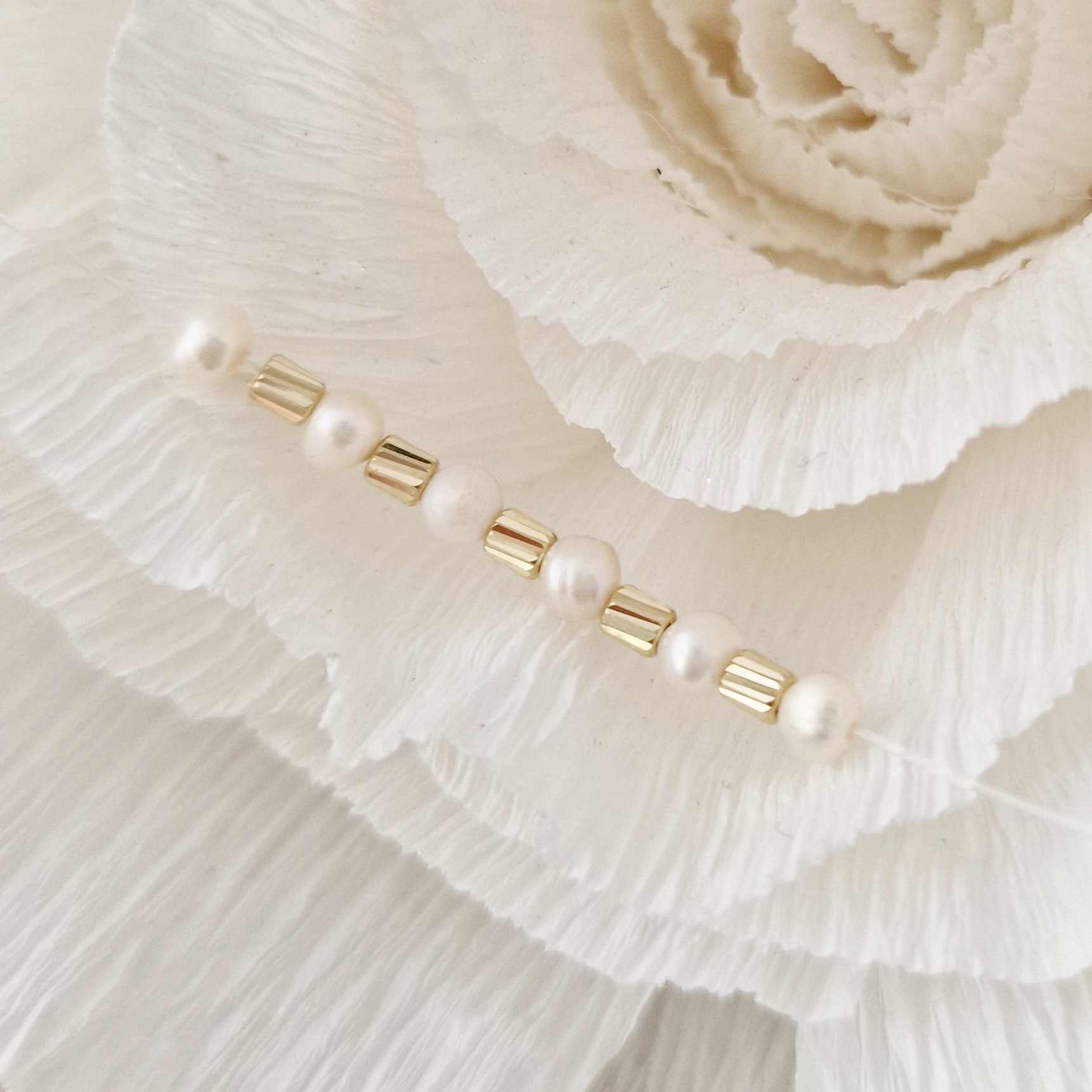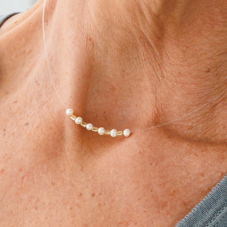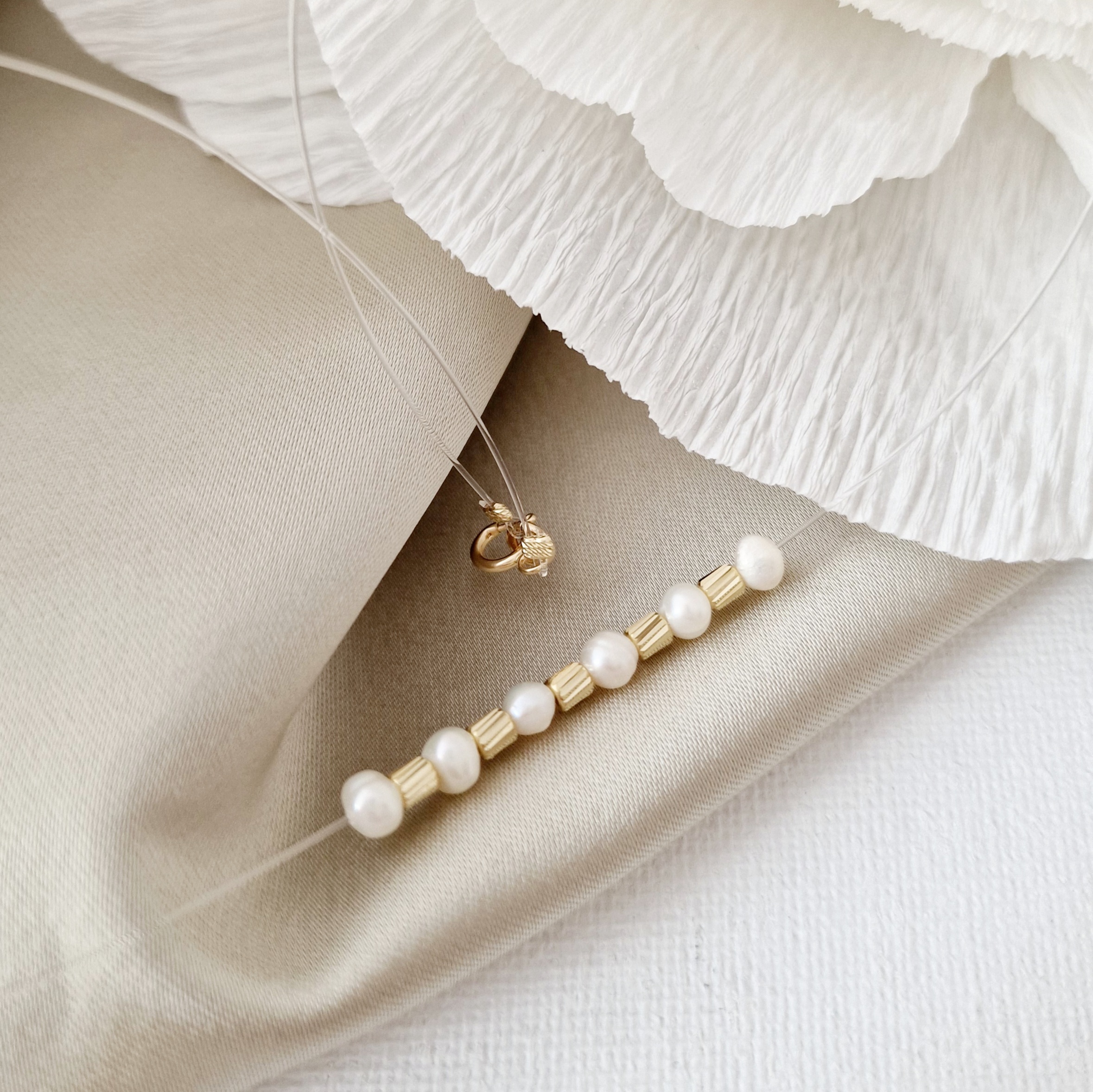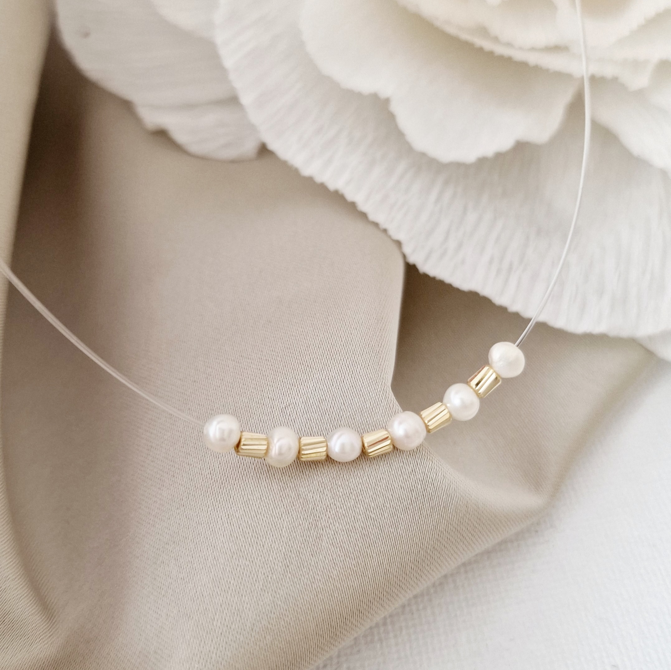 Choker cu perle - Stralucire insiruita - Lant silicon si Cilindri Aur Galben 14K