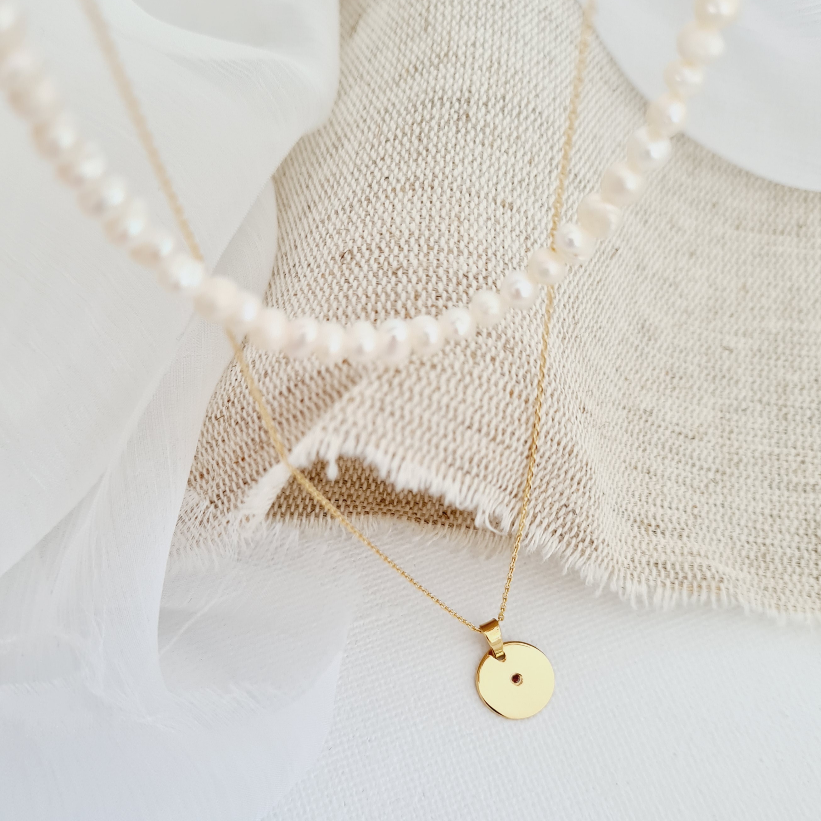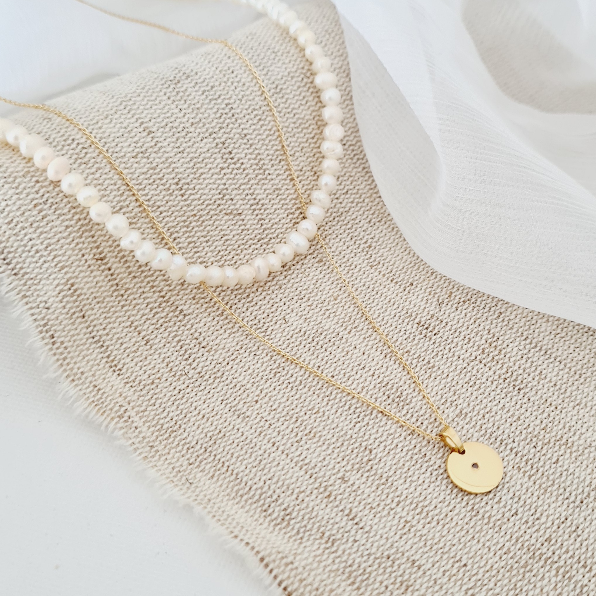 - Bijuteria este creata din 2 straturi, unul cu un sirag de perle de 40 cm, iar unul cu un lantisor de 45 cm pe care vine pus banutul.