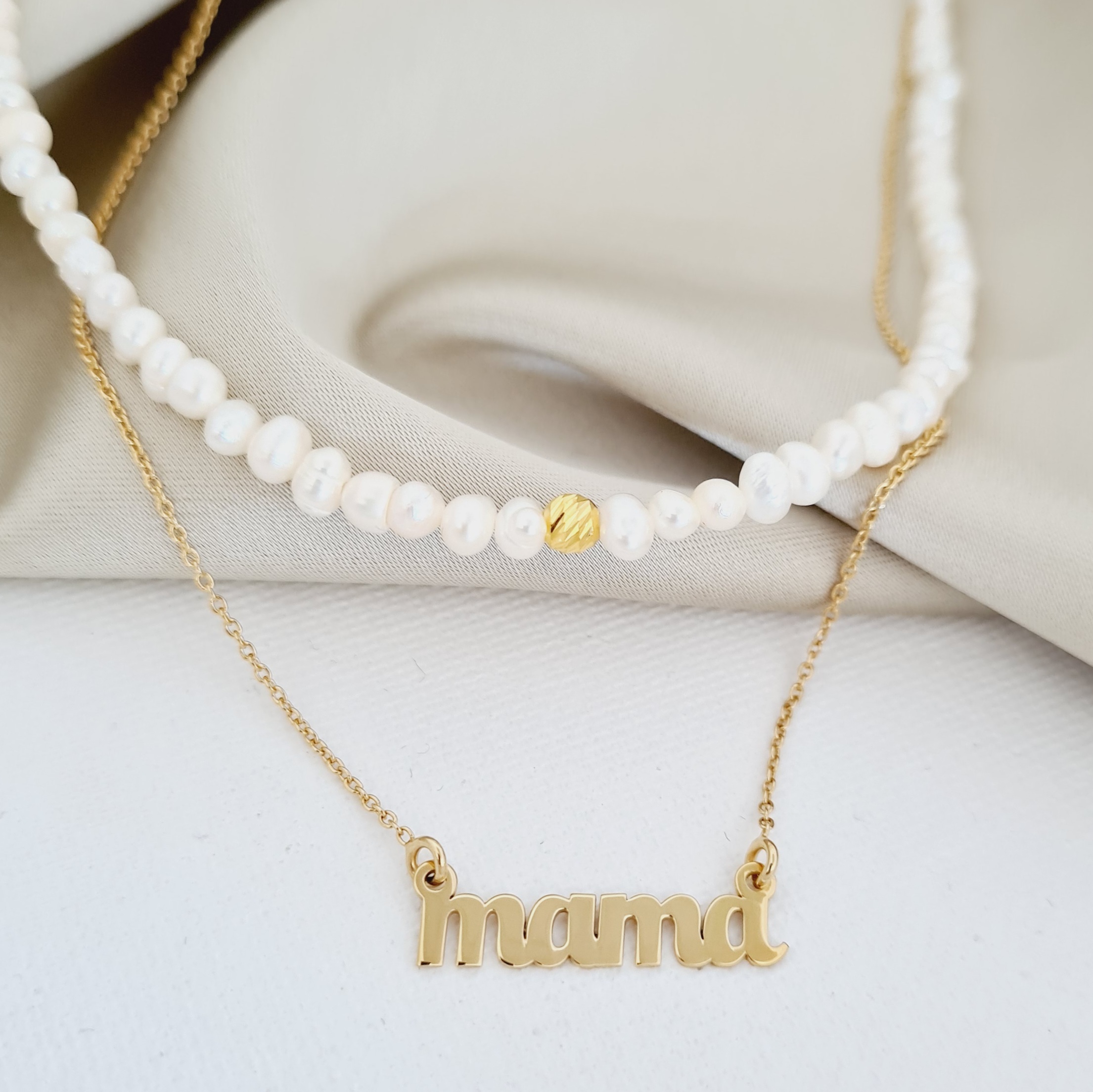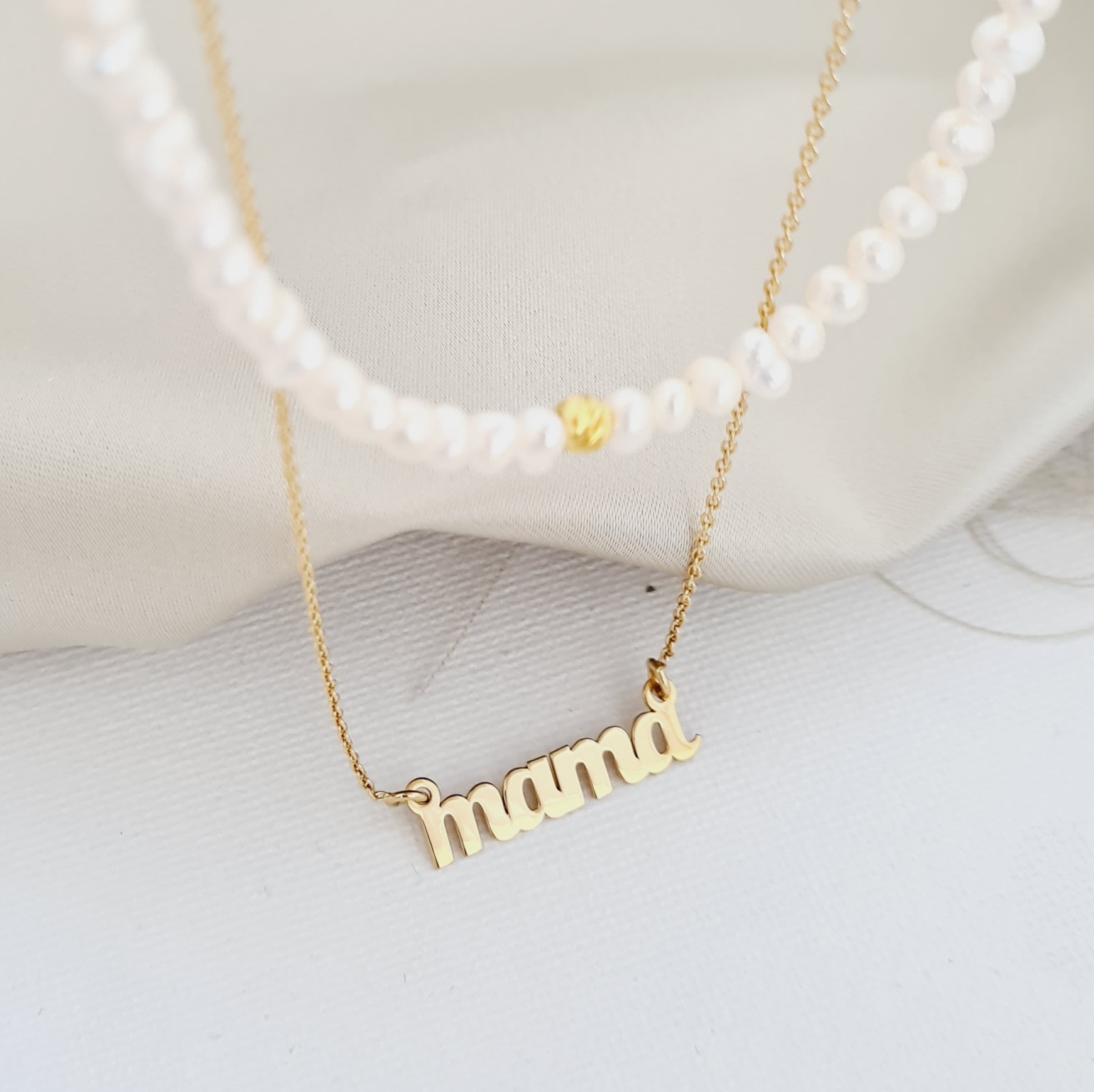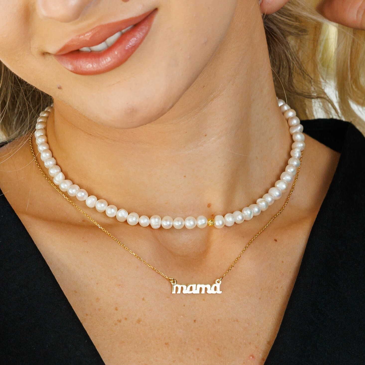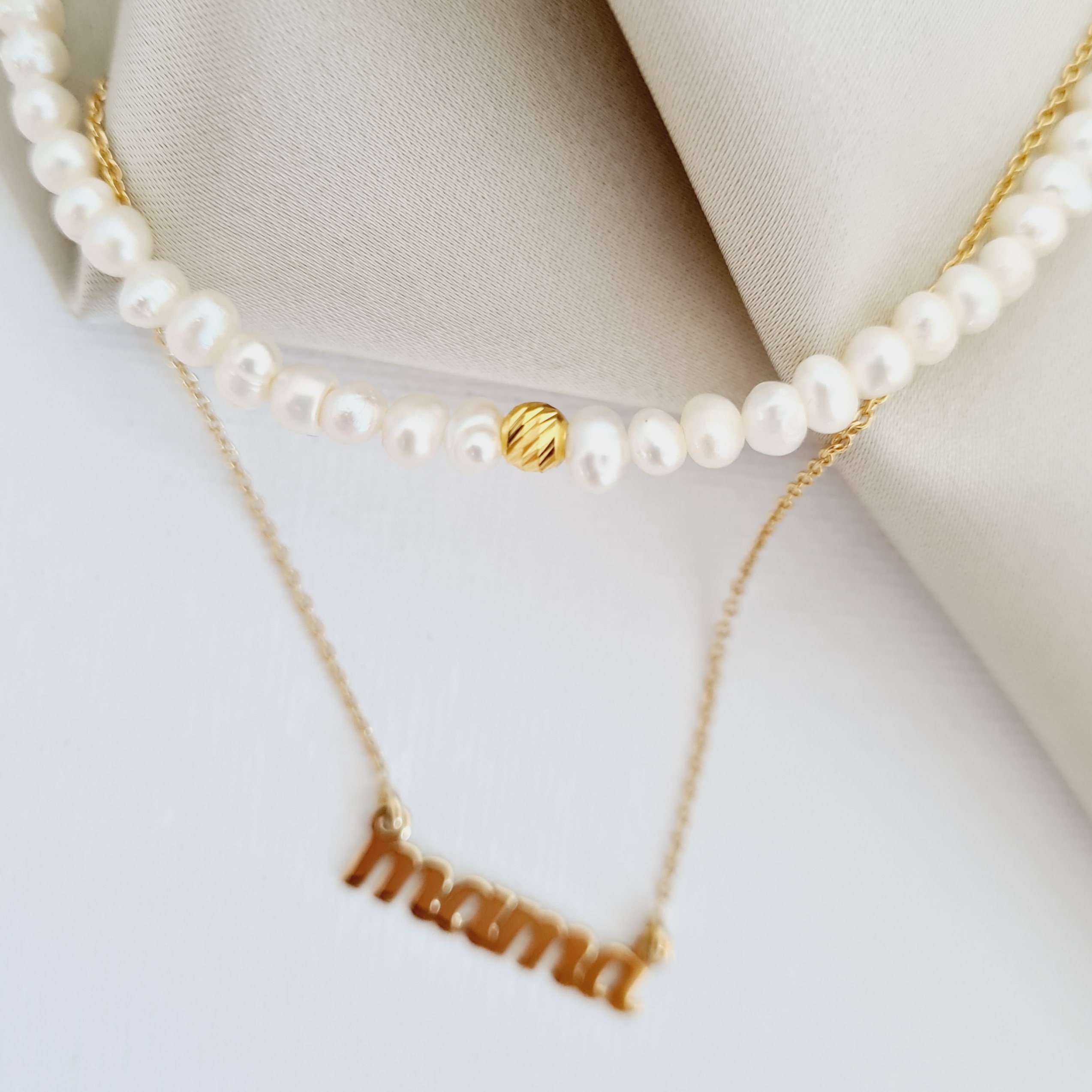 Lantisor cu Perle - Nume melodios - Model 2 straturi cu sirag perle si lantisor cu nume - Argint 925 placat cu Aur Galben 18K