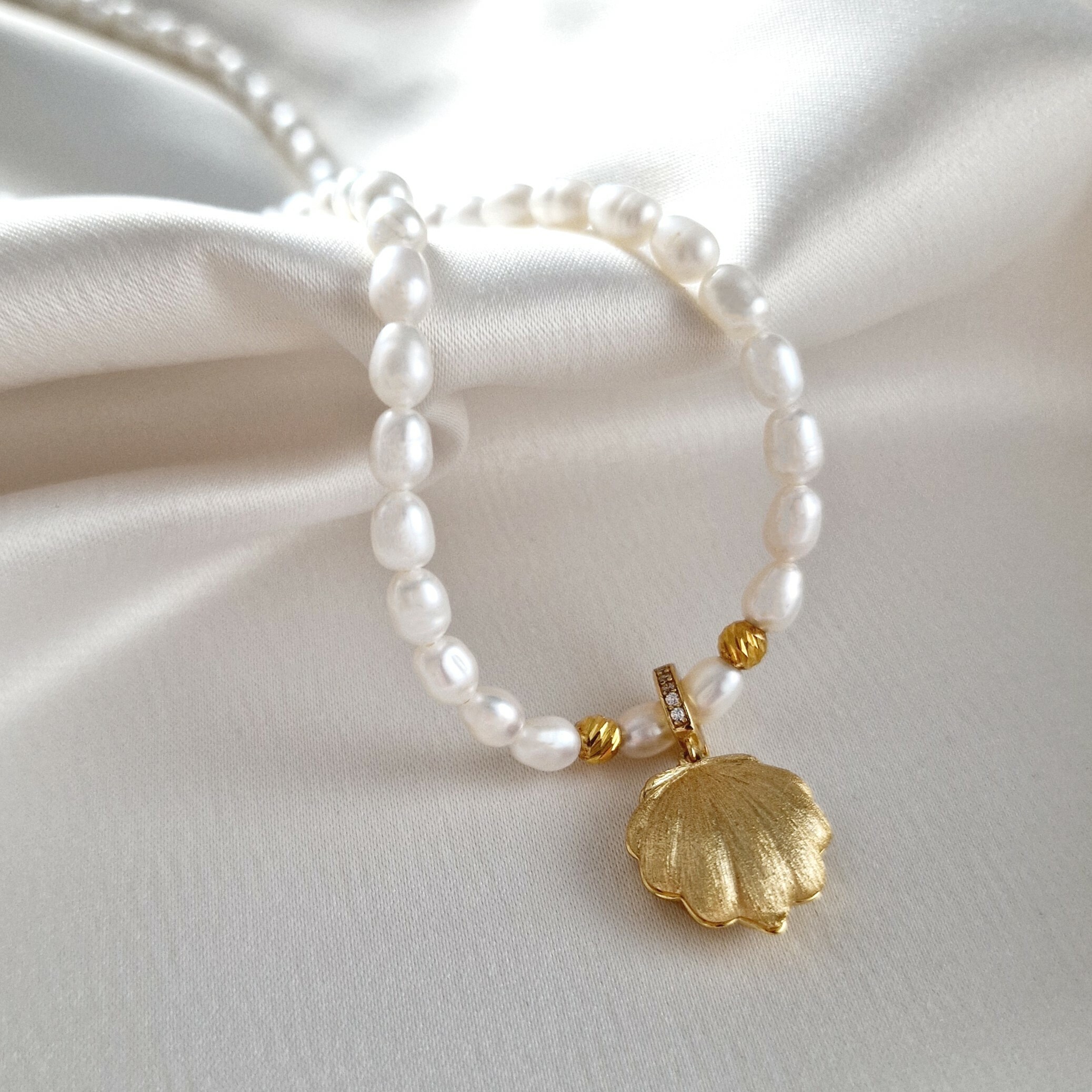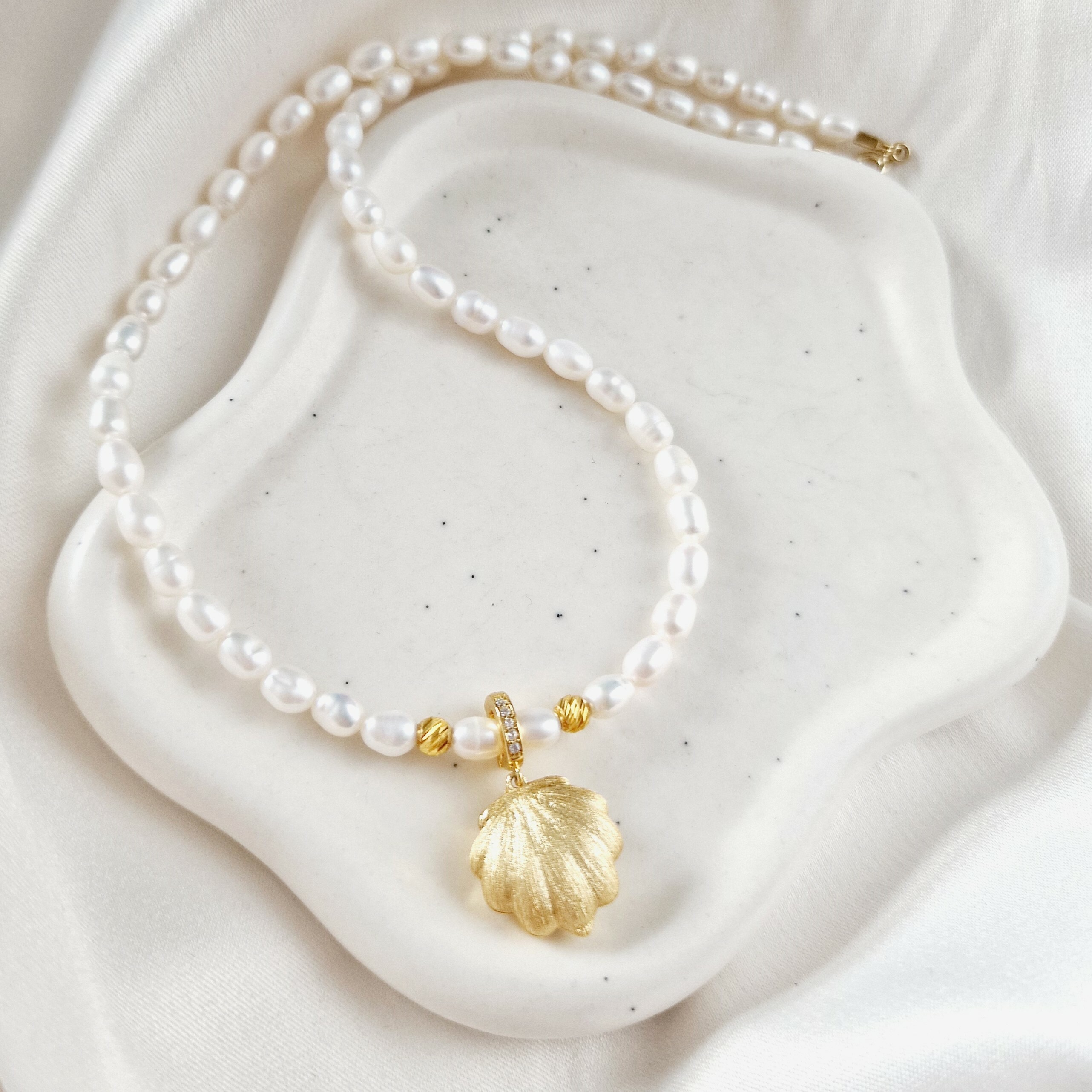 Lantisor cu Perle - Pandantiv Scoica - Argint 925 placat cu Aur galben 18K