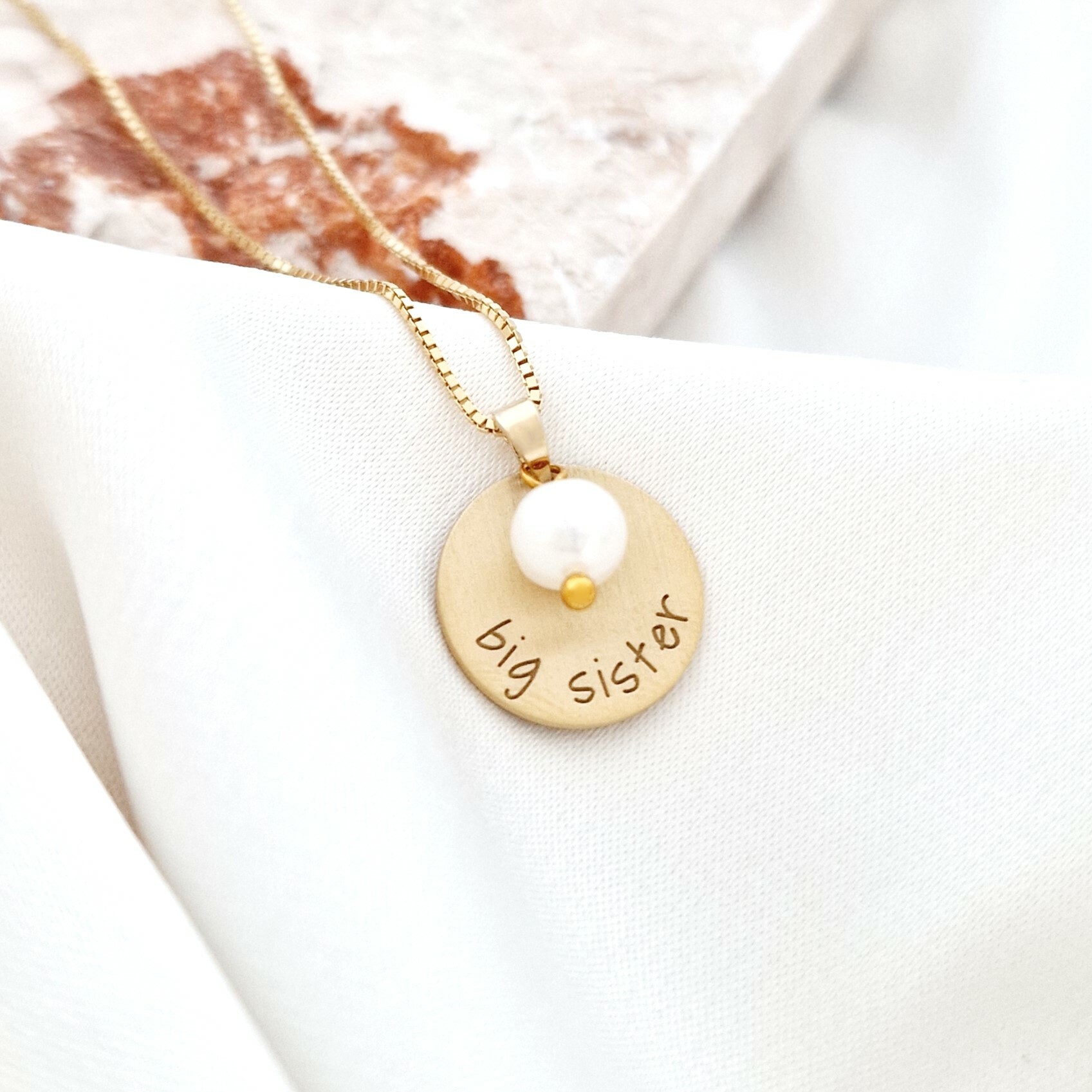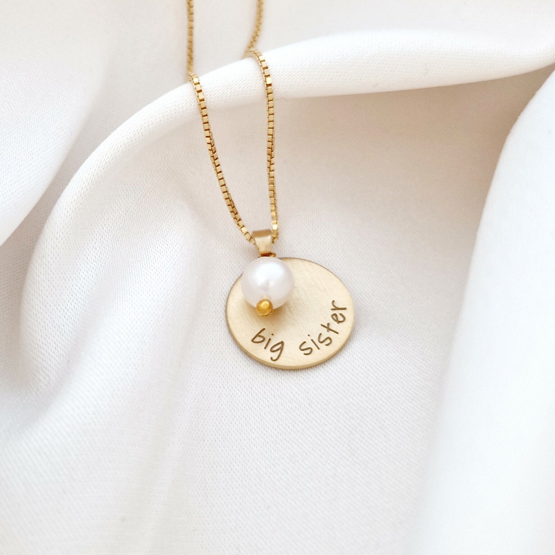 Lantisor My Sister – Argint 925 placat cu Aur Glaben 18K si charm picatura de Perla