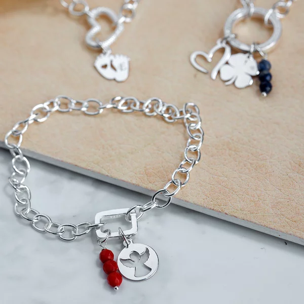 Apoi alegi dimensiunea lantului sau a bratarii care ti se potriveste cel mai bine — fie ca vrei un look subtil sau statement. Iar la final, adaugi charm-urile care spun povestea ta: initiale, simboluri, pietre sau mesaje care inseamna ceva pentru tine.