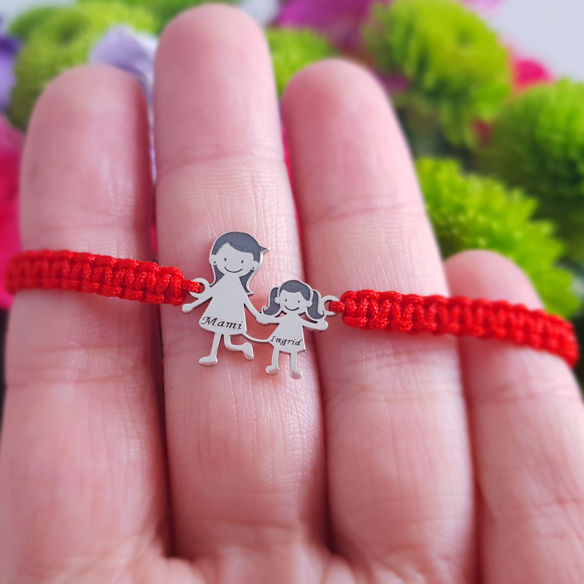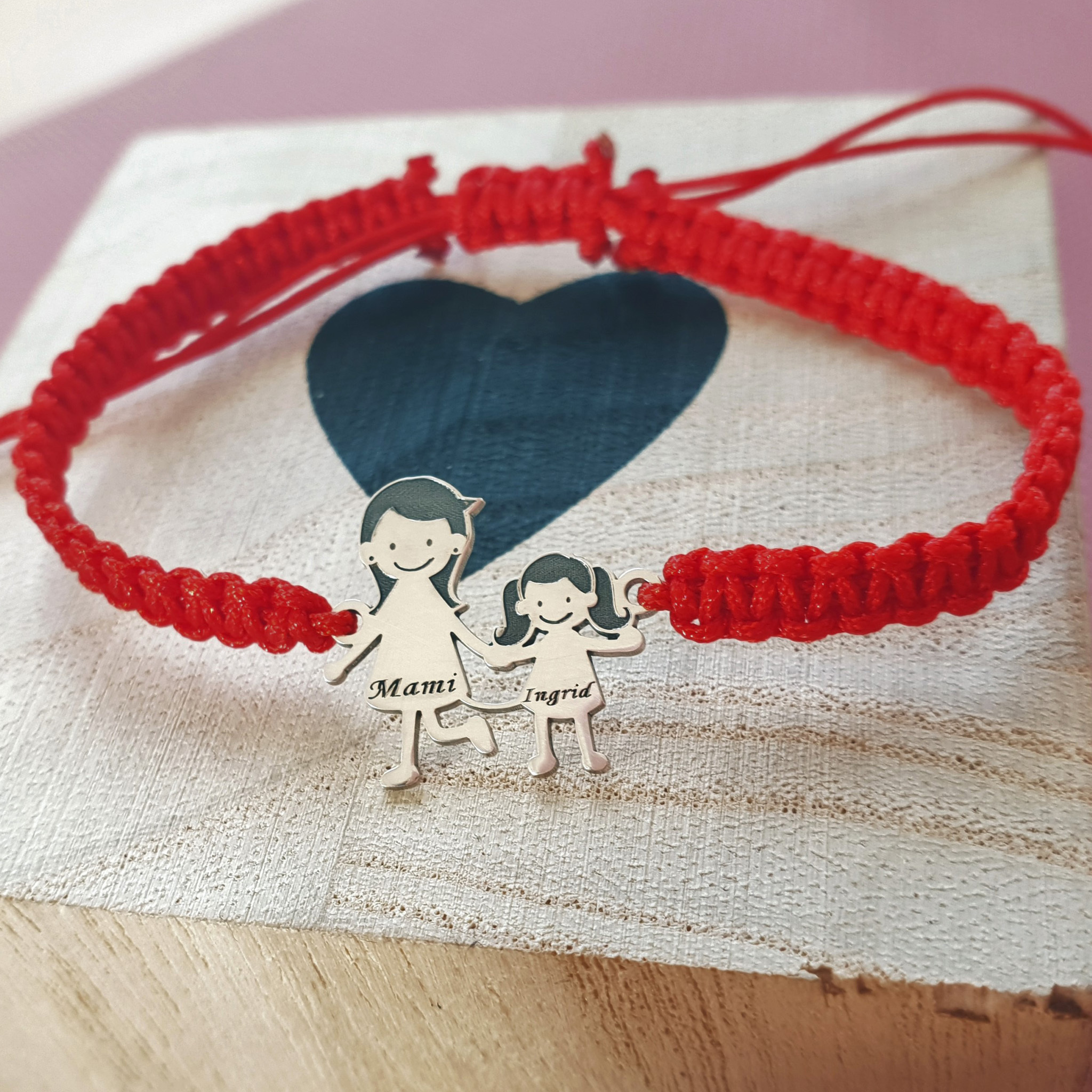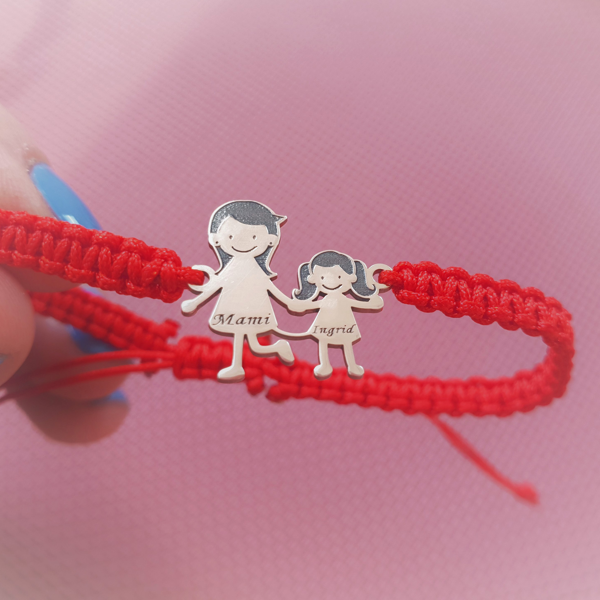 Bratara Familie - 2 Membri - pandant Argint 925, snur impletit reglabil