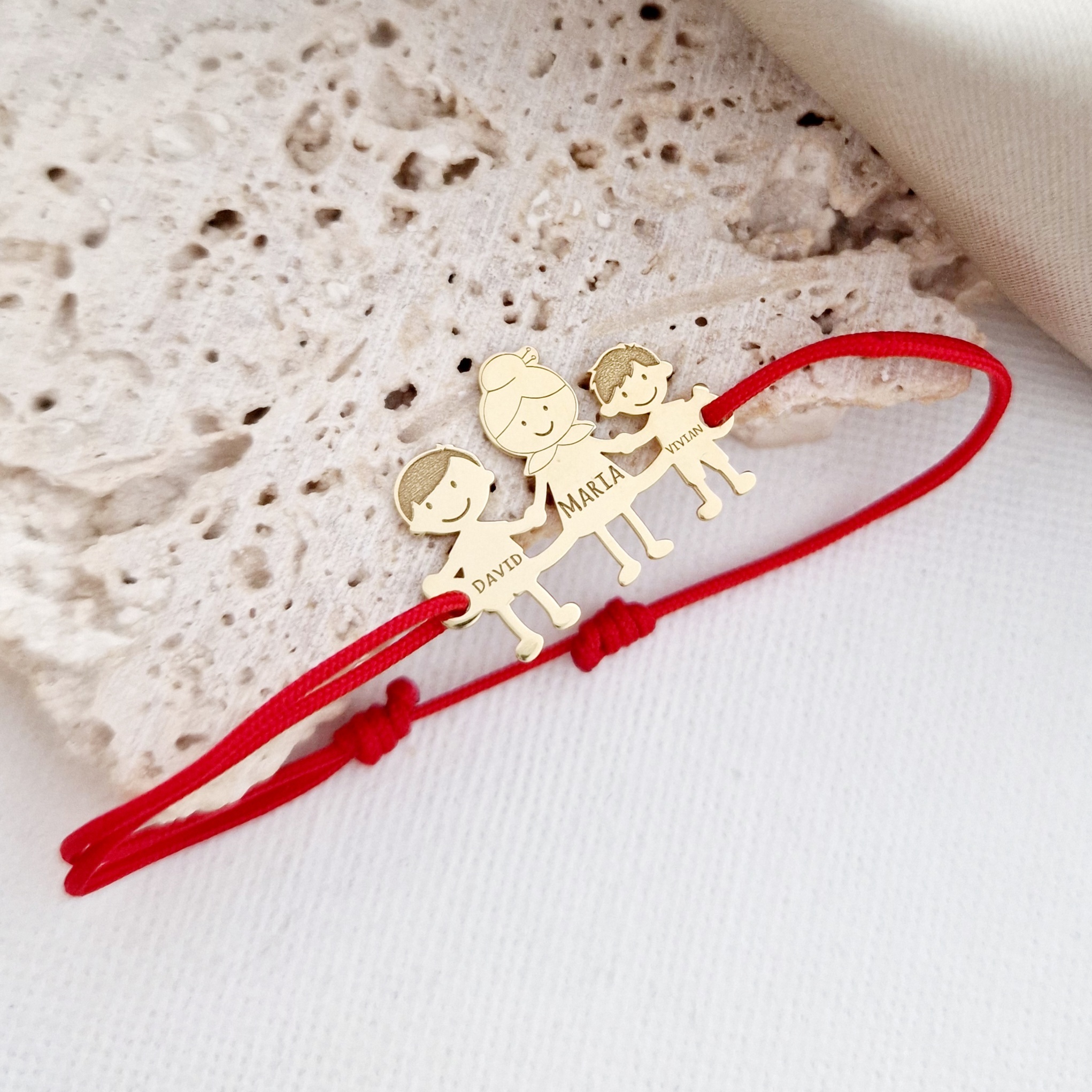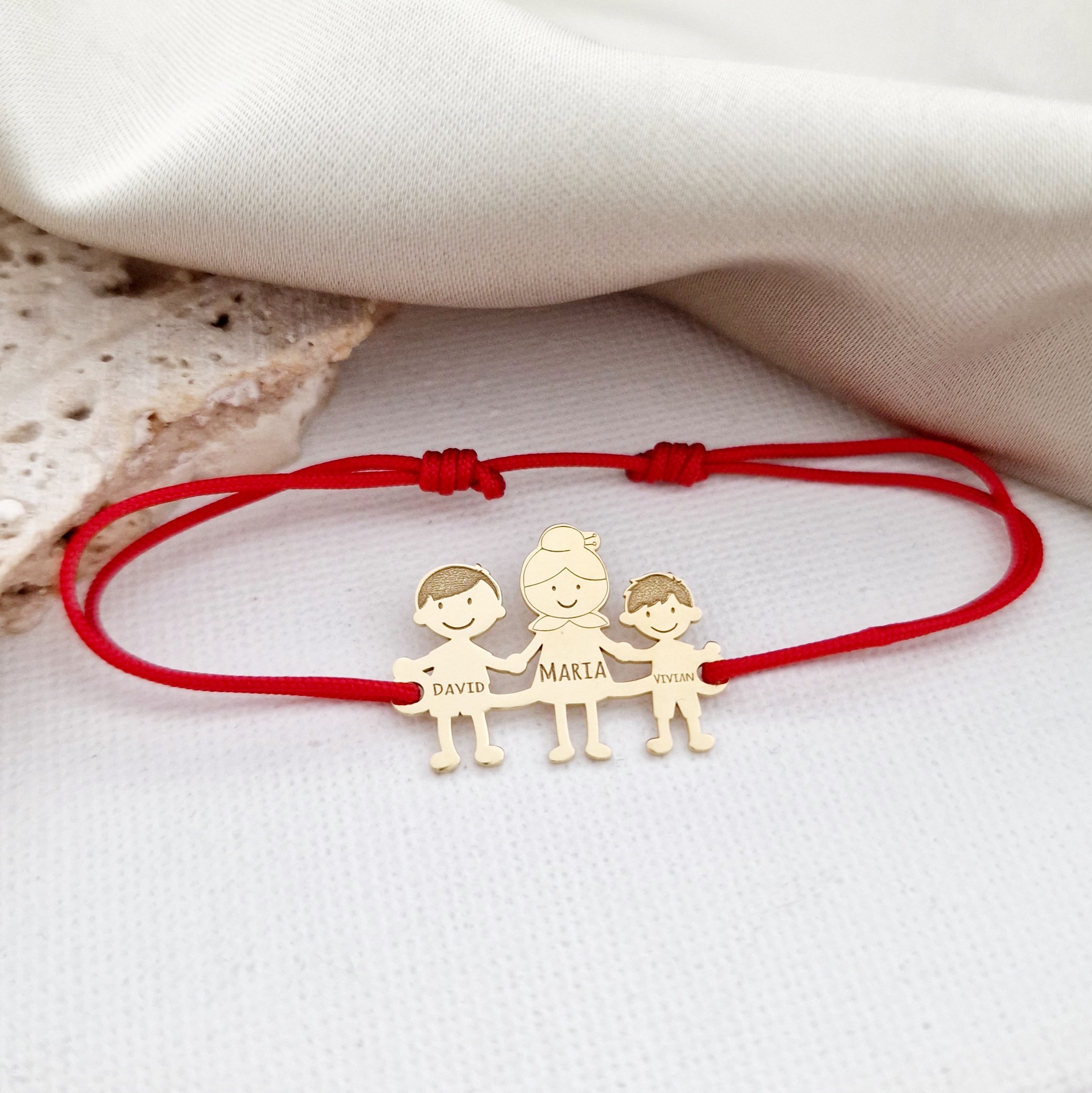 Bratara Familie - 3 Membri - Bunica si nepoti - Argint 925 placat cu Aur 18K - snur reglabil