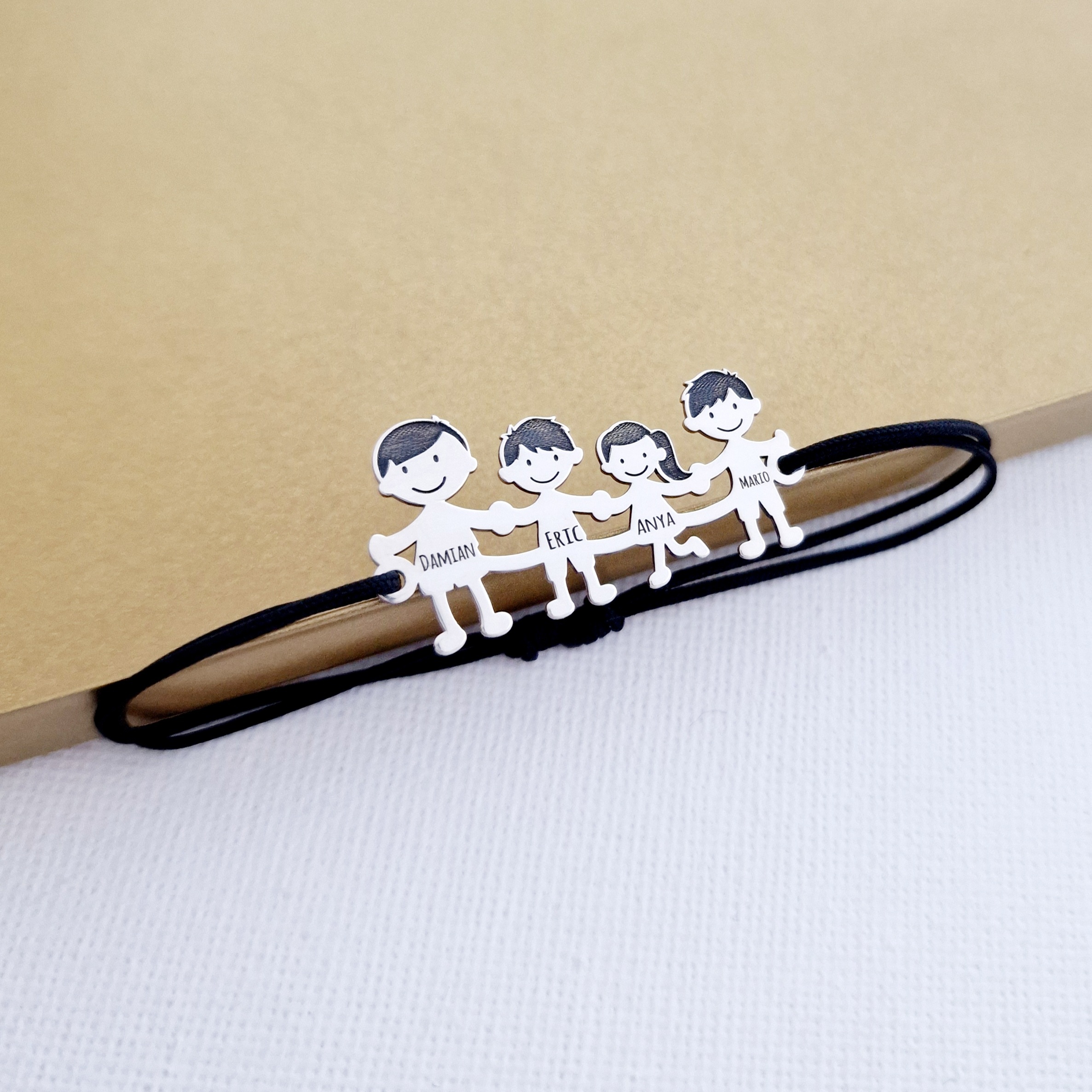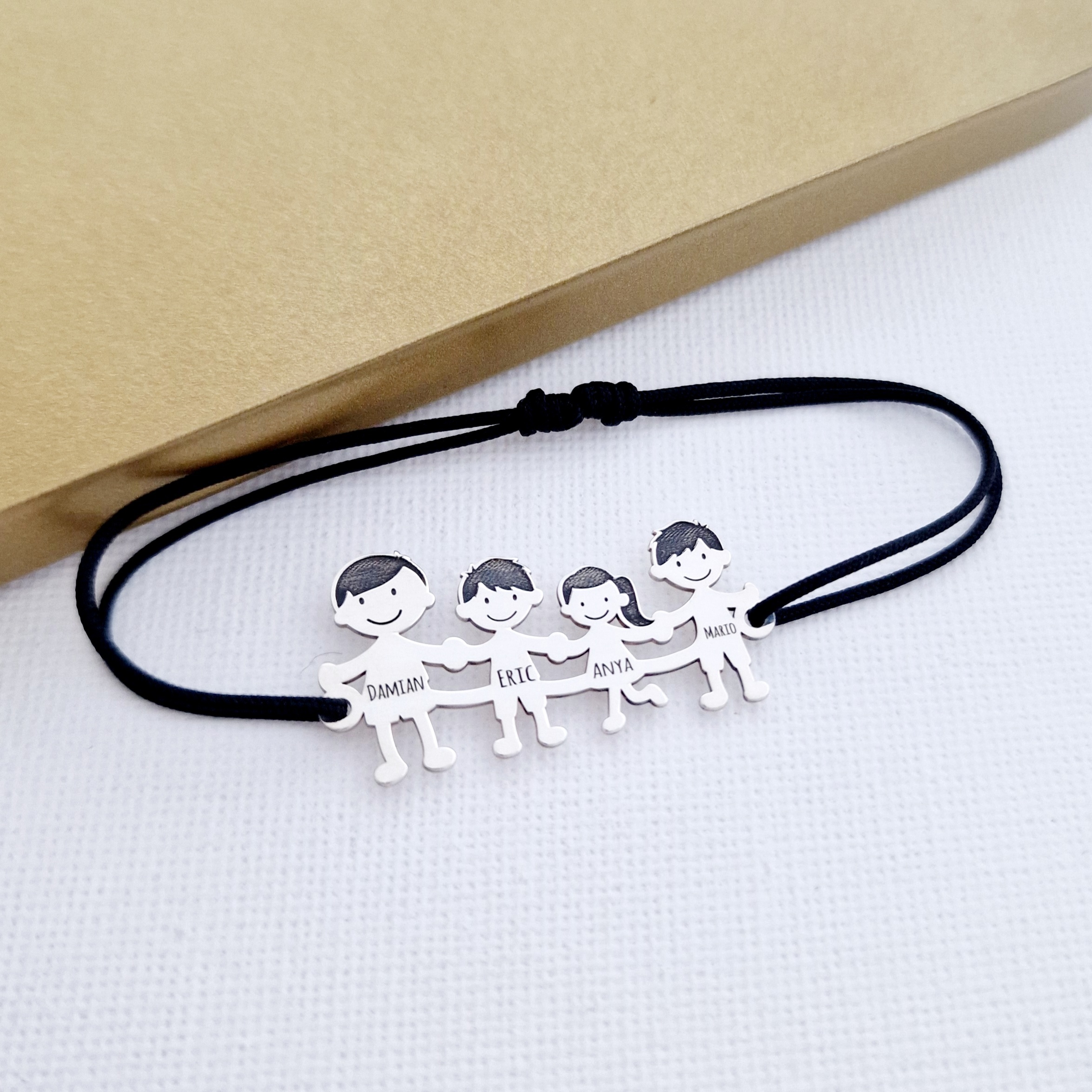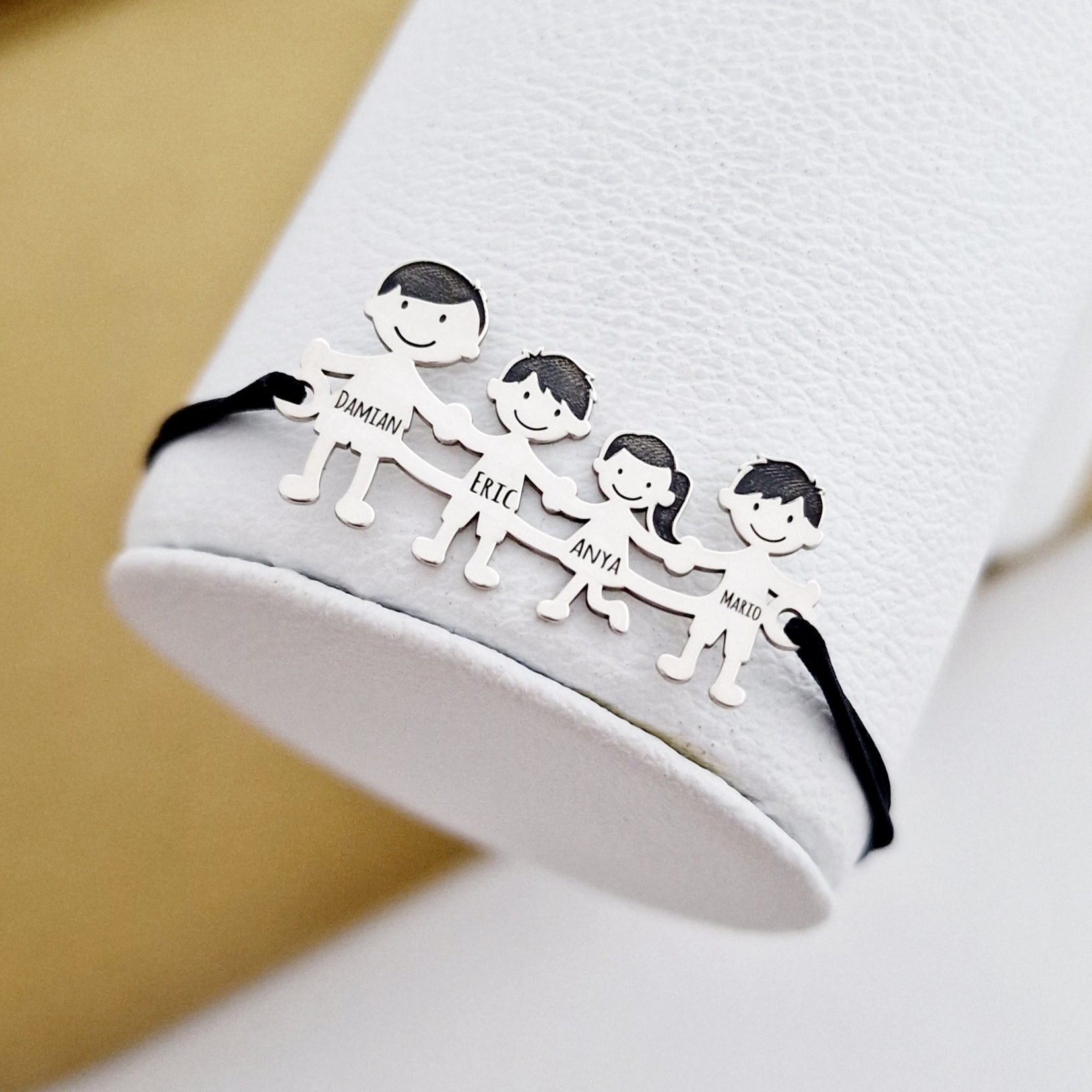 Bratara Familie - 4 Membri - pandant Argint 925 - snur negru matase vegetala reglabil