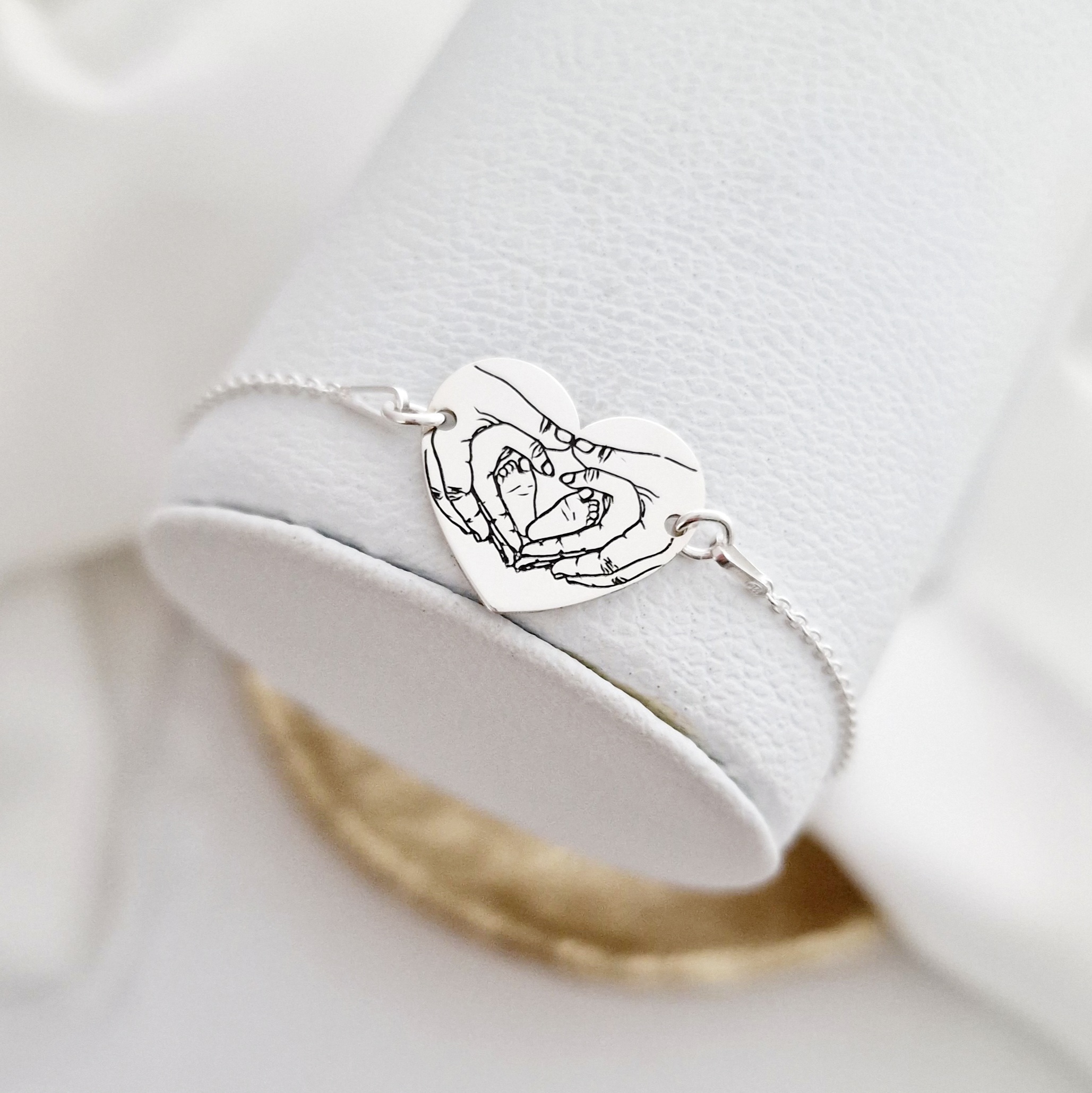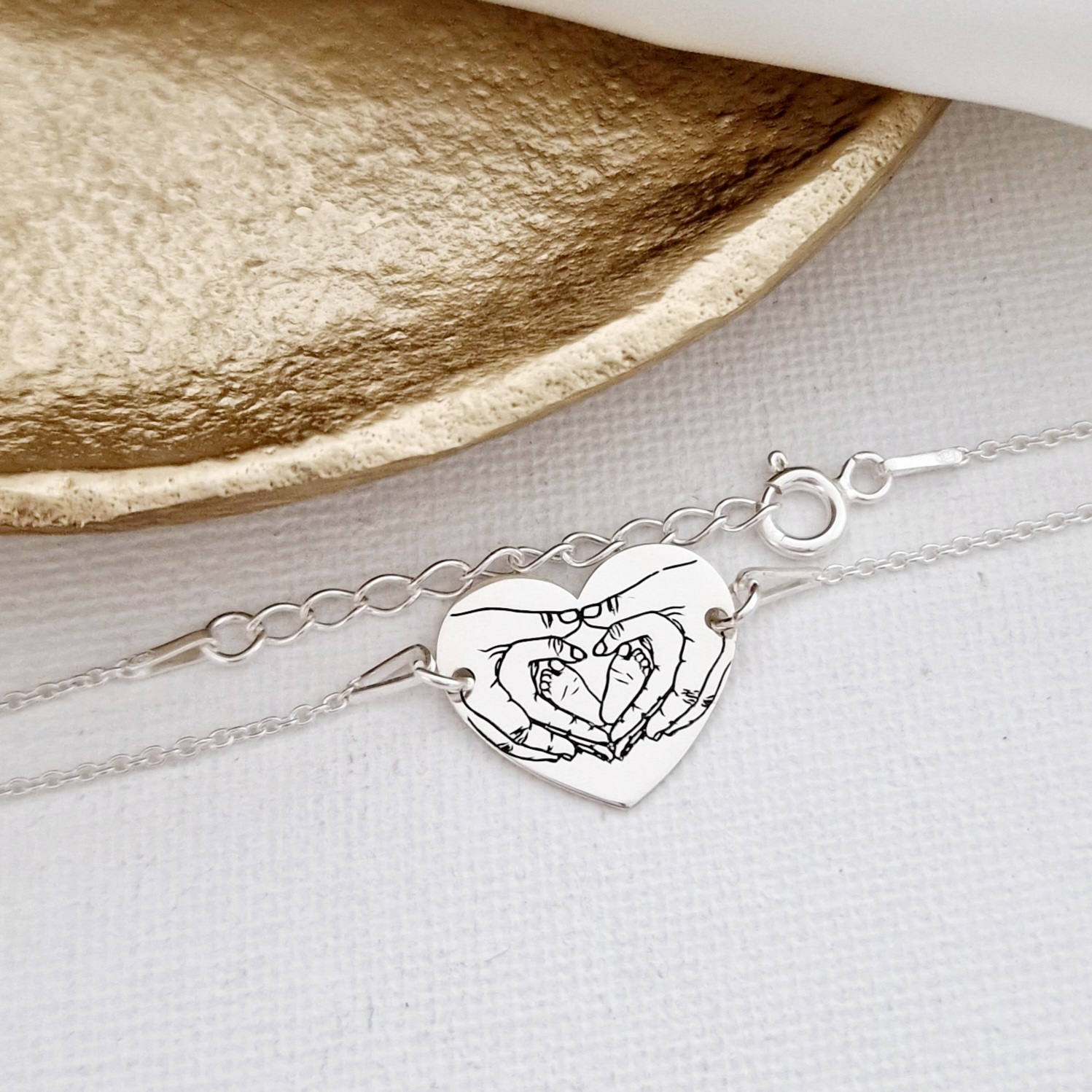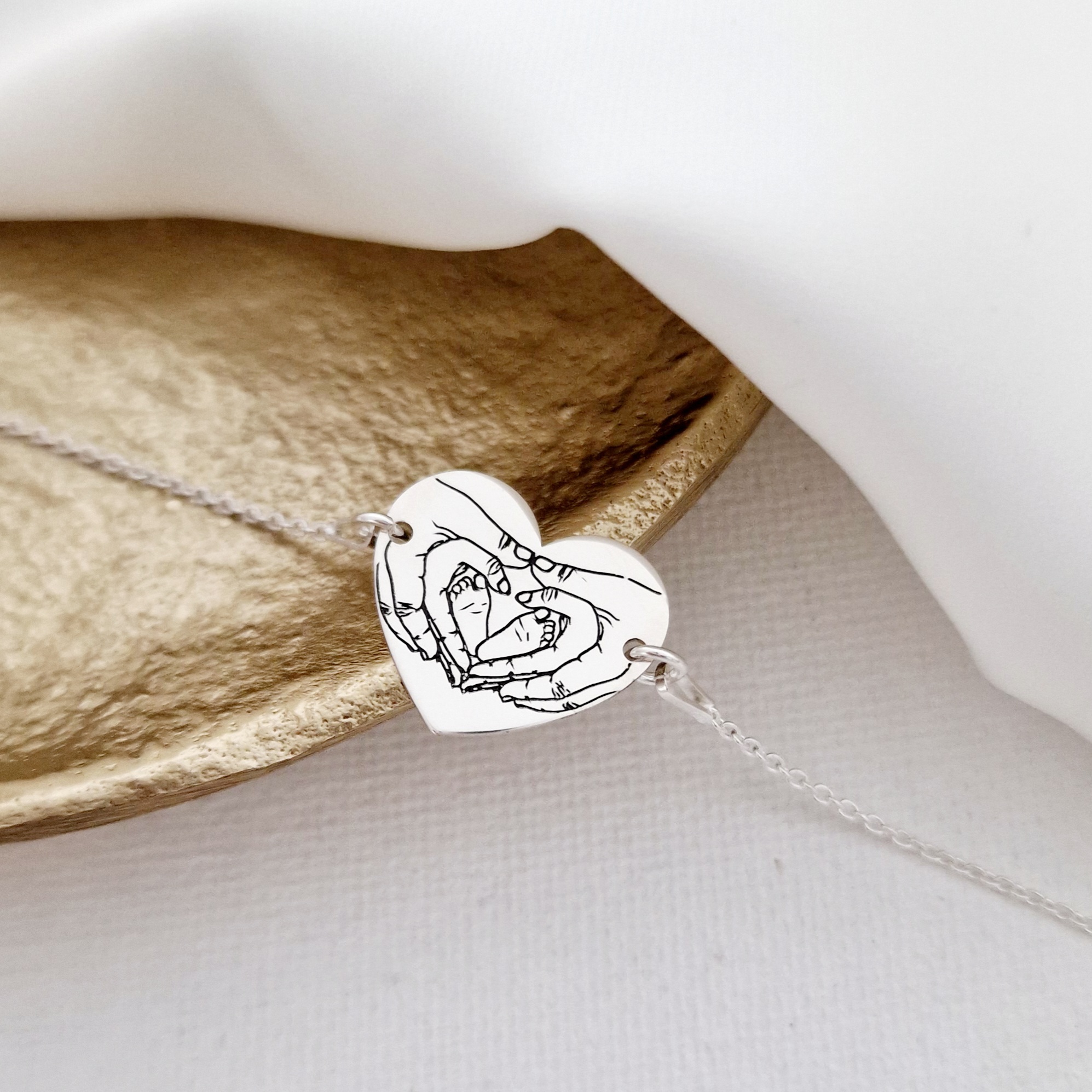 Bratara Inima cu maini si picioruse bebe gravate - Argint 925, lantisor cu prelungire