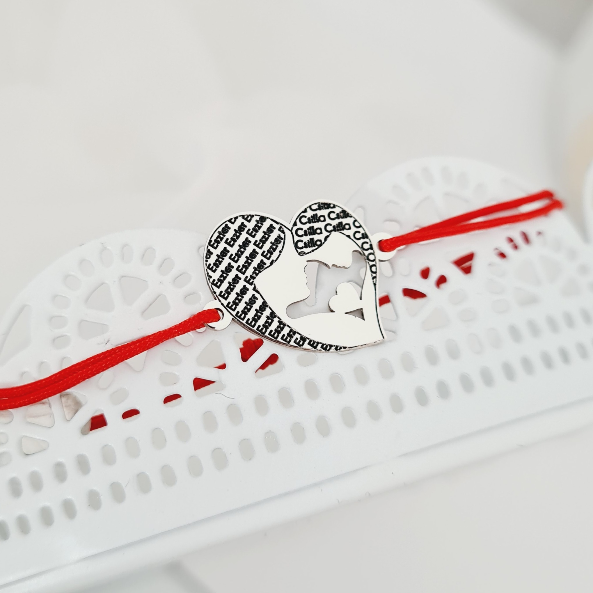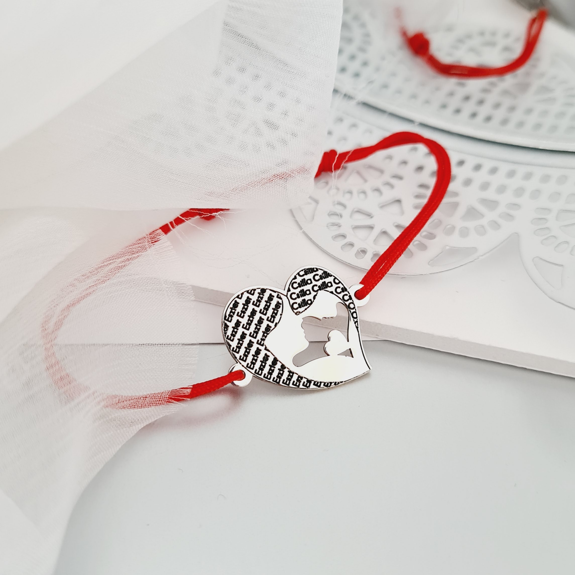 Bratara Inima - Mama si fiica - Argint 925, snur reglabil
