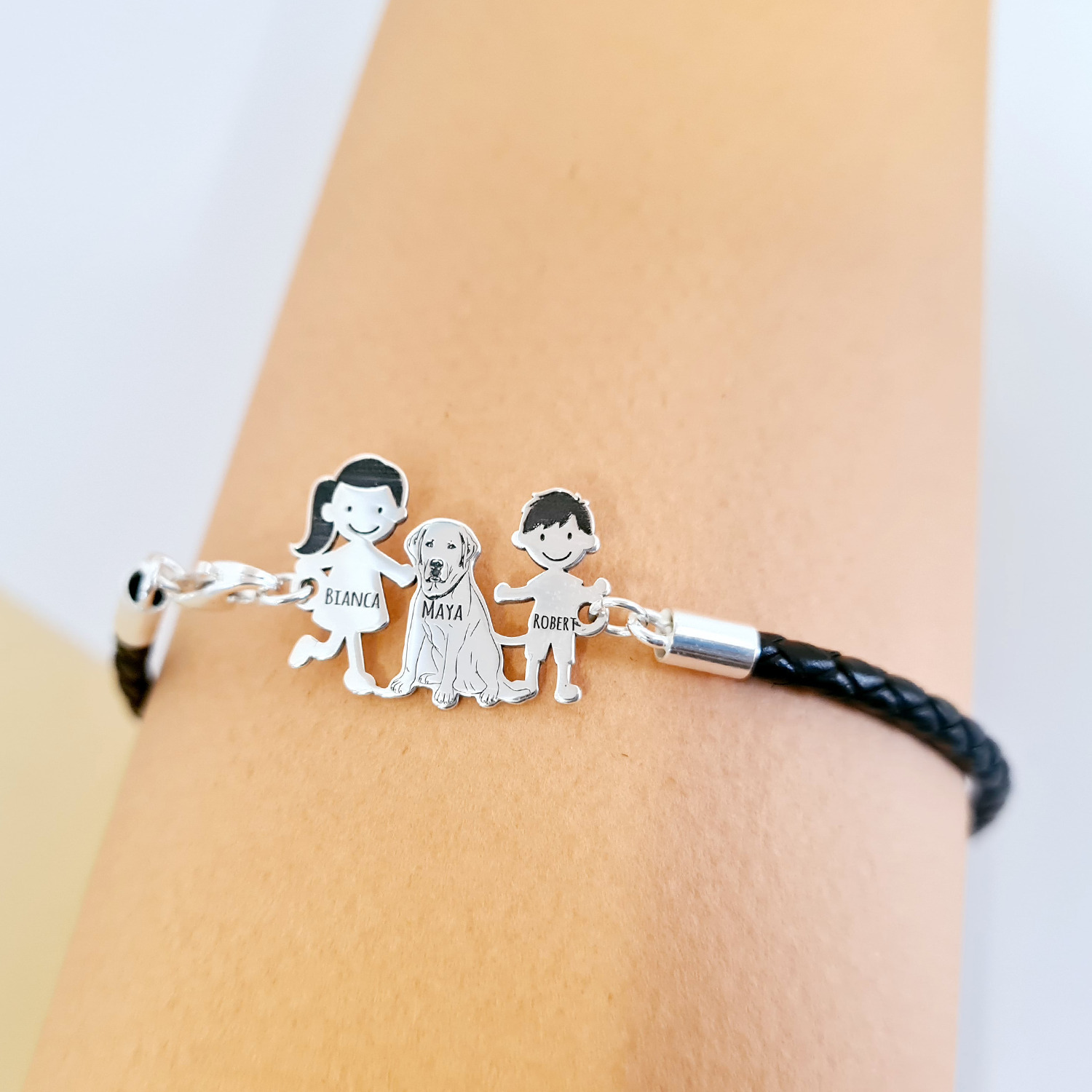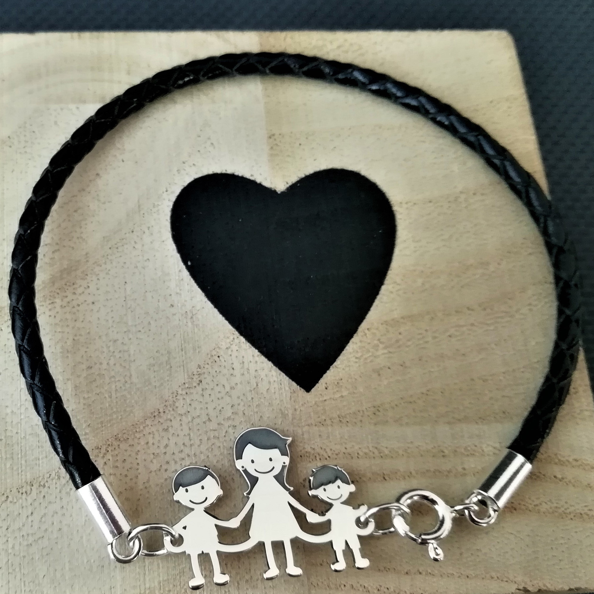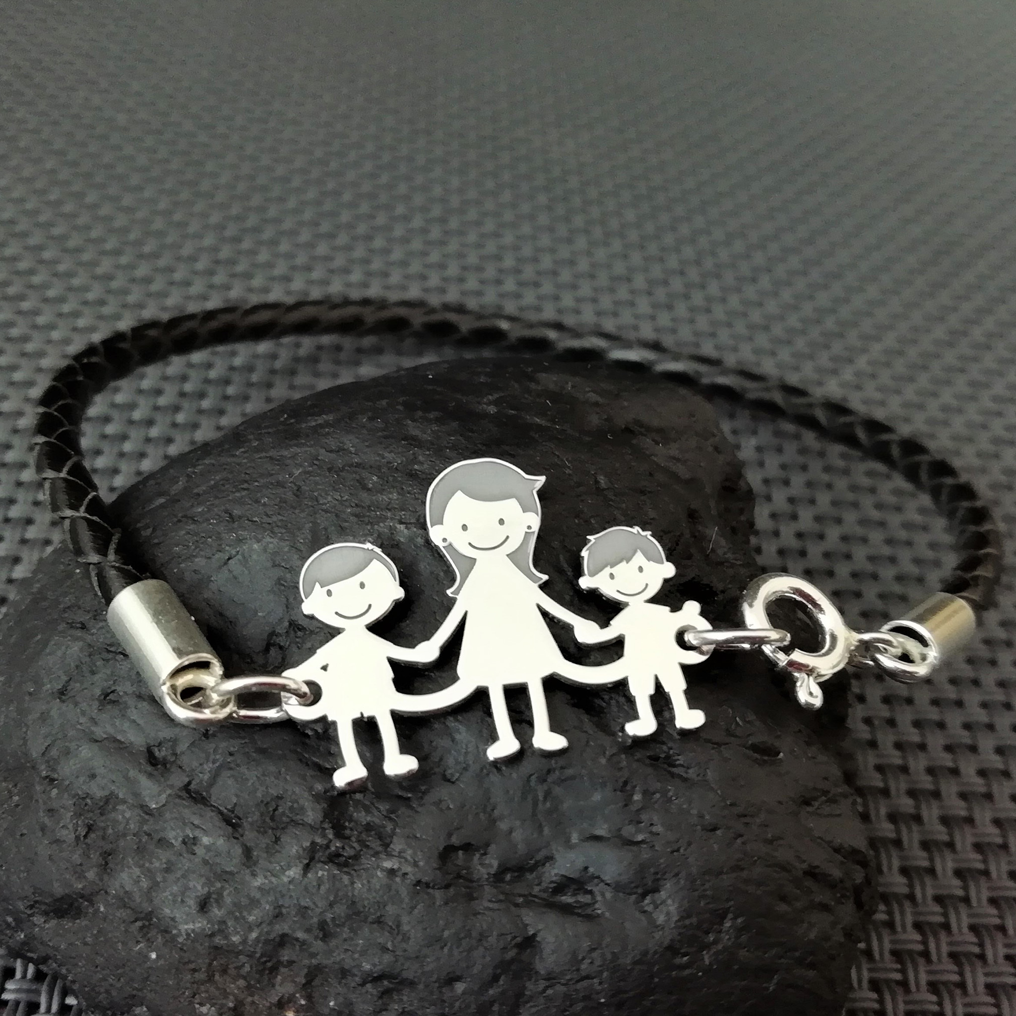 Bratara Unisex cu membrii Familiei - 3 membri - Mama si copii - Argint 925, piele impletita
